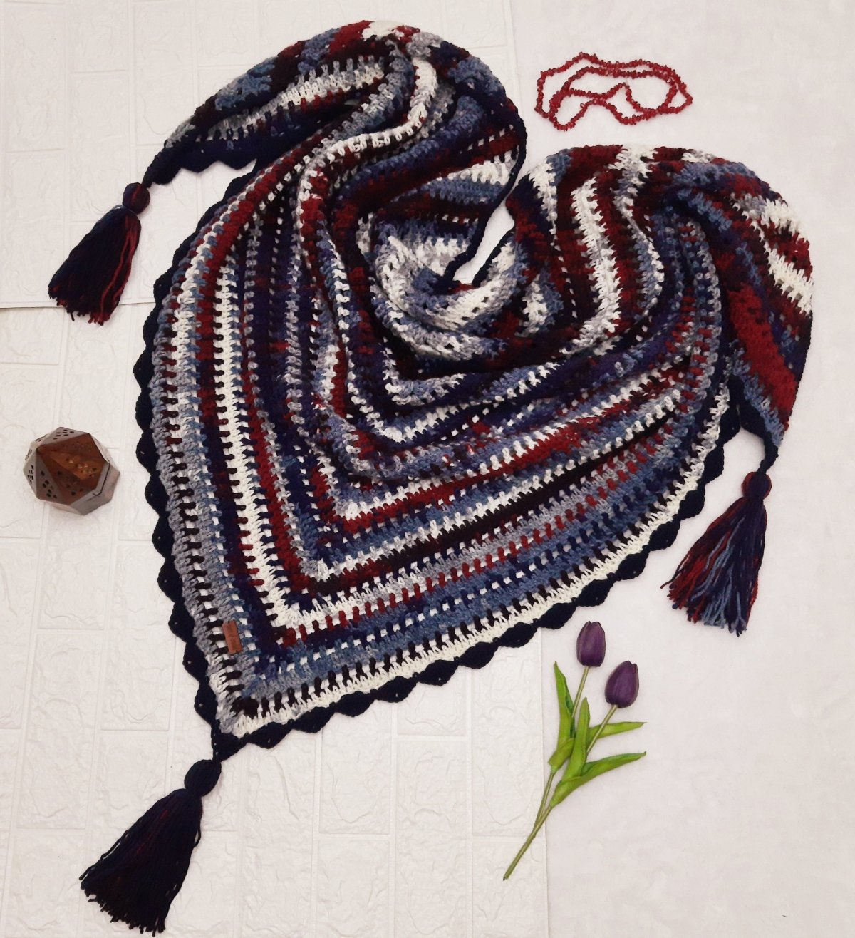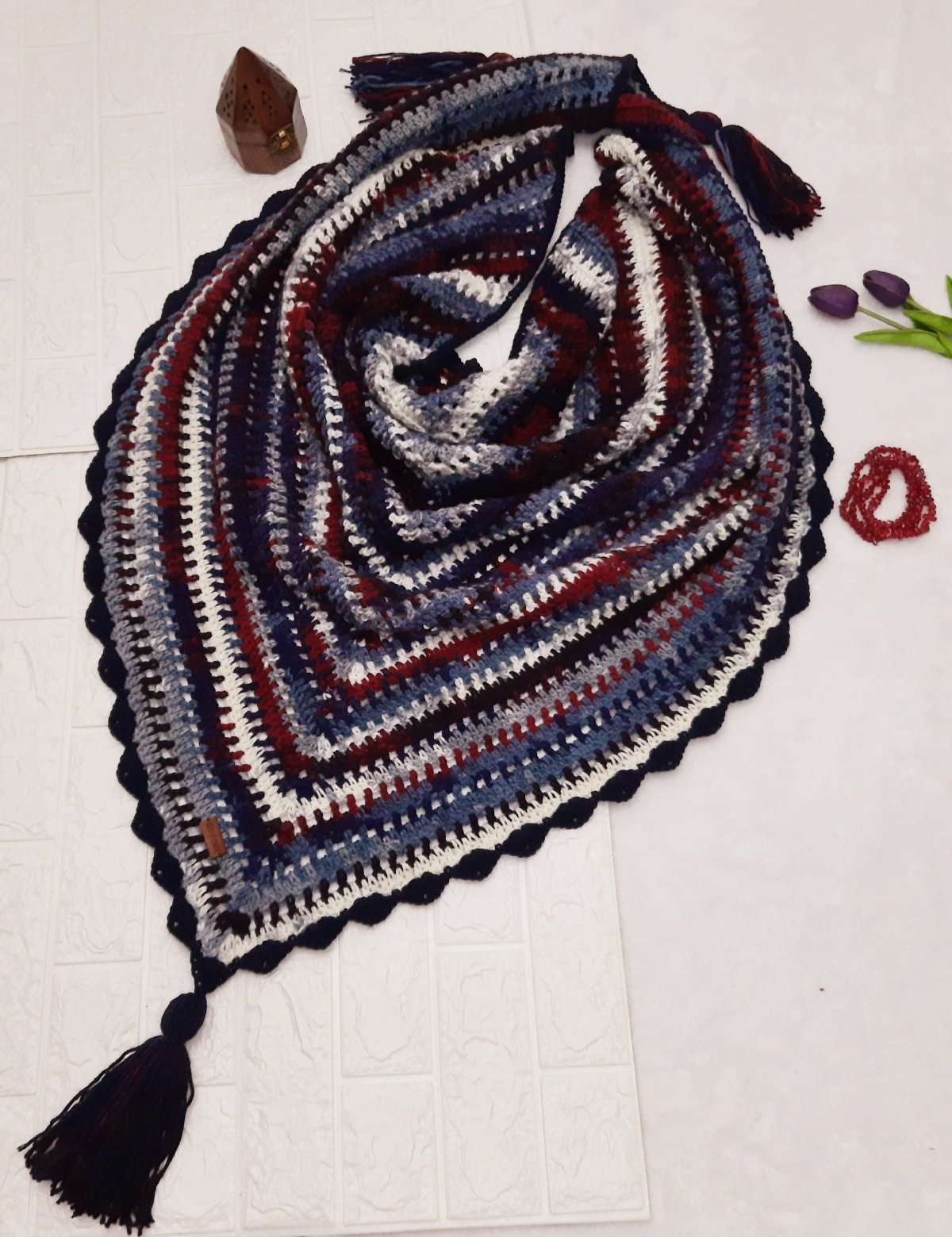 شال مثلث شتوى مشغول بخيط صوف تركى جودة ممتازة .