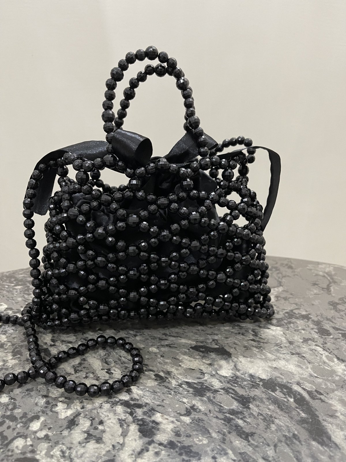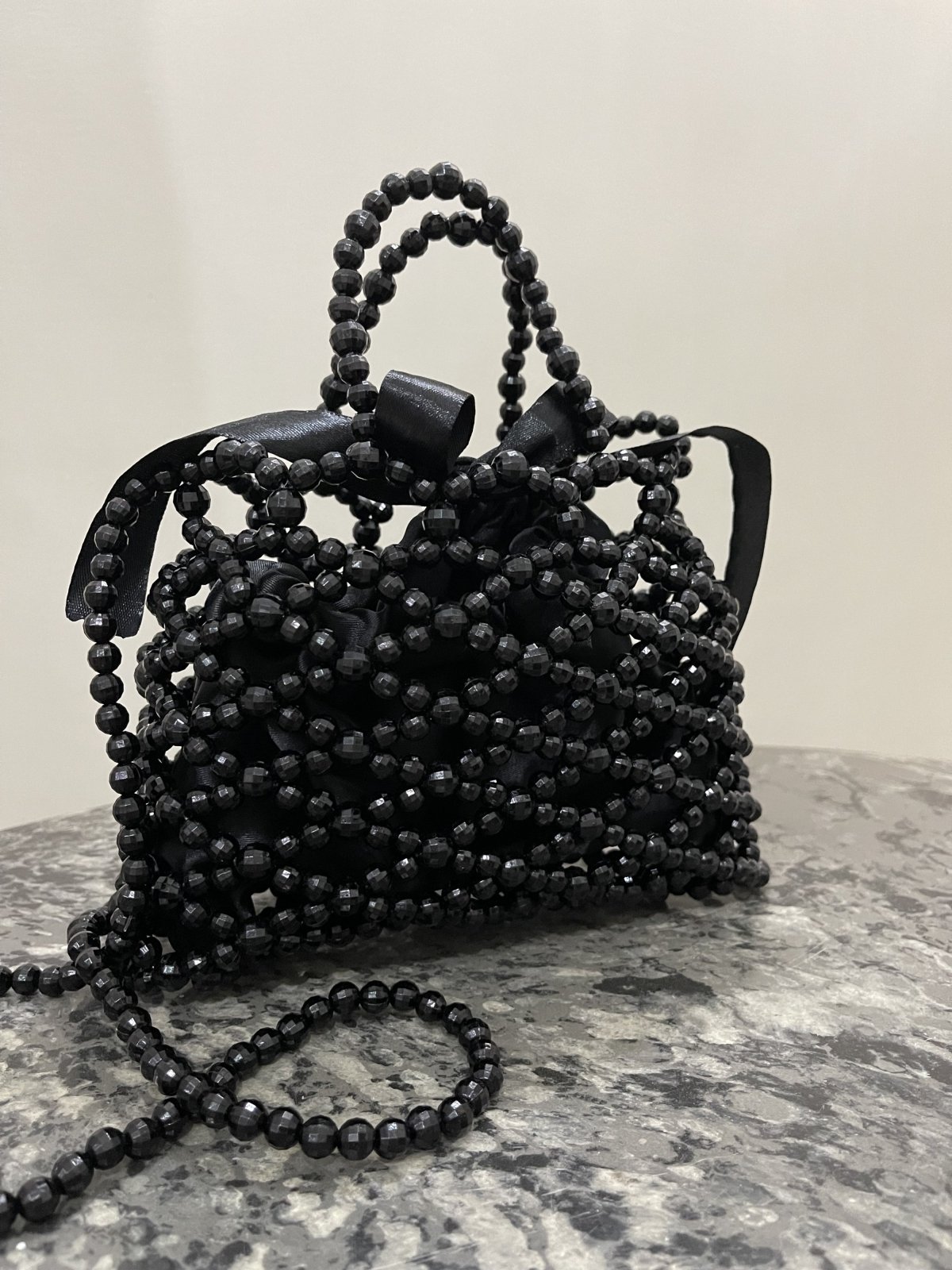 شنطة من الخرز الكريستال الأسود البلاستيك مع بطانه من الساتان الأسود