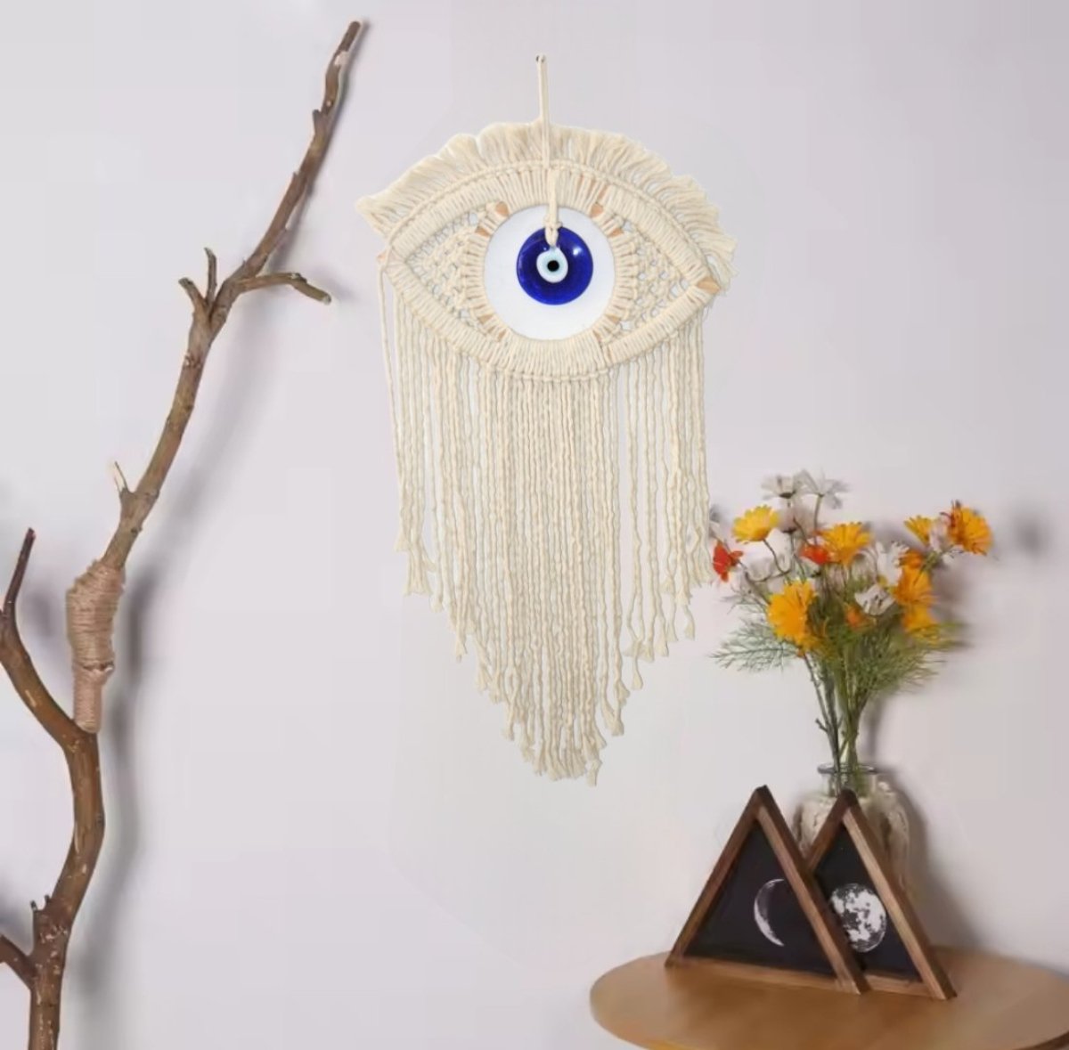 تعليقة حائط مكرمية على شكل عين شريرة