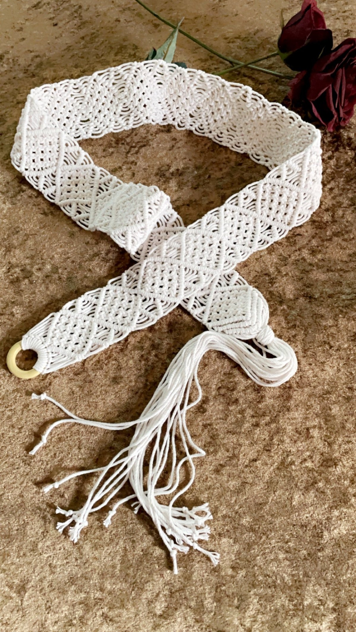حزام وسط هاند ميد مكرميه مصنوع من اجود الخيوط القطن بشكل عصري متاح تنفيذ جميع الالوان وجميع الاطوال ❤️