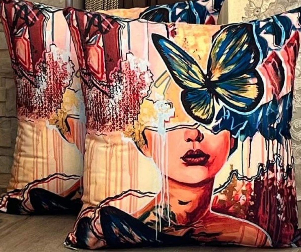 كفر بتصميم جديد الكفر وجهين وجه ثلاثيه الابعاد ووجه قطيفه ساده المقاس 45*45. سوسته سحريه من الجنب. يغسل بالغساله ألوانه ثابته