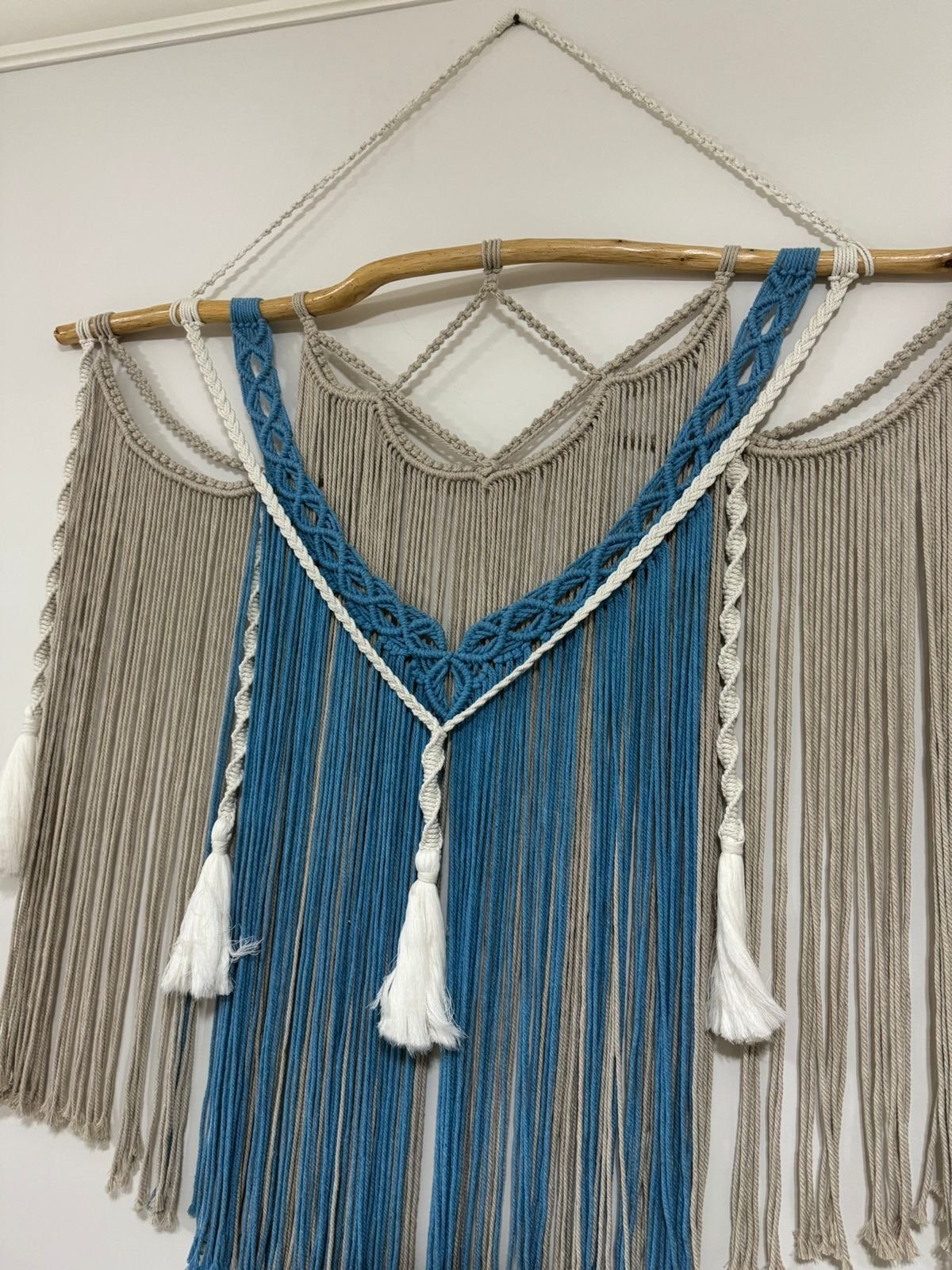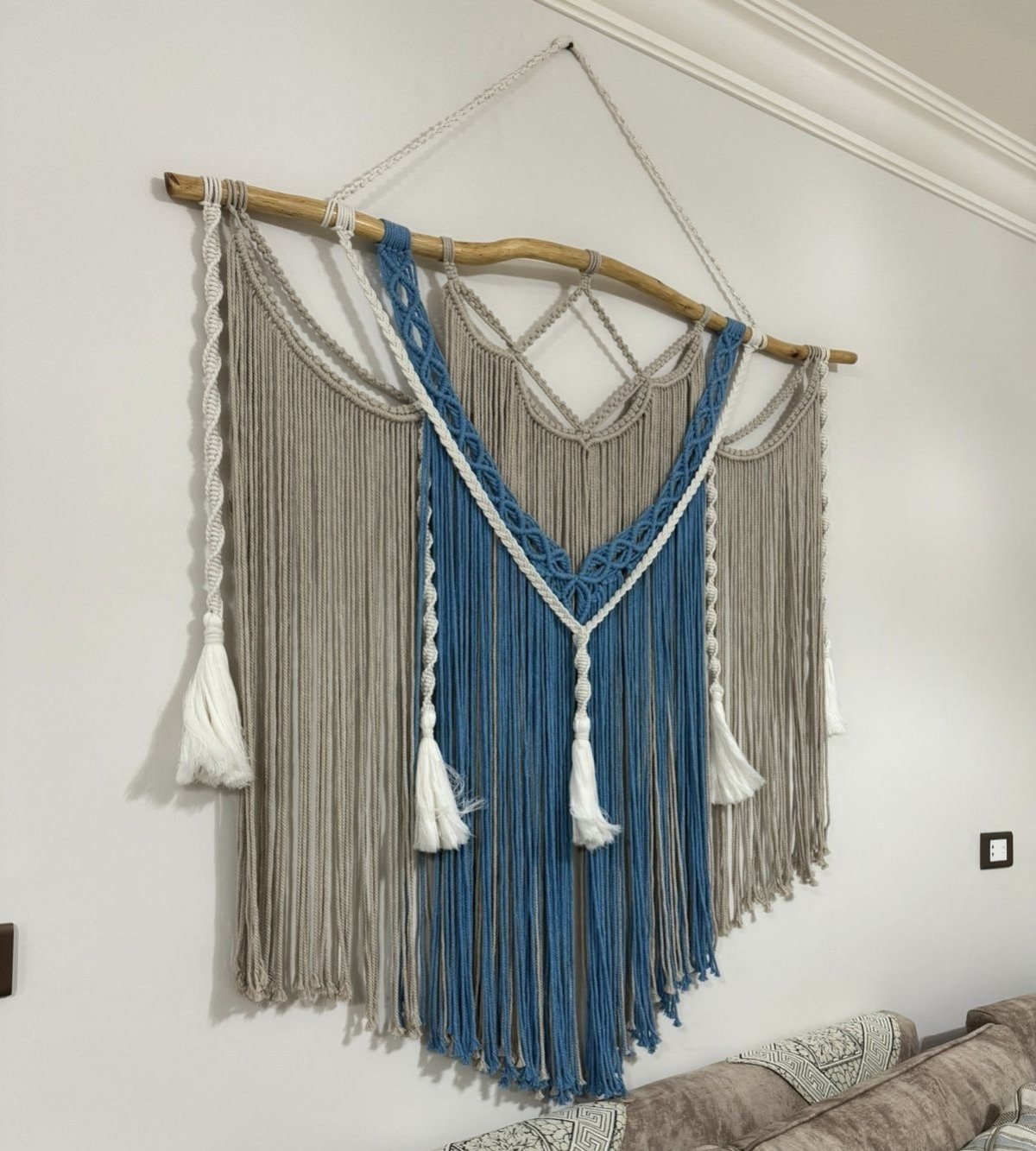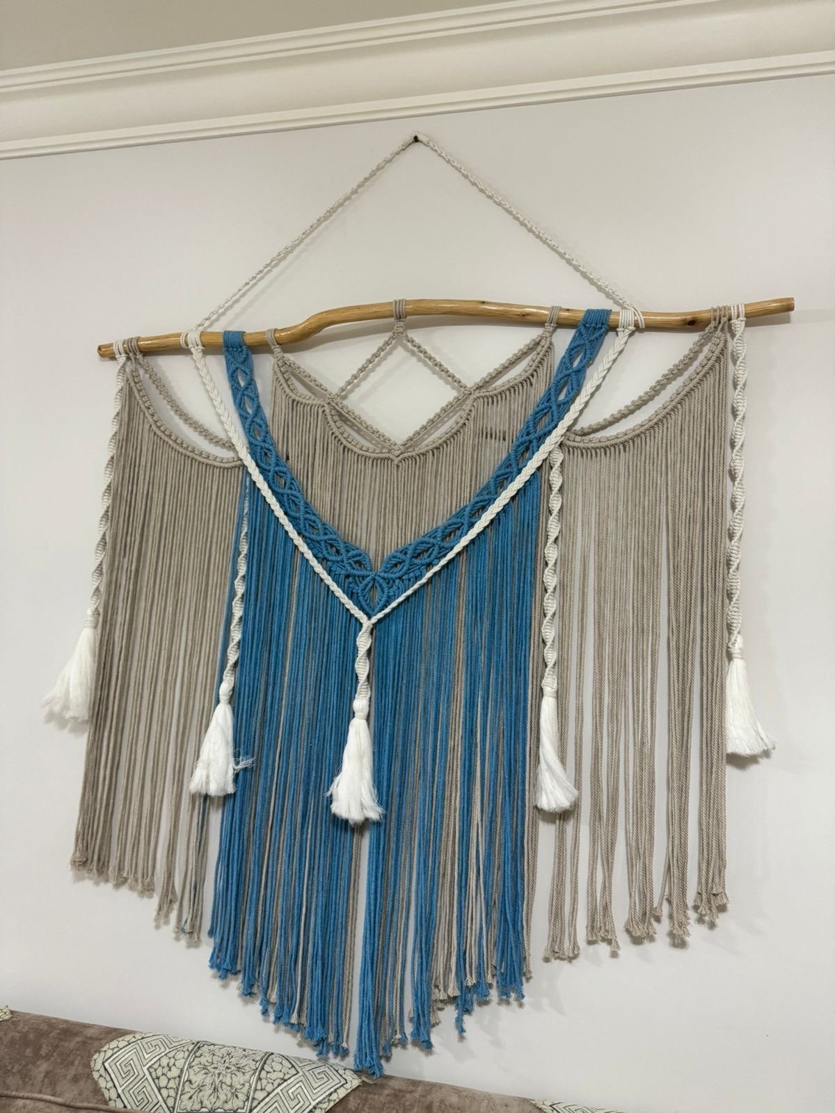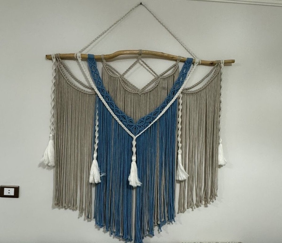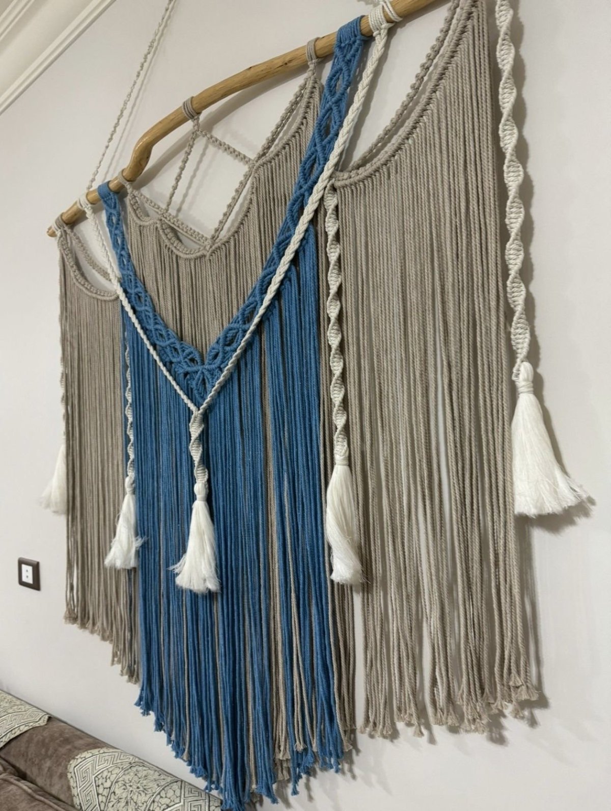 مكرميه جداريه معلقة مصنوعه من اجود الخيوط شغل يدوي طراز فريد وعصري ....متاحه التنفيذ بجميع الالوان عرضها 1,25سم وطولها 85سم