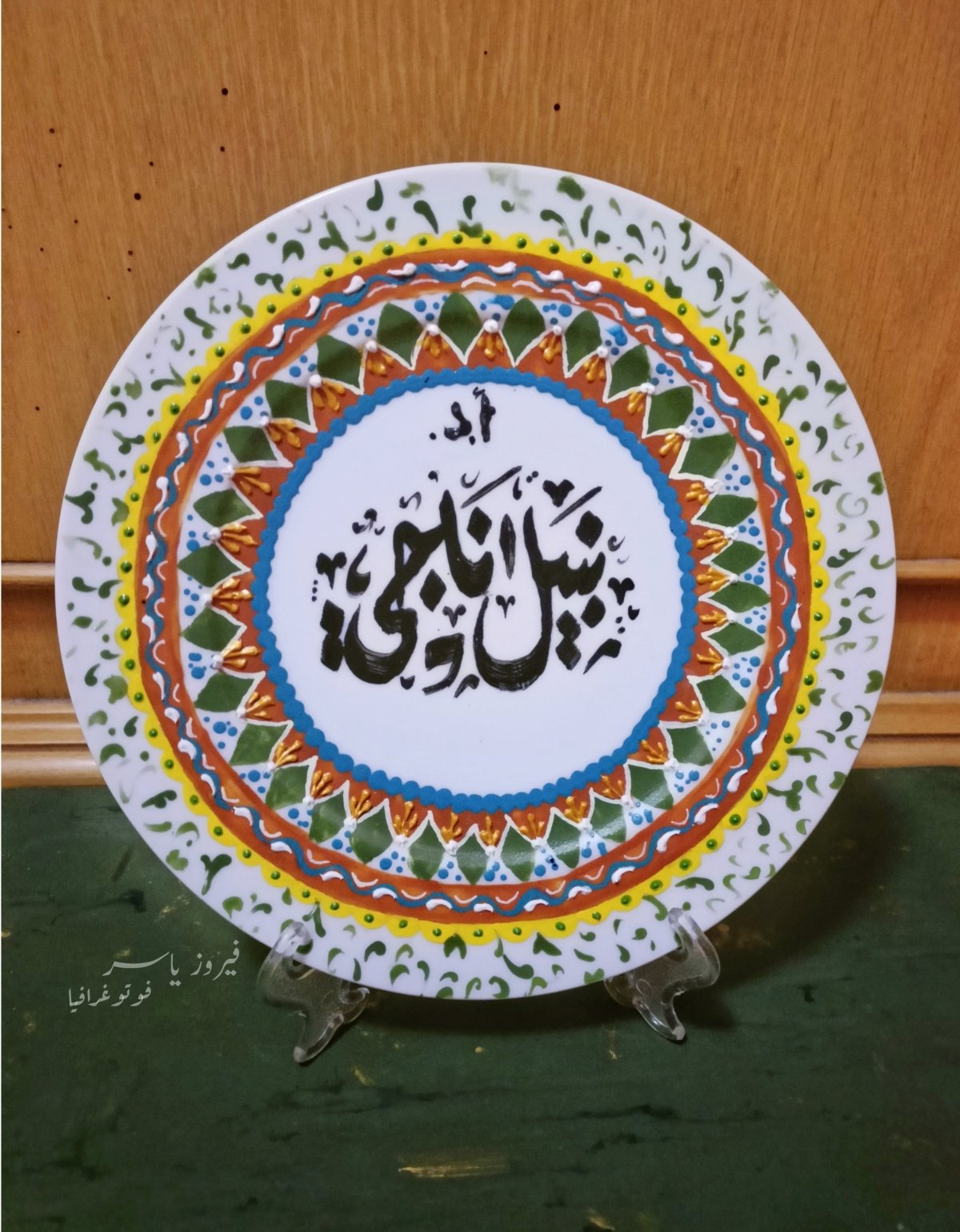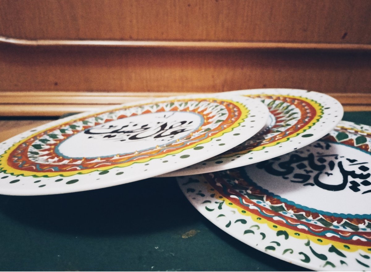 - طبق من البورسلين مرسوم يدويا بألوان بورسلين مع خط عربي