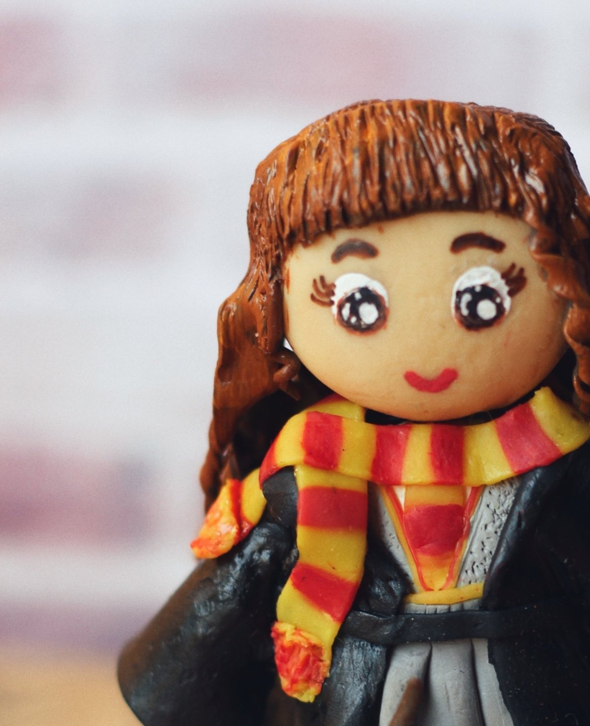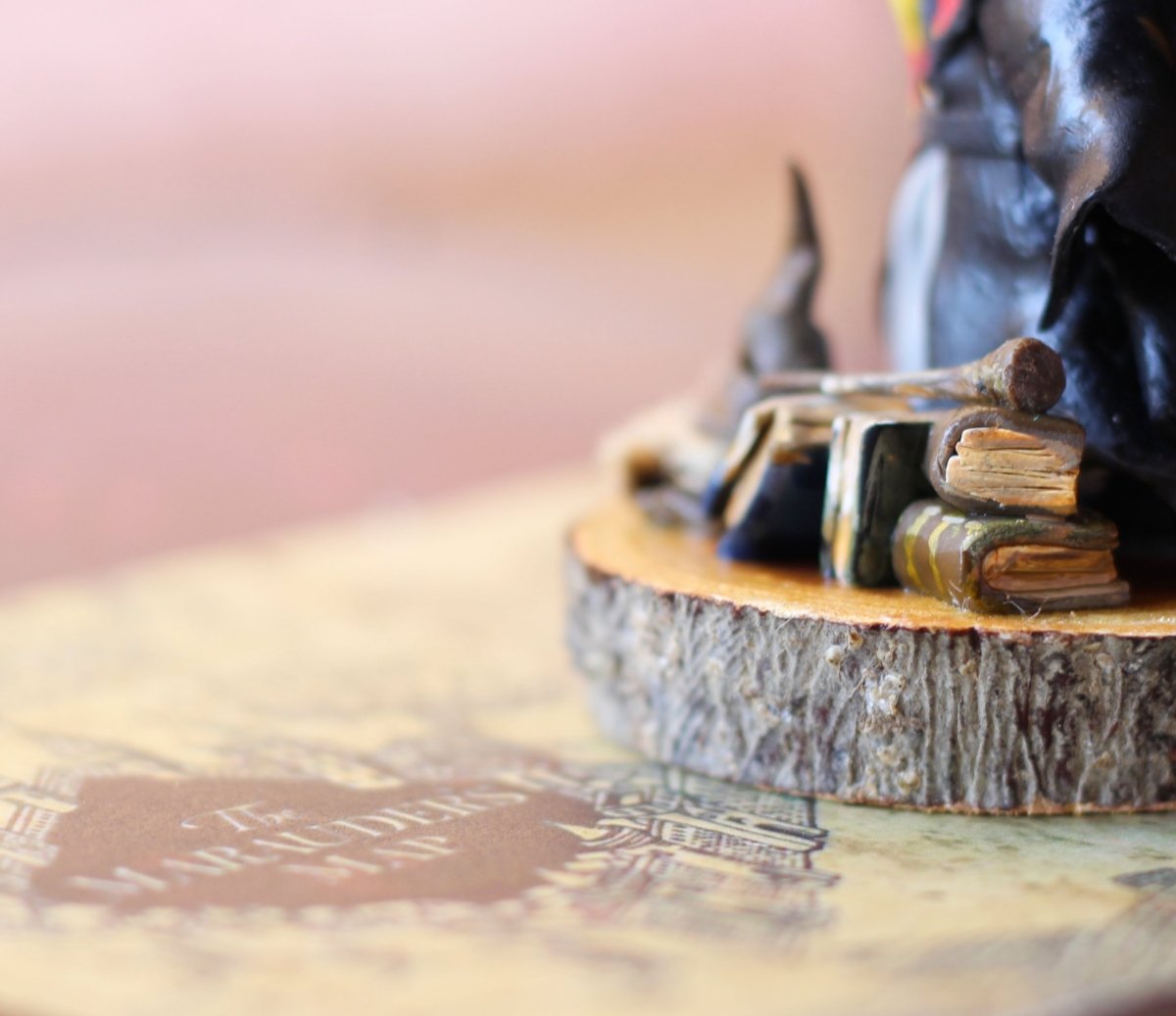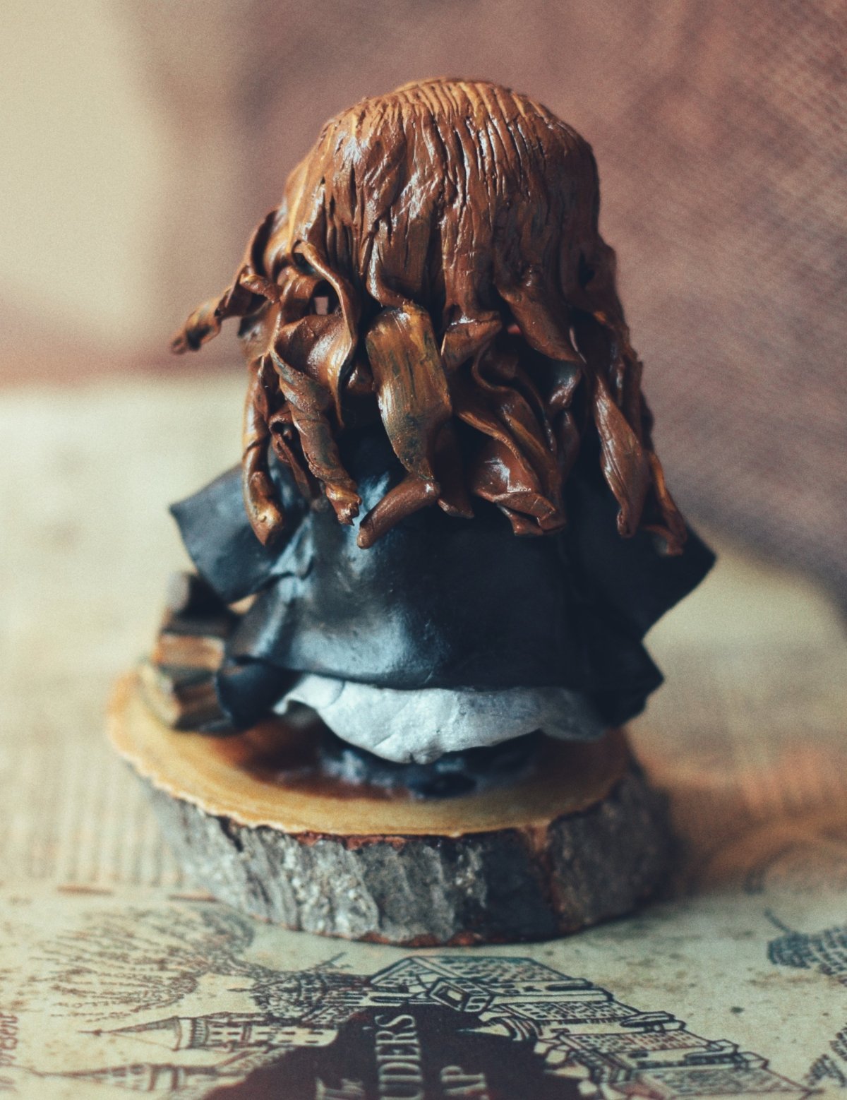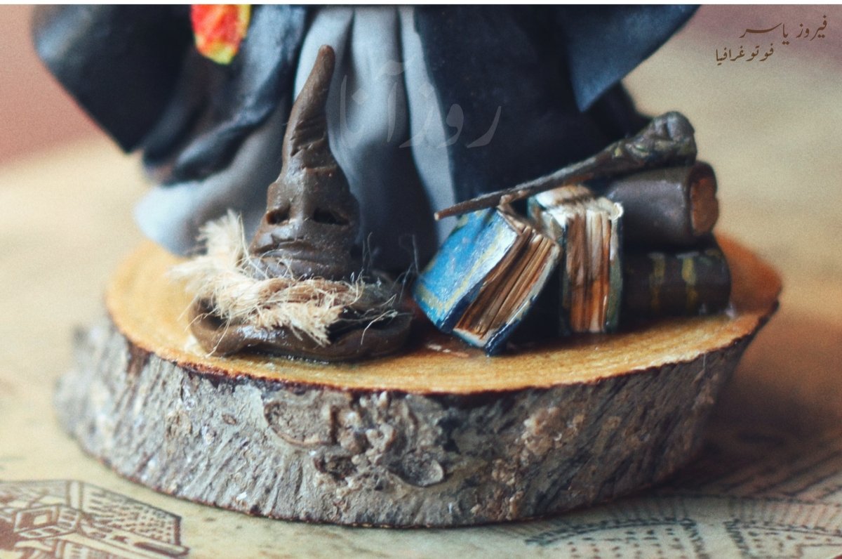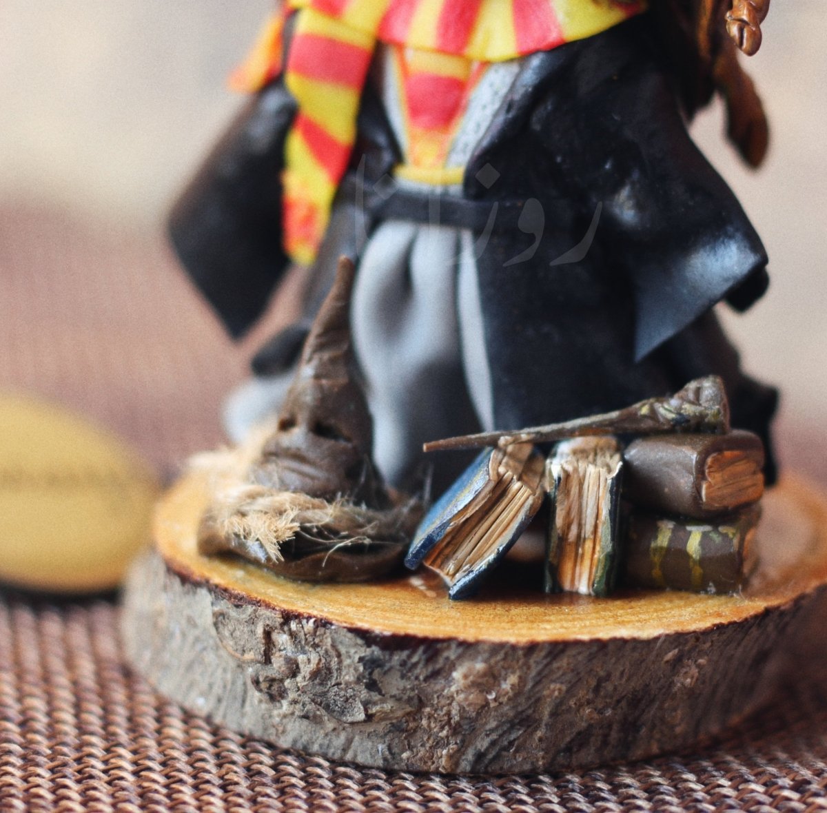 - مصغر من الصلصال الحراري لمحبي هيرميوني على جذع من الخشب
