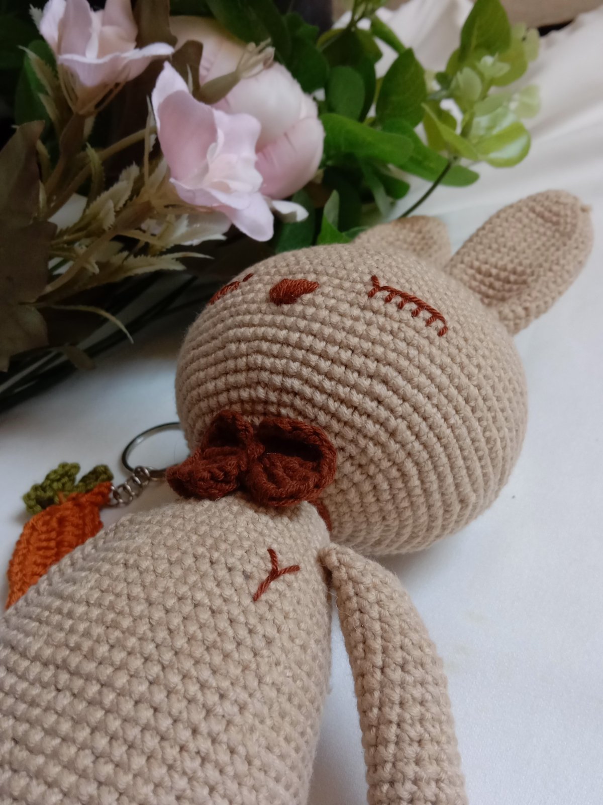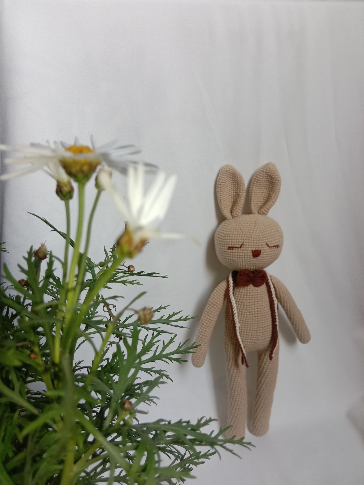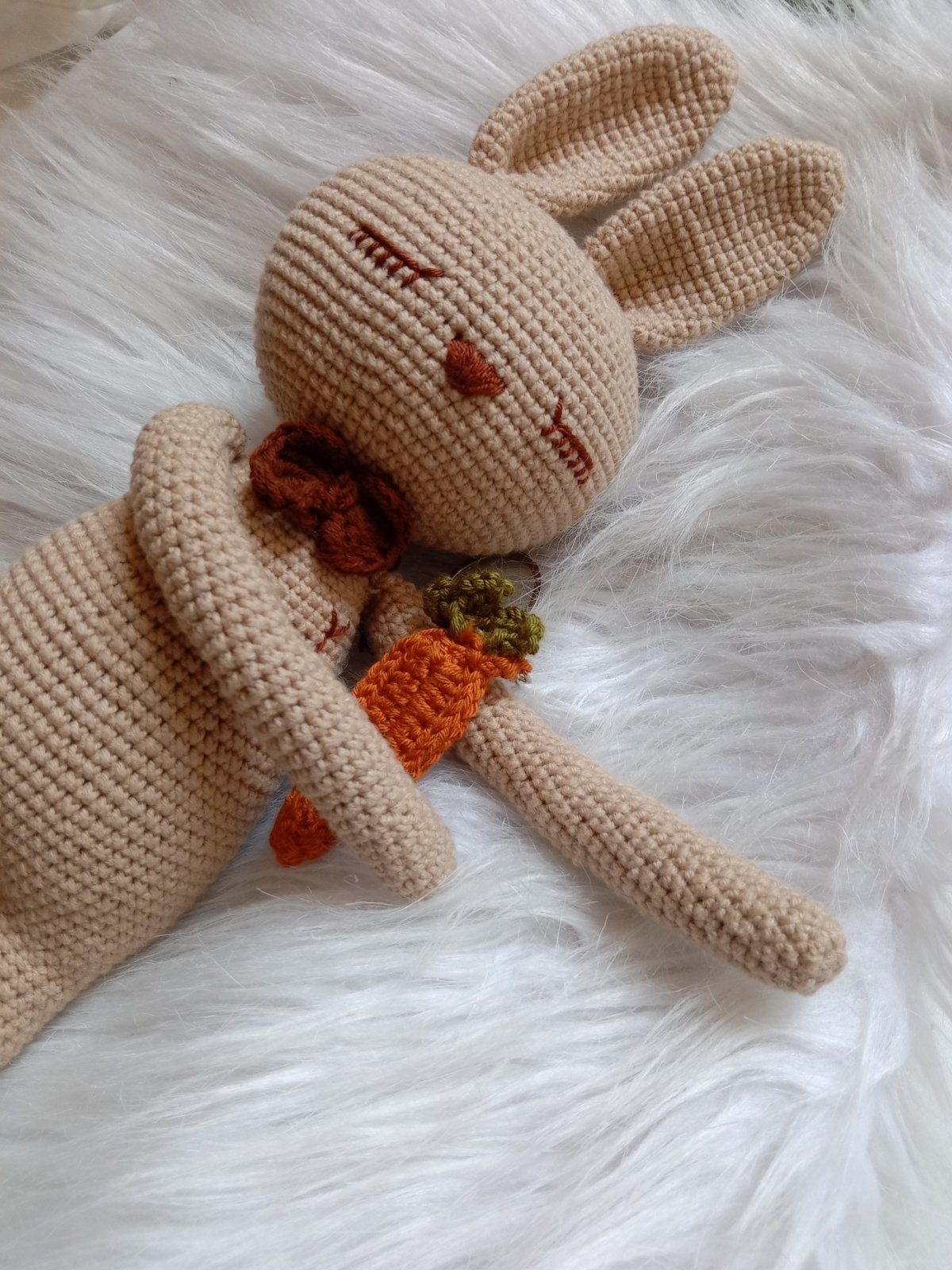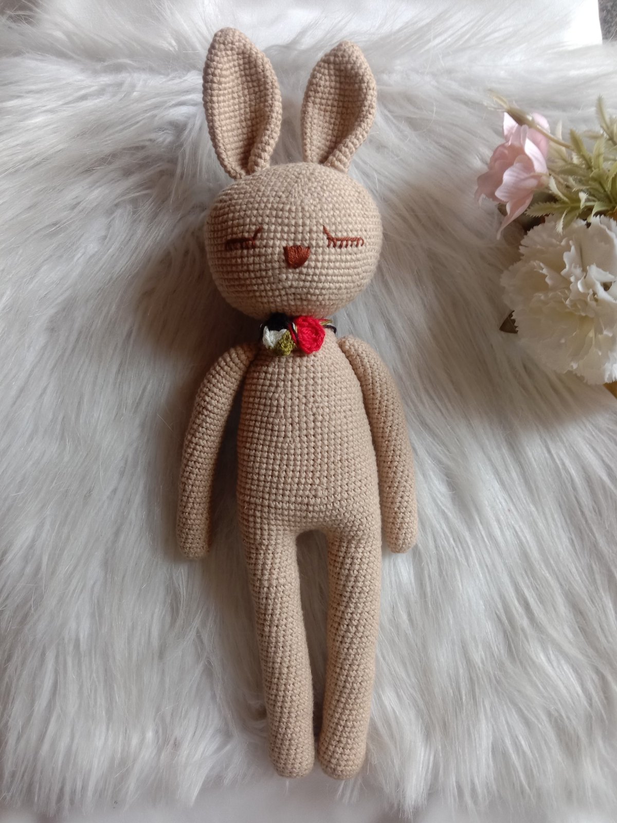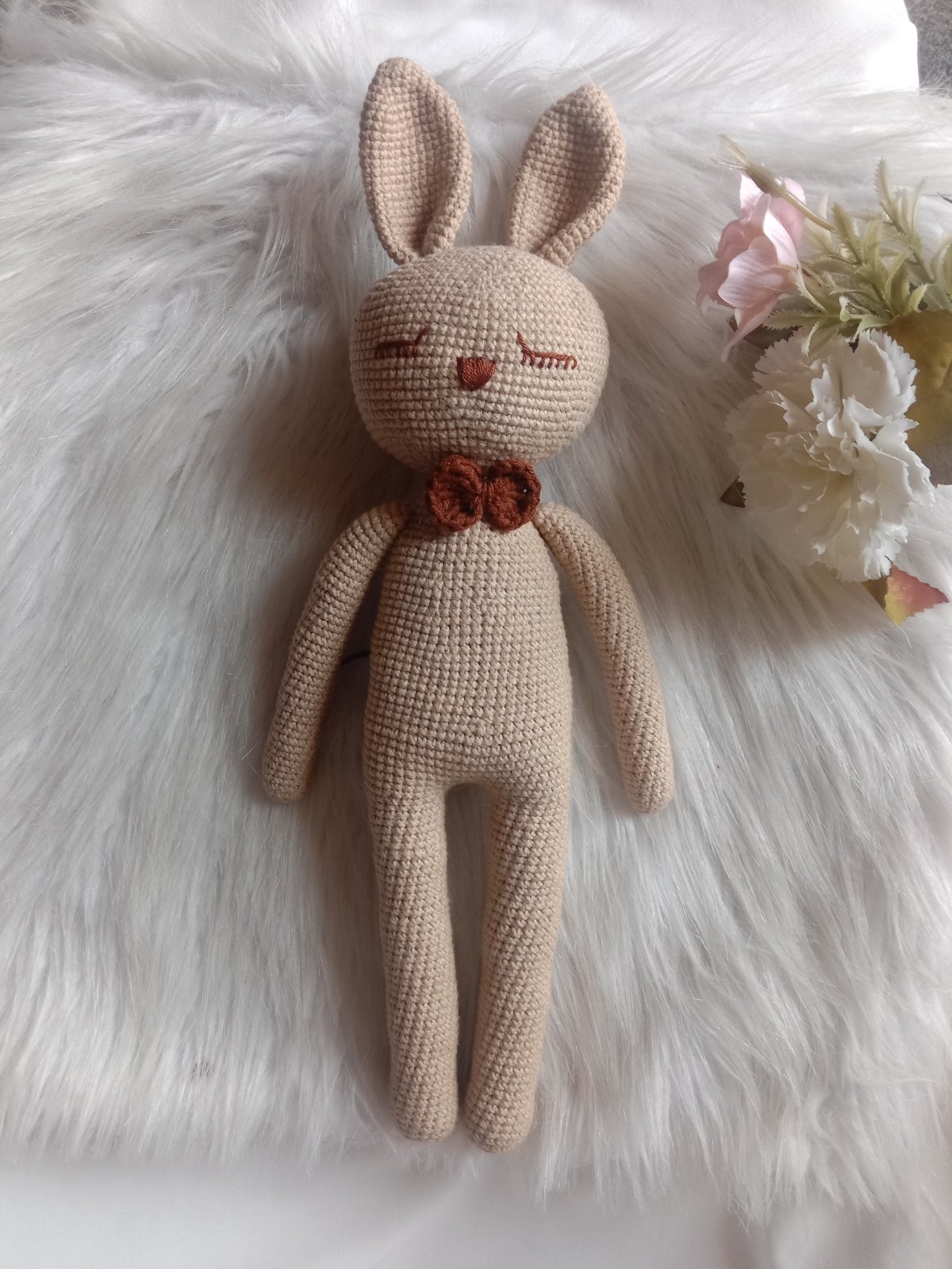 أرنب أميجرومي 35 سم لون بيچ مصنوع من خيط تركي ضد الوبرة مناسب للمواليد