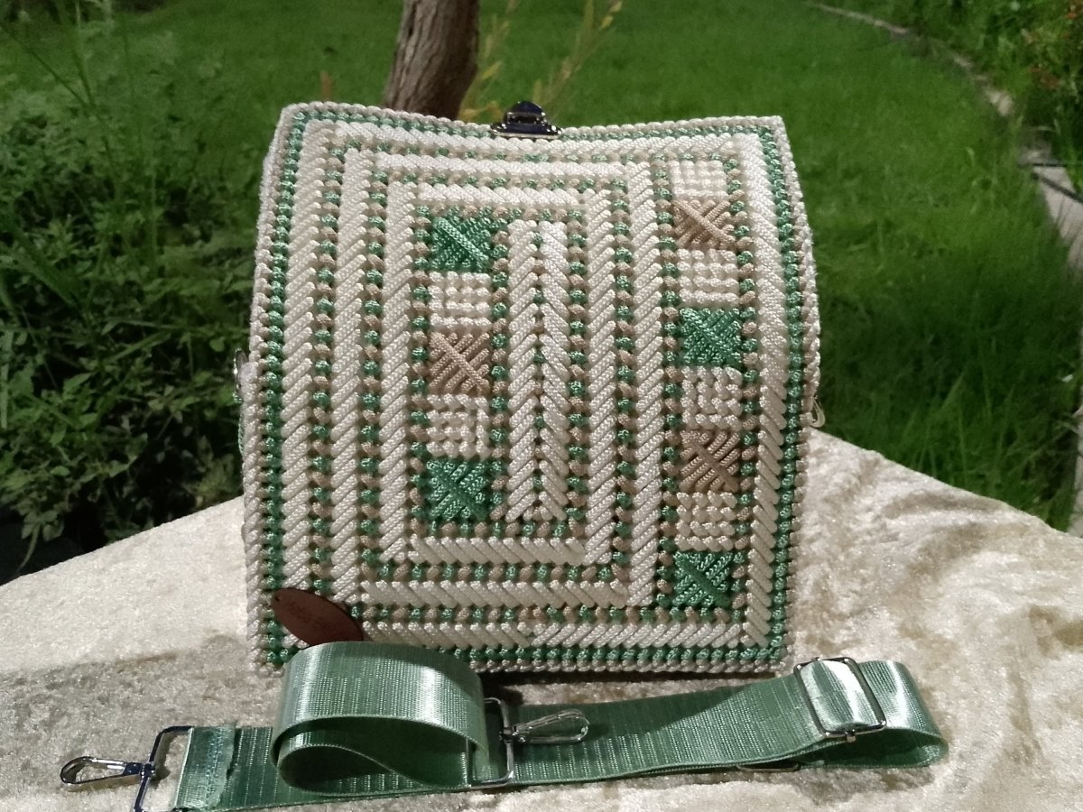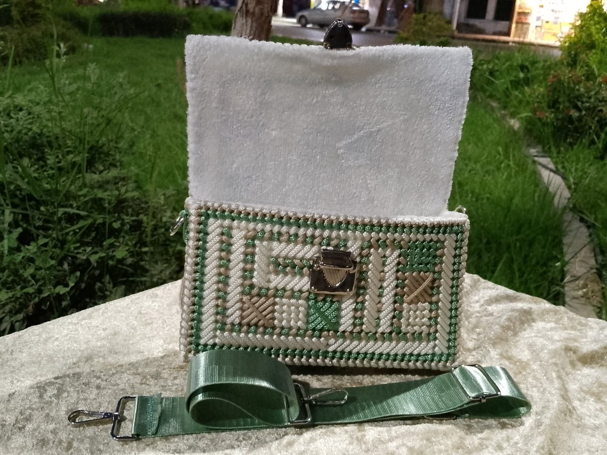 شنطة من الشبك الكانڤا المقاس : ٢٠×٢٥ مبطنة باجود انواع القطيفة مزودة من الداخل : ١ جيب بسوسته ، ا جيب مفتوح اليد : سلسلة او شريط من الستان الخاص بالشنط او من نفس الخيوط (حسب الطلب) متاح التنفيذ بالوان و تصميمات مميزة للعميل من ٧:٥ أيام