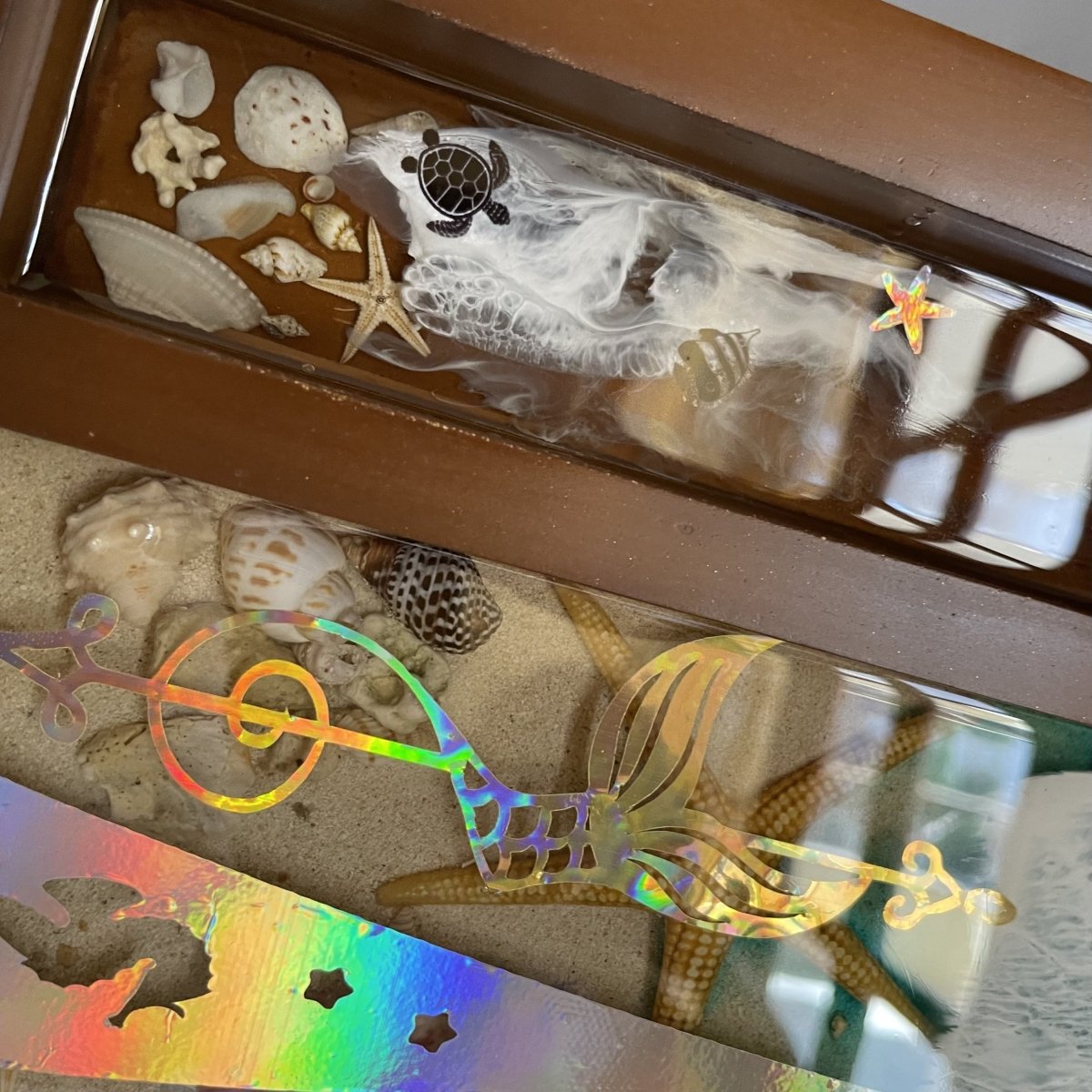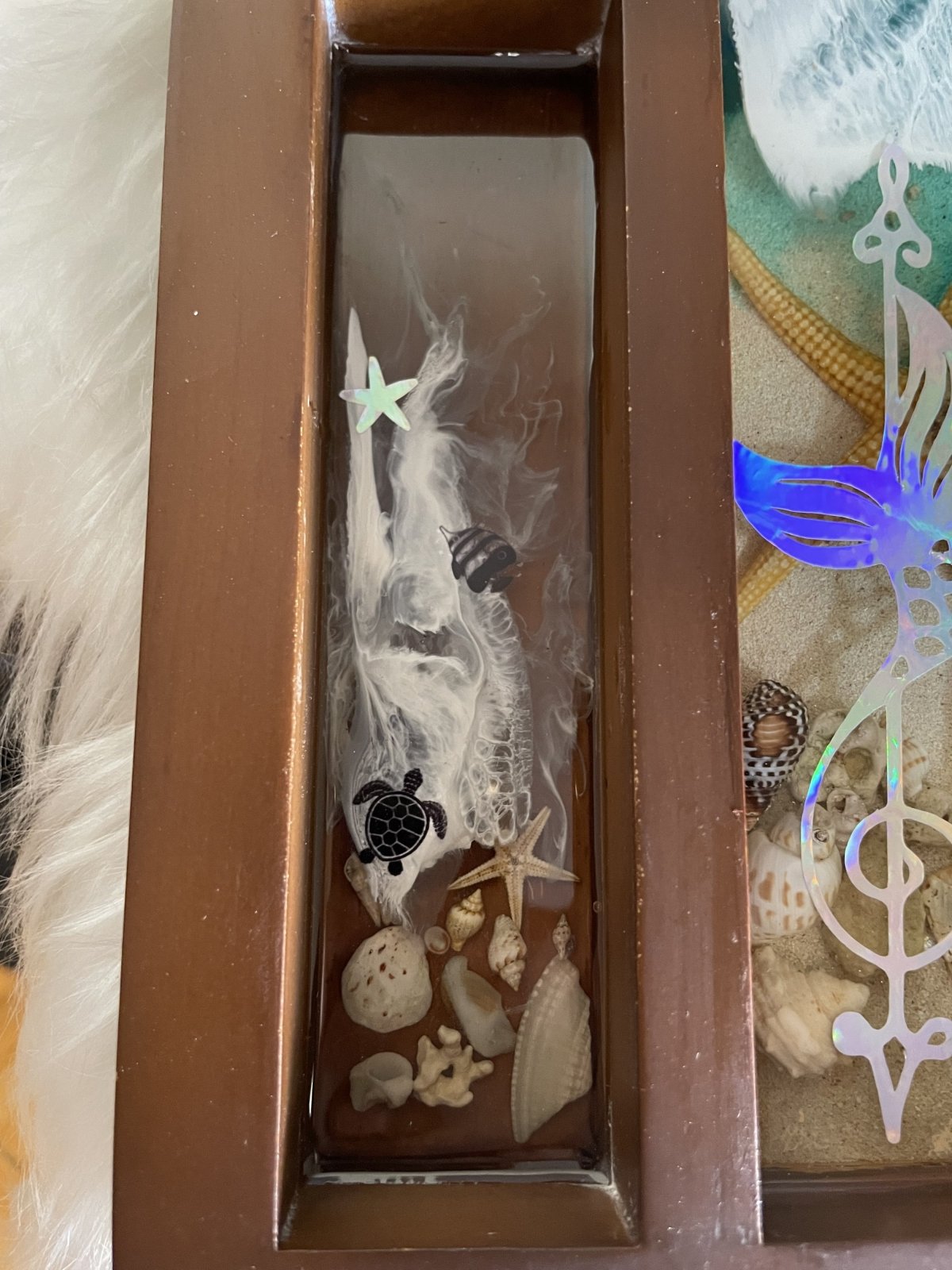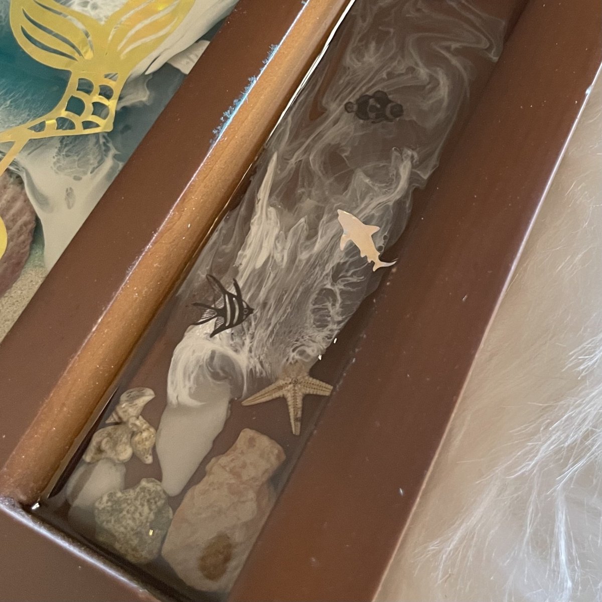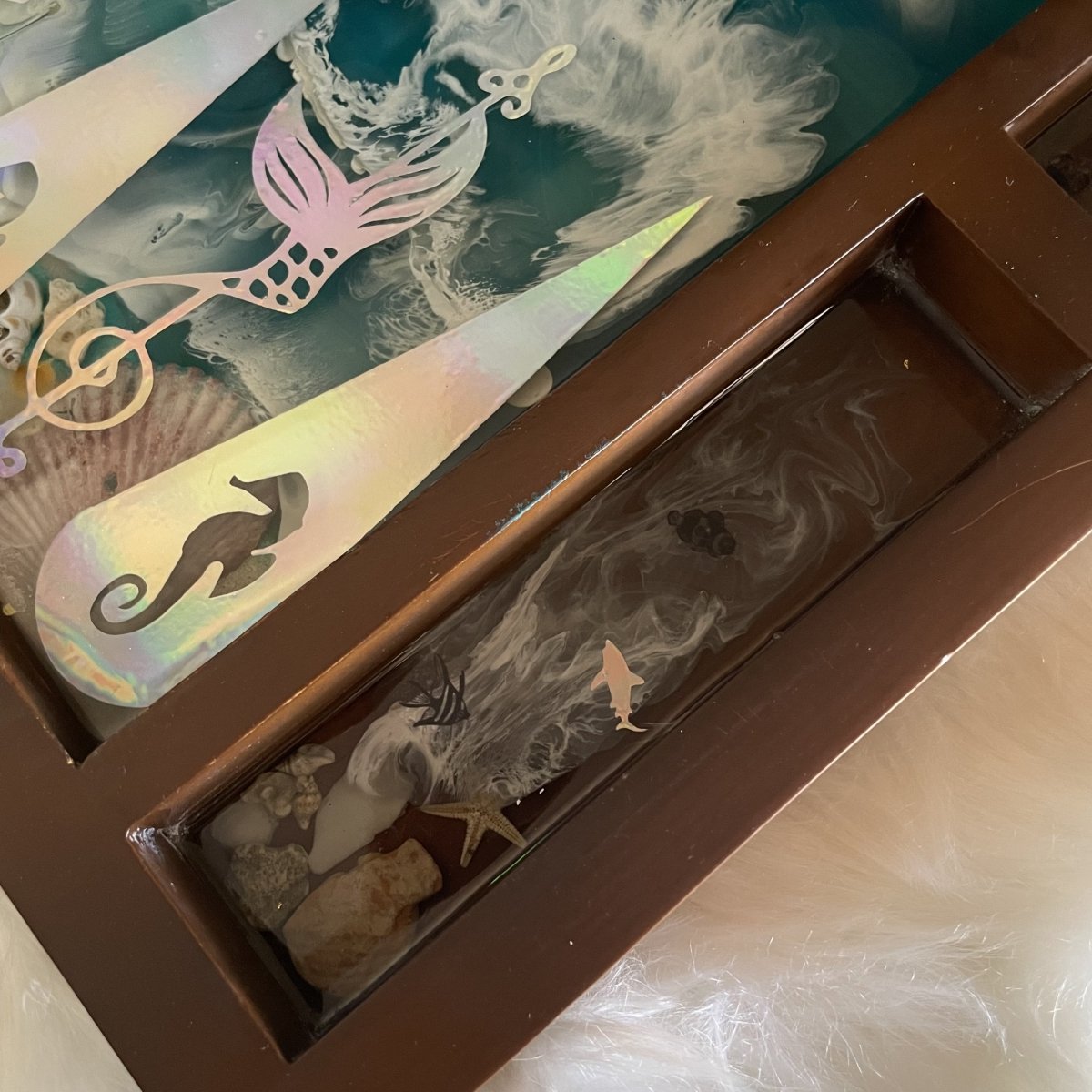طاوله من الريزن في بوكس من الخشب السويدي مع ثيم البحر