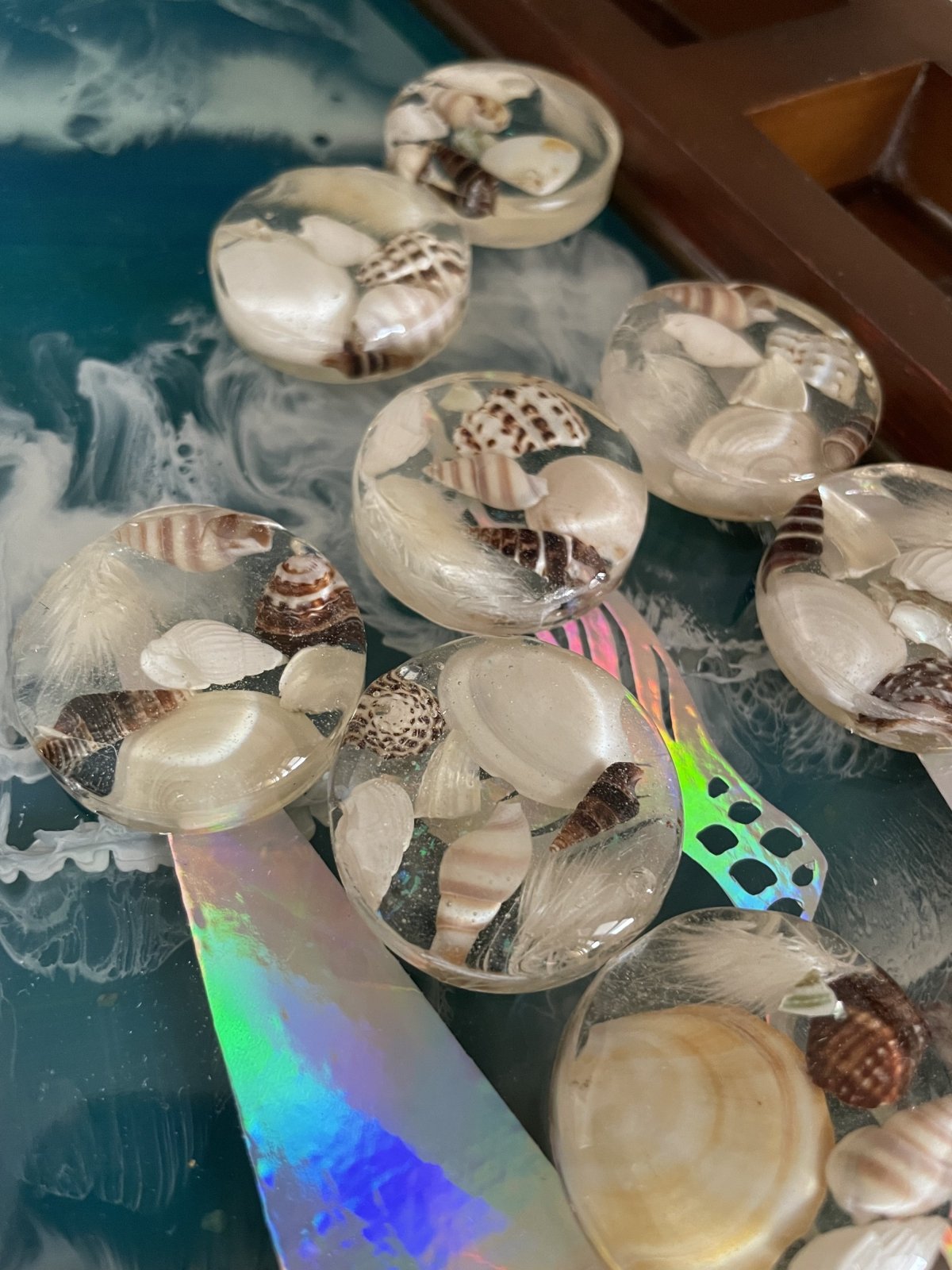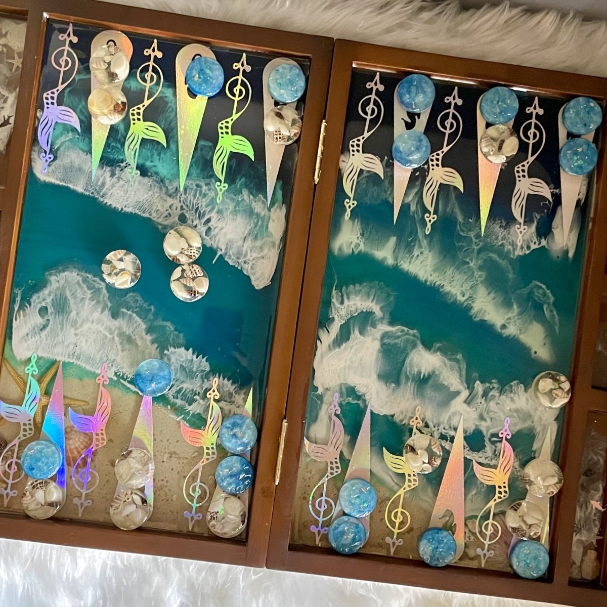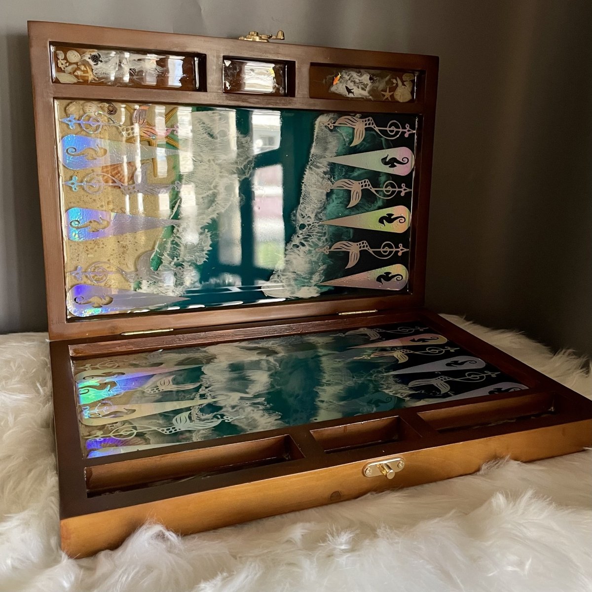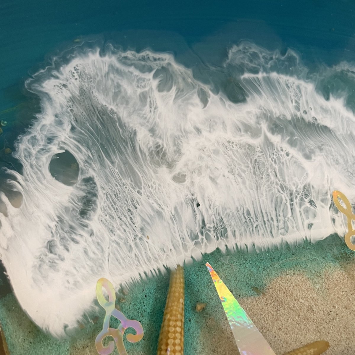 طاوله من الريزن في بوكس من الخشب السويدي مع ثيم البحر