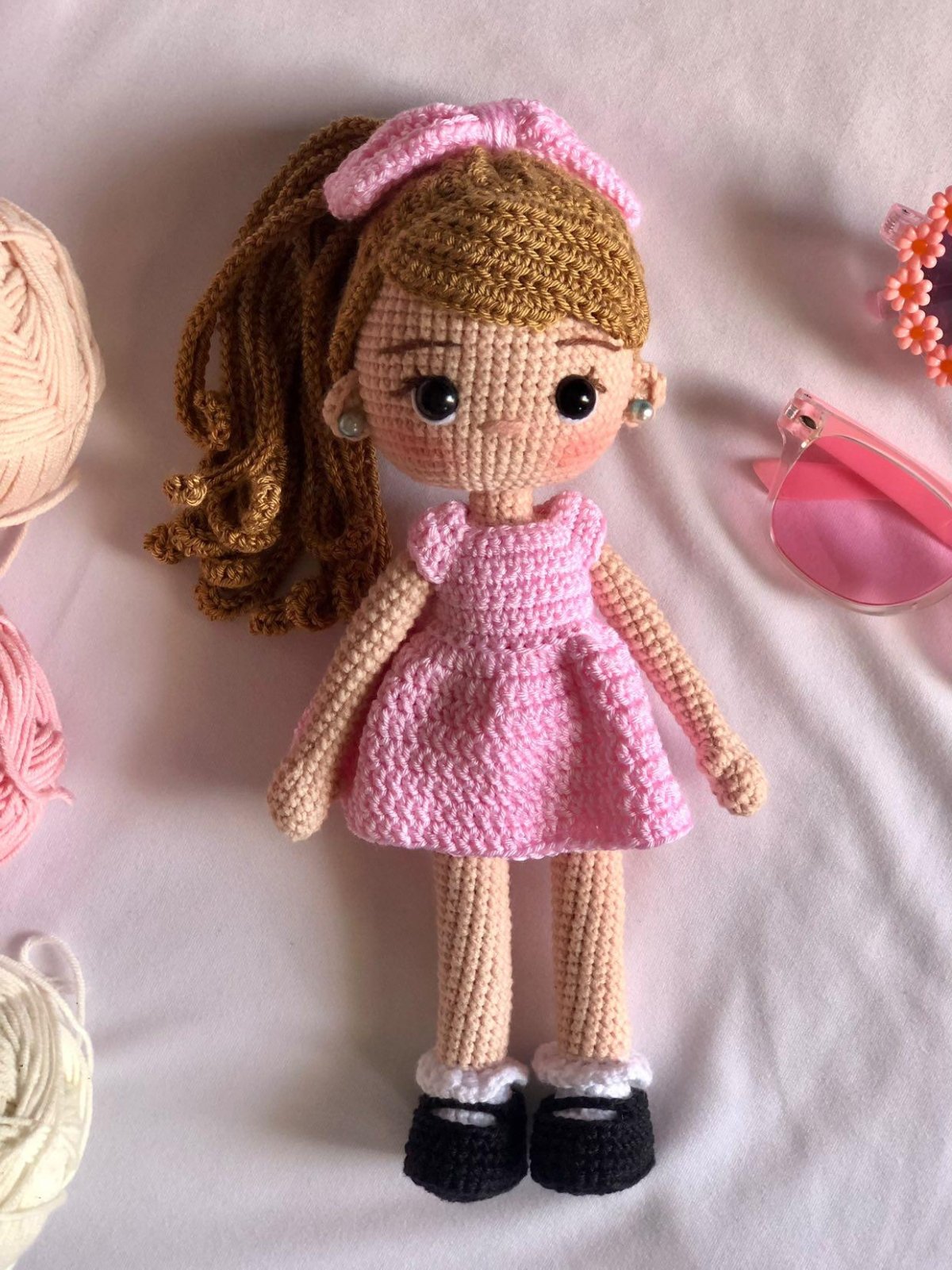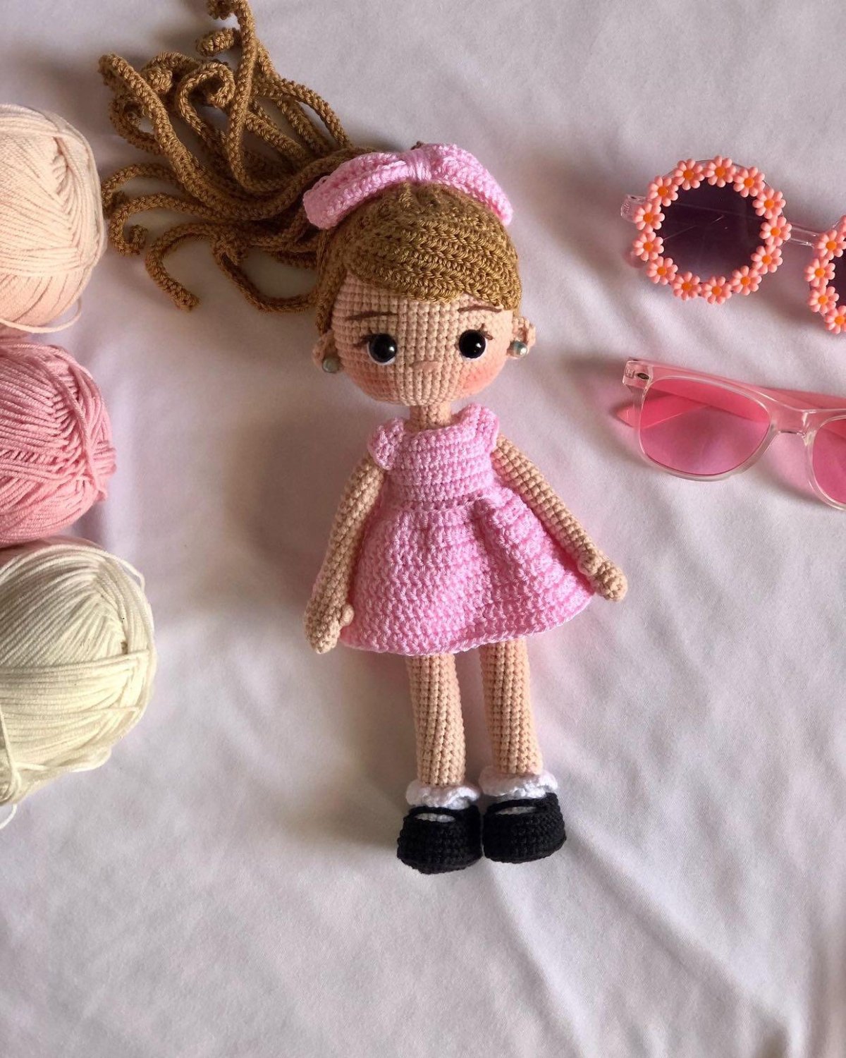 .دميه "لينا" بشعرها الذهبي المربوط وفستانها الرقيق