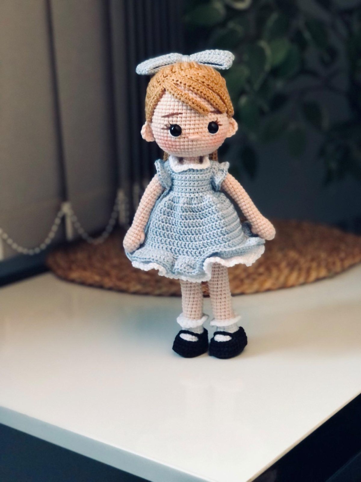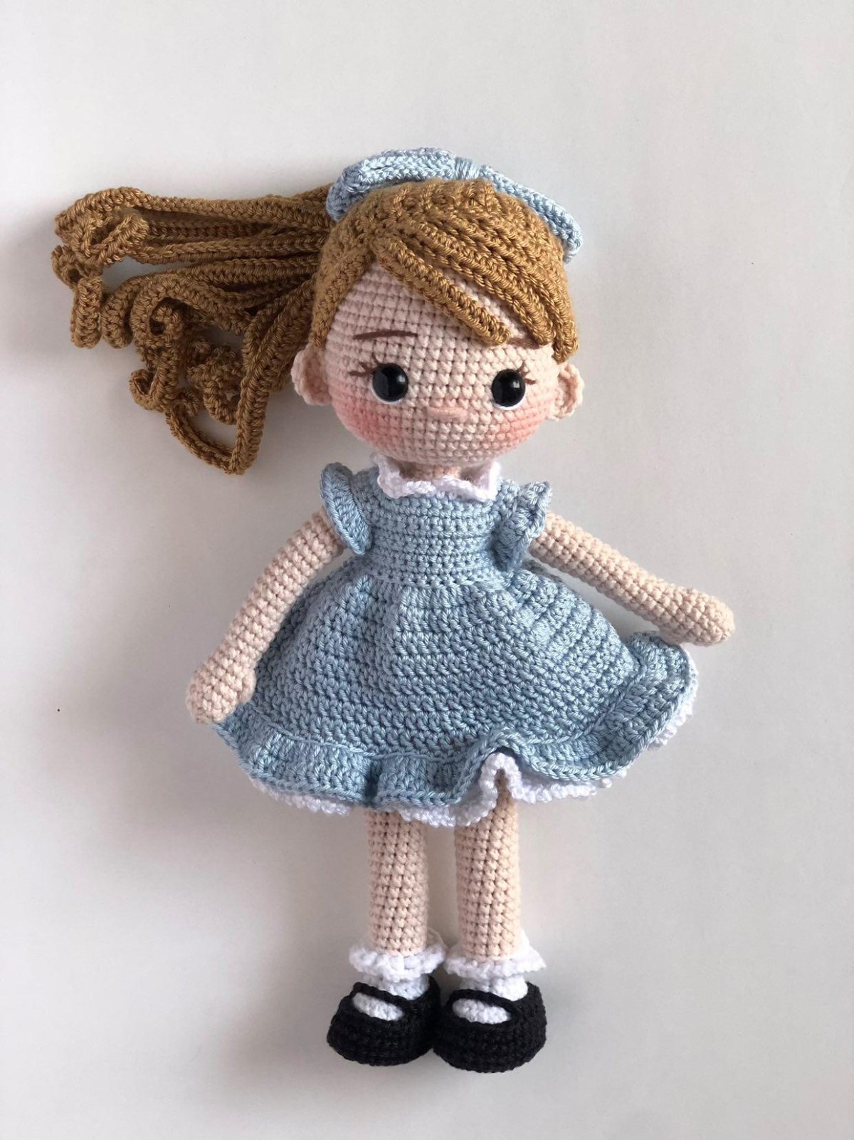 دميه "نينا" بشعرها الذهبي المربوط وفستانها الرقيق