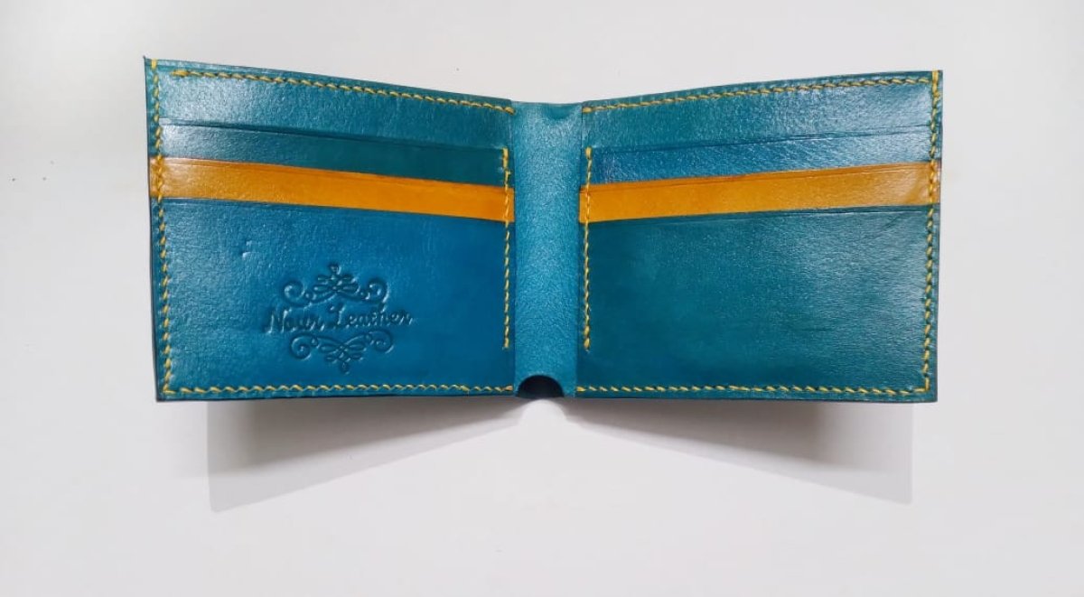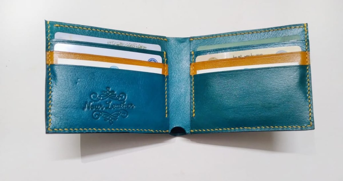 محفظه جلد طبيعي اصلي (بيفولد كلاسيك)لون تركواز