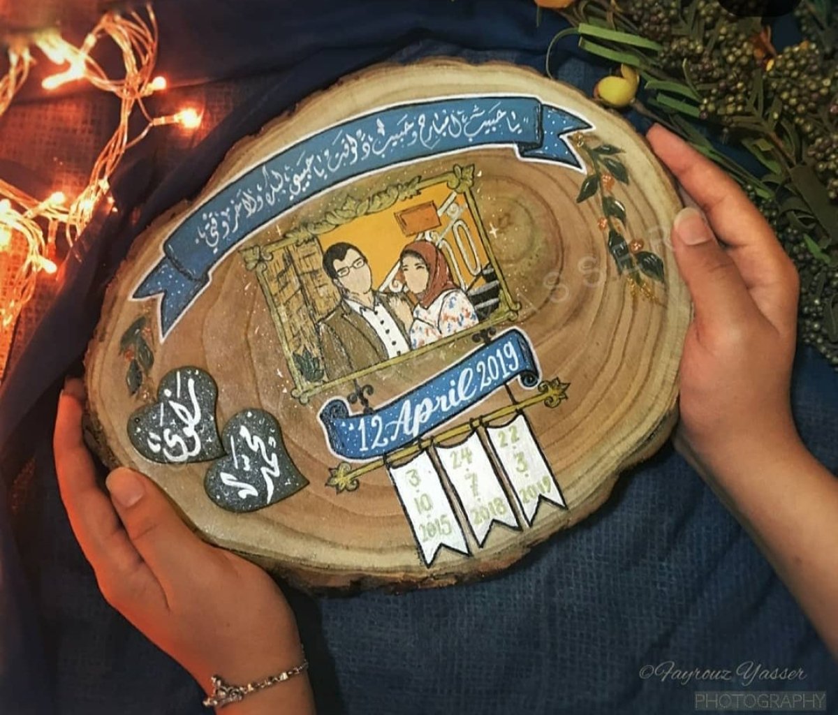 -جذع خشب طبيعي مرسوم يدويًا ..الوان أكريليك وخط عربي - حجم 25 سم