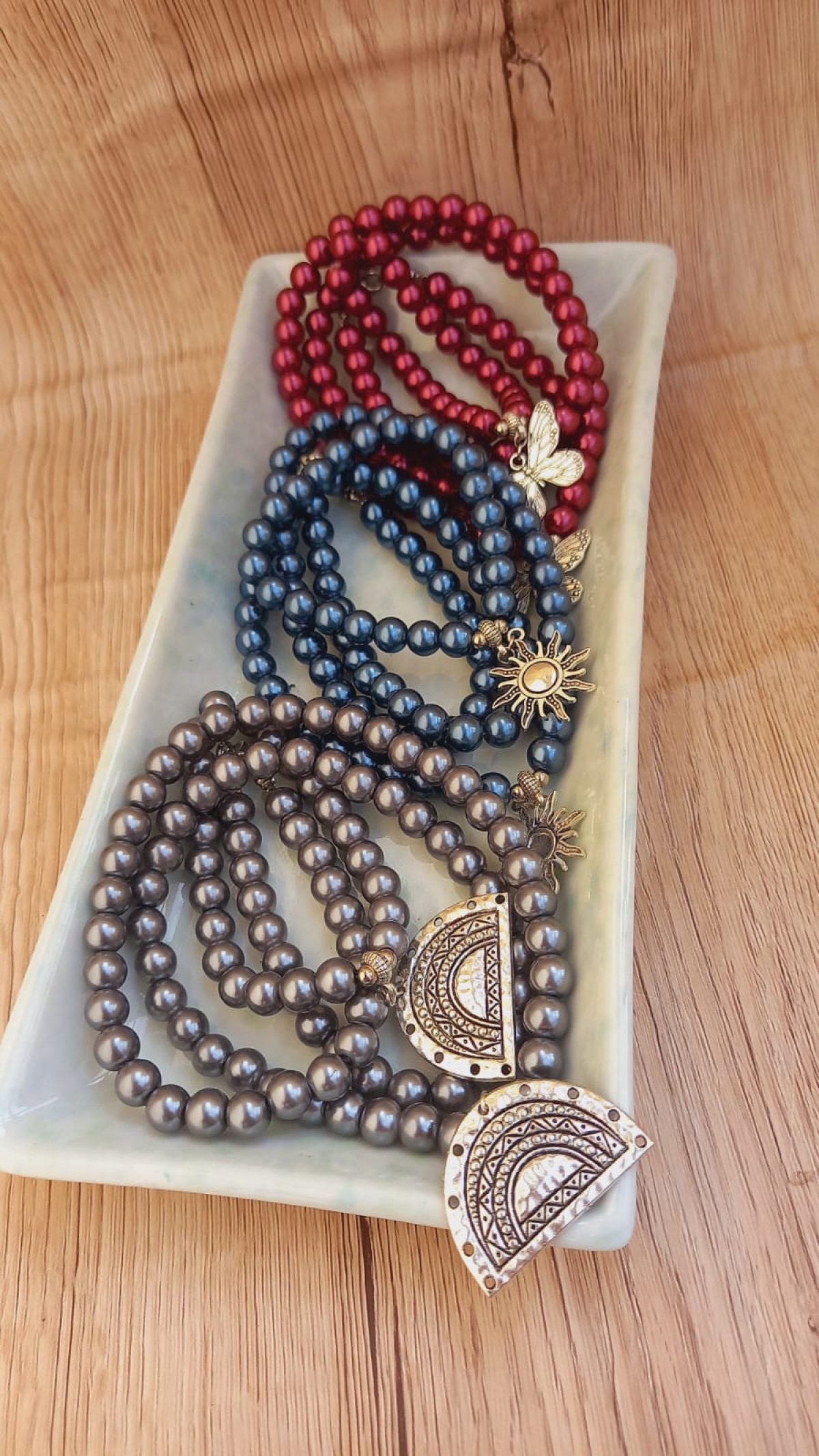 عقد لولى بترولى واسورة عقد لمحبى البساطة من اللولى الالوان بدلايات خفيفة ورقيقة عقد وغويشة لولى بترولى بدلاية الشمس العقد يمكن التحكم فى طوله من خلال القفل ومتاح عمل اطوال مختلفة بالطلب العقد مزود بقفل لتسهيل ارتداؤه او لبسه اسورة متعددة الاطوال فى اليد