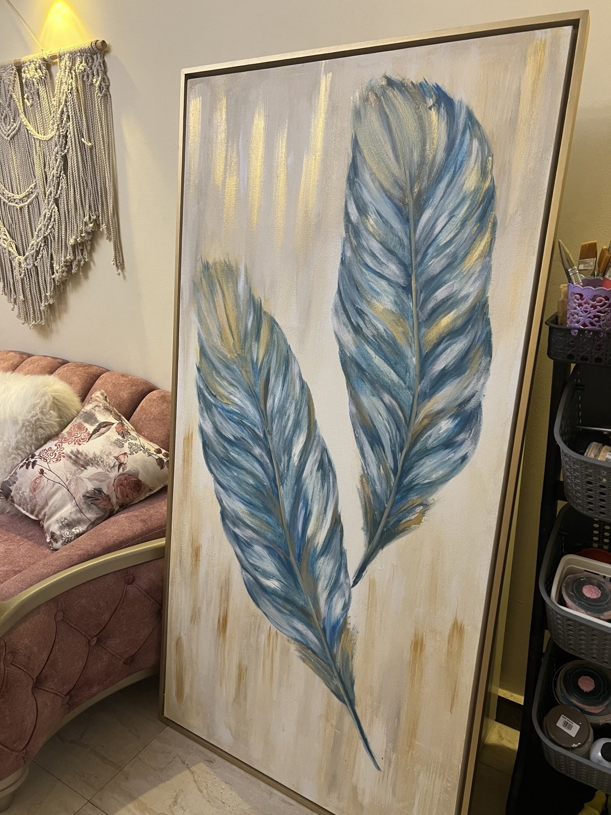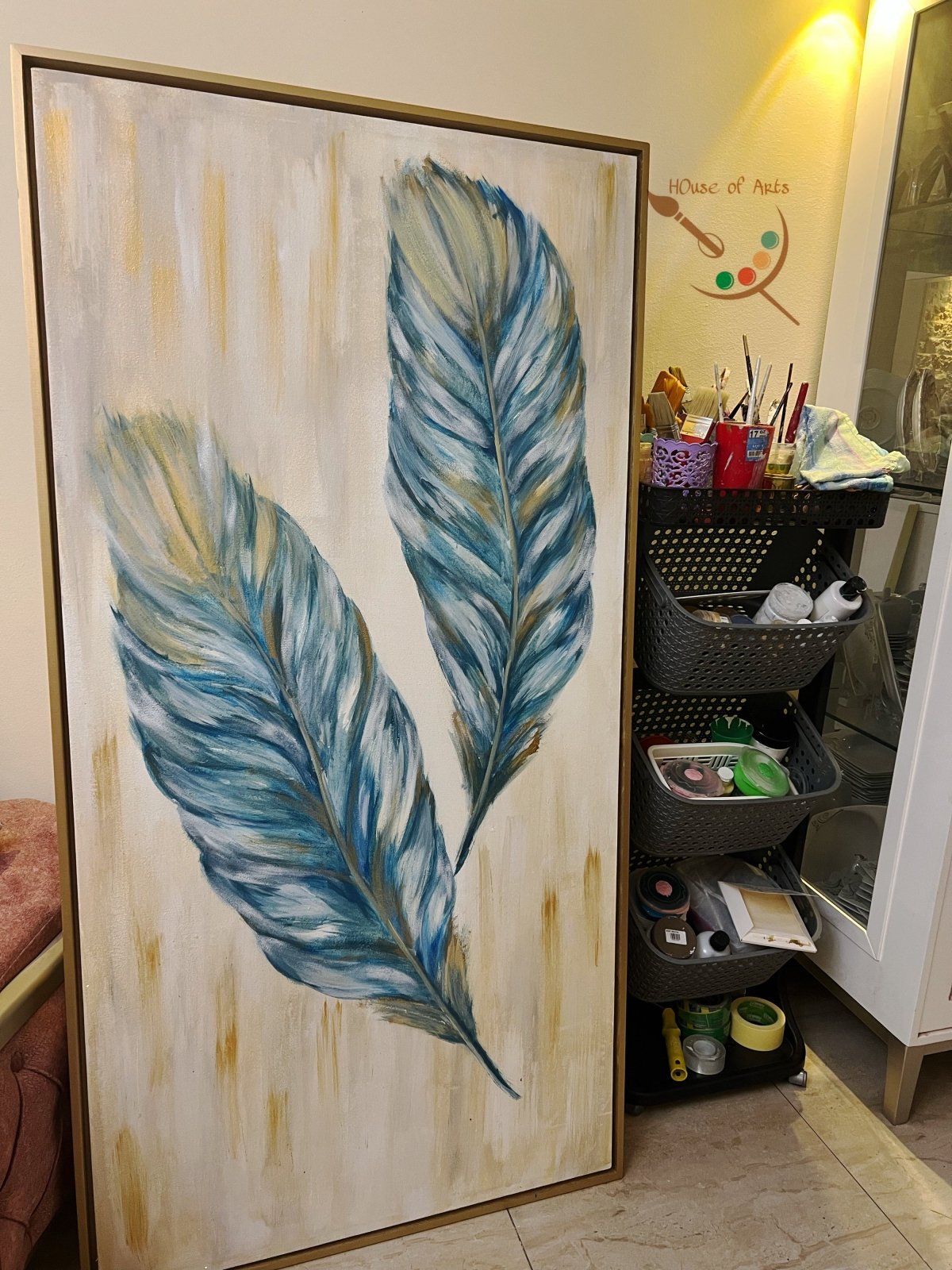 تابلوه هاند ميد اكليريك وورق دهب ع توال فريم جولد مقاس ١٦٠ * ٨٠ متاح تنفيذ اي مقاس او شكل اخر