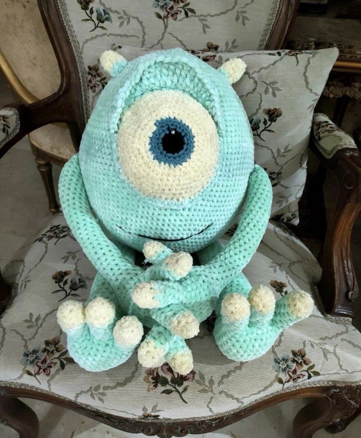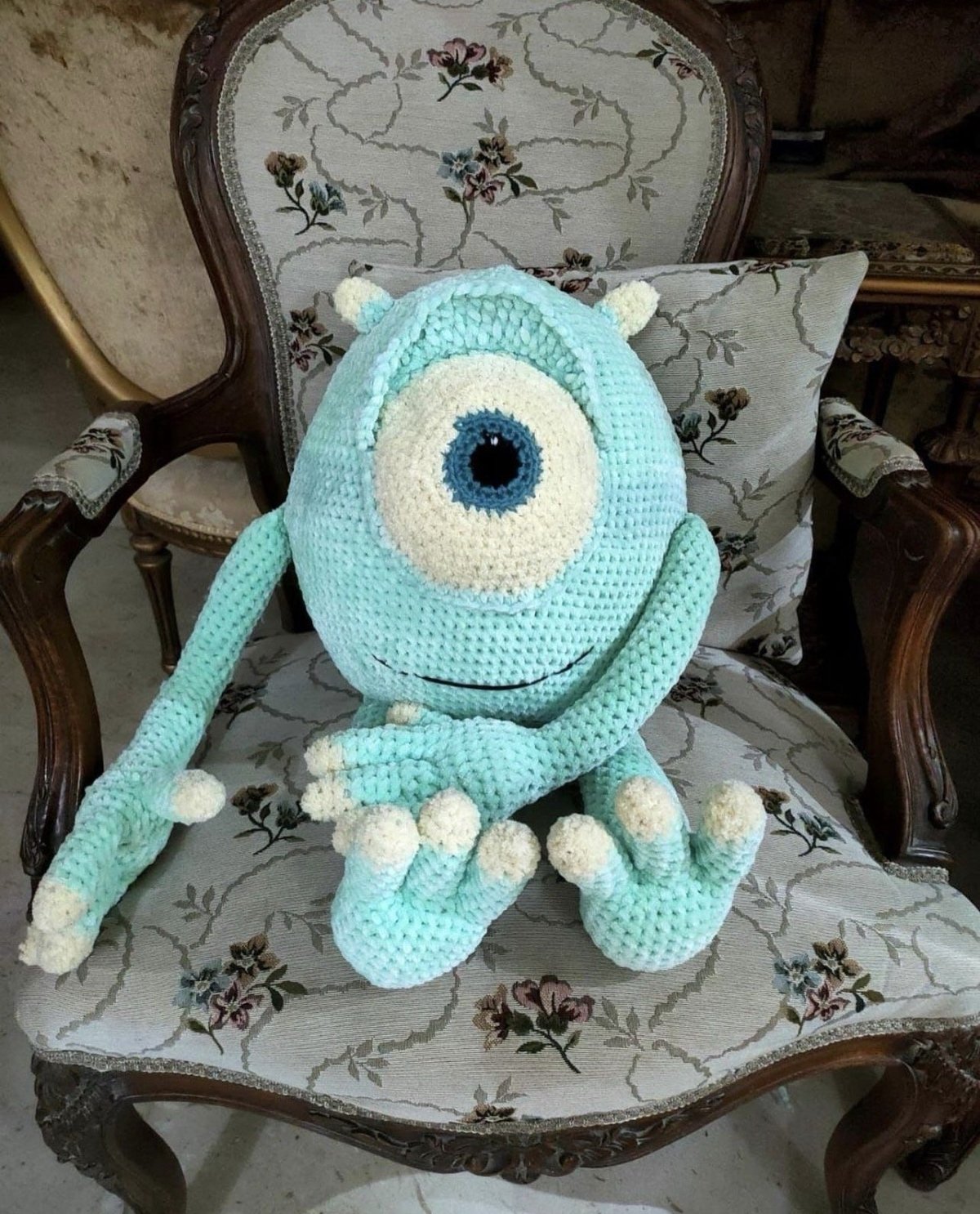 مارد وشوشني من ابطال فيلم كرتون شركة المرعبين بخيط قطيفة ناعم وحشو طري حضنه جميل وينفع كوسادة حجم كبير