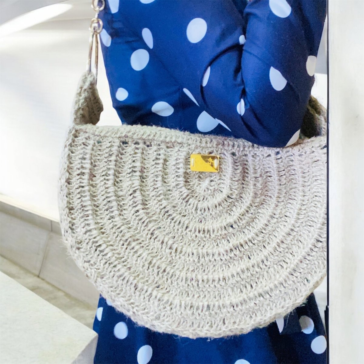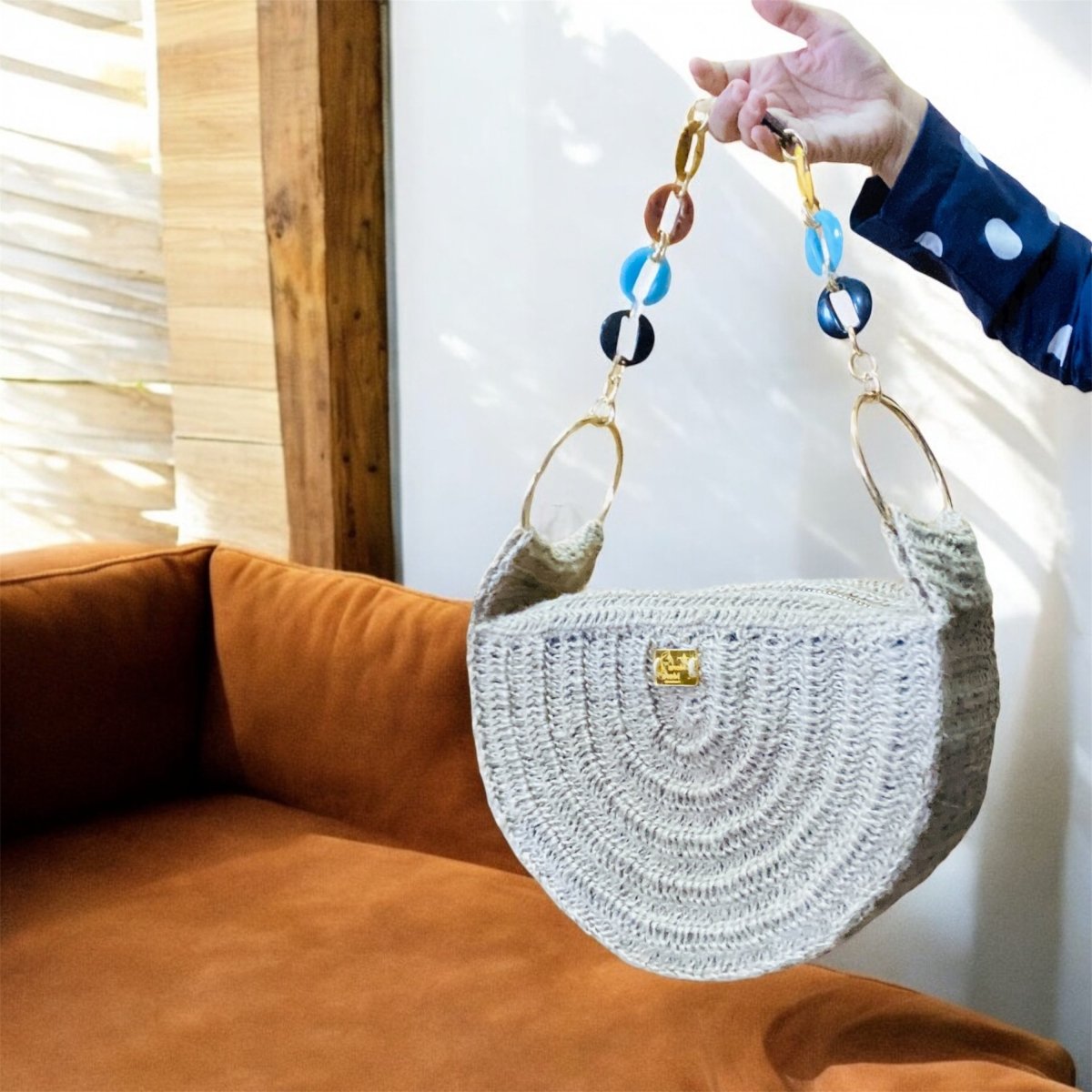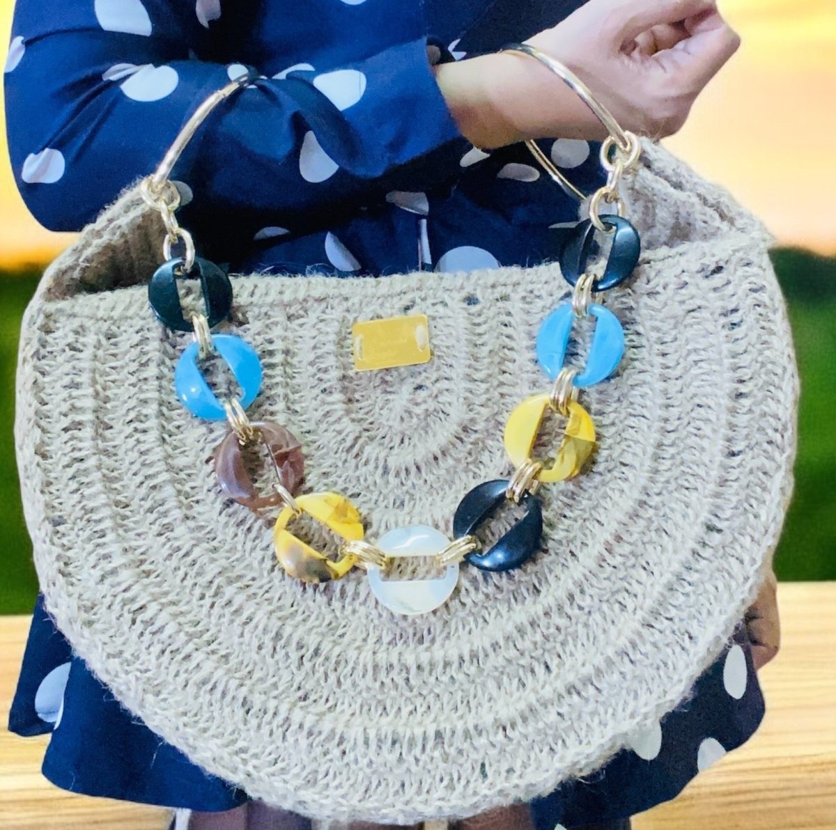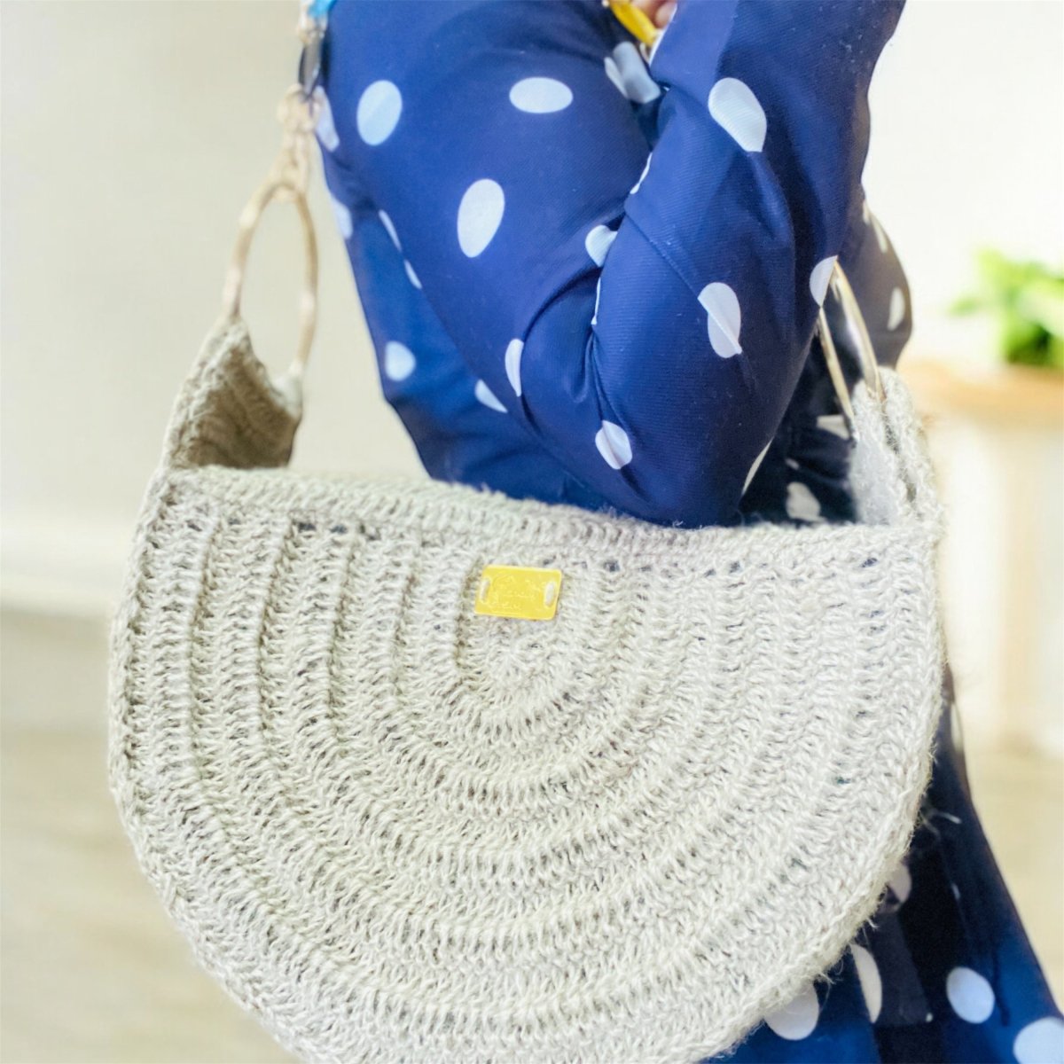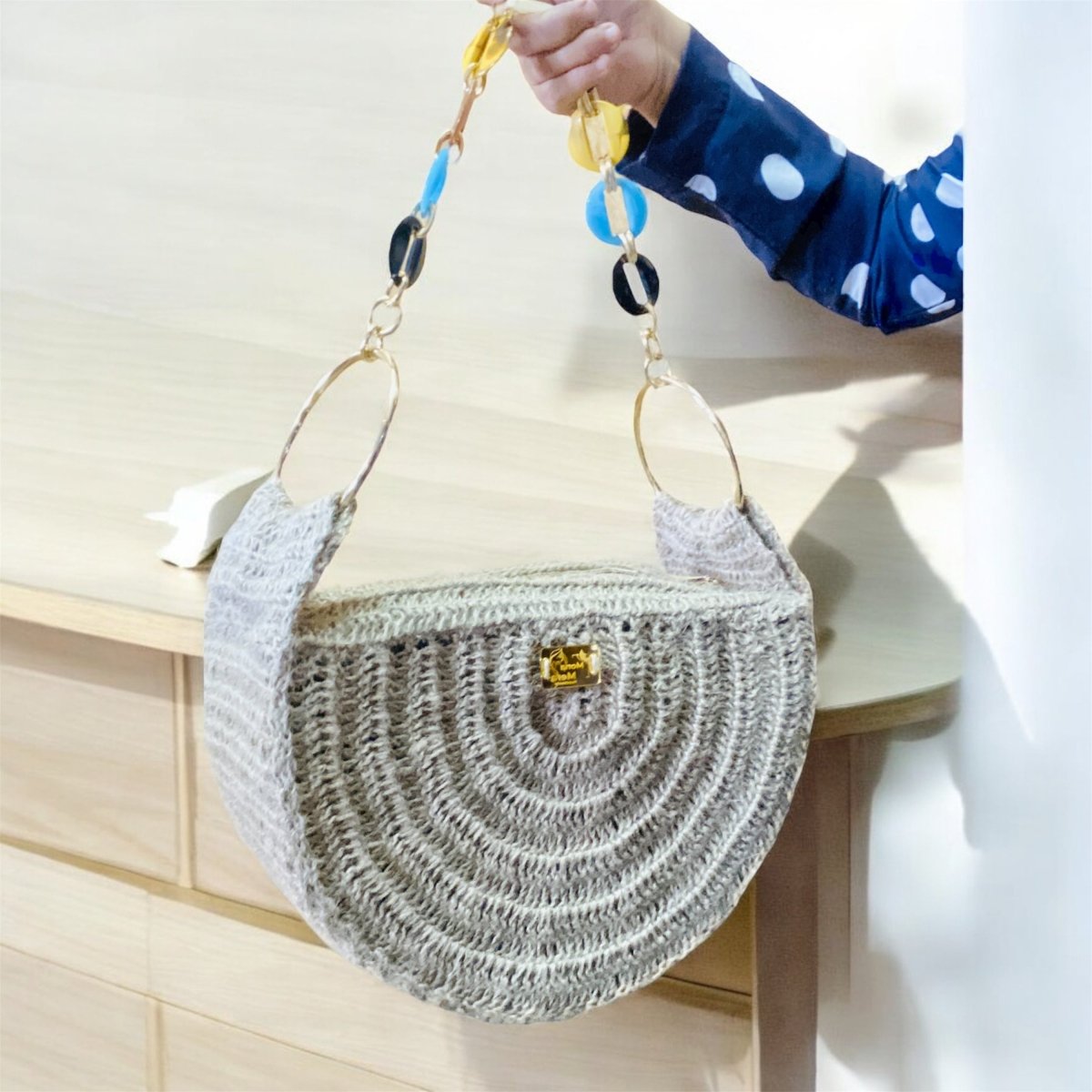شنطة هاندميد كروشيه جديدة نص دائرة من الخيش او الرافيا المستوردة
