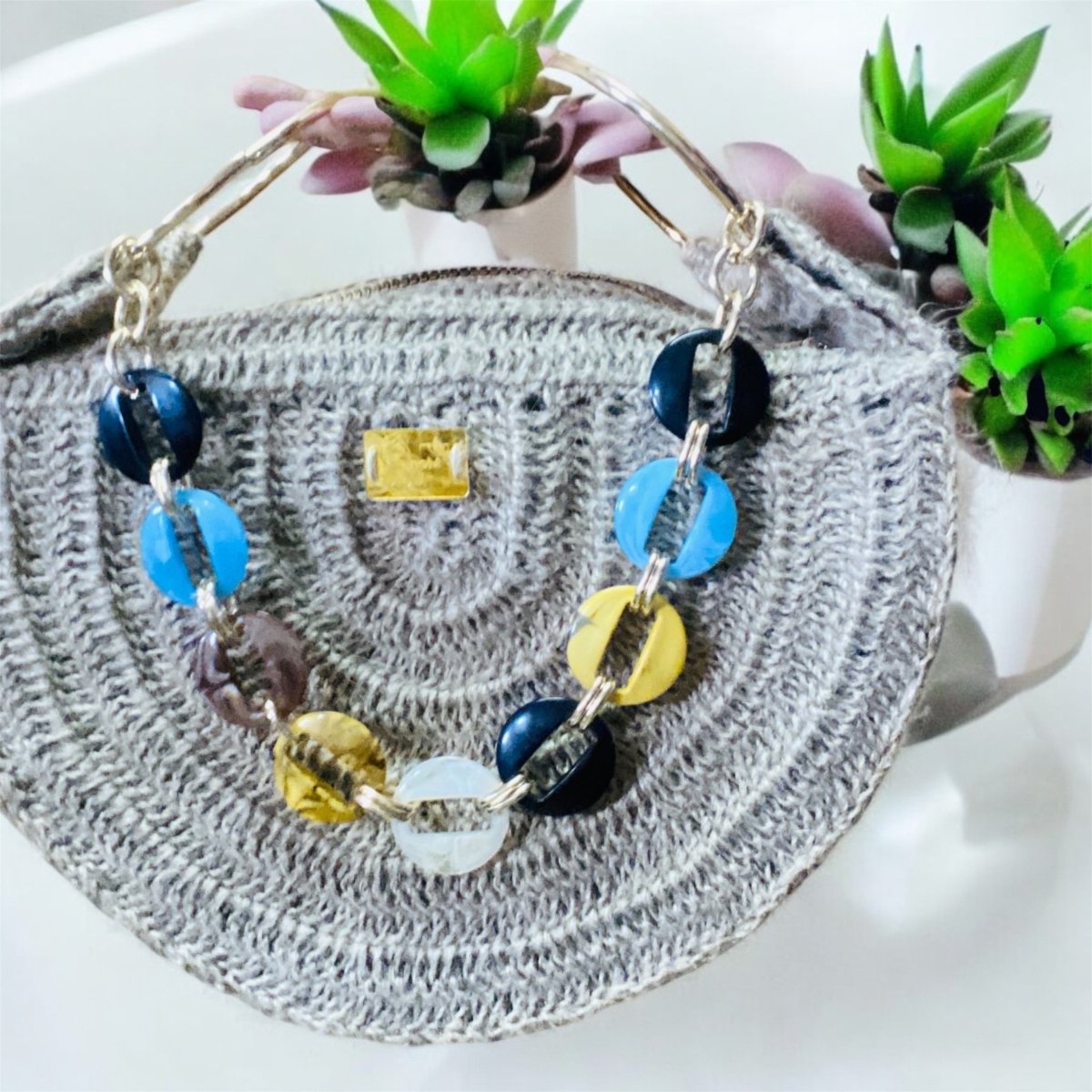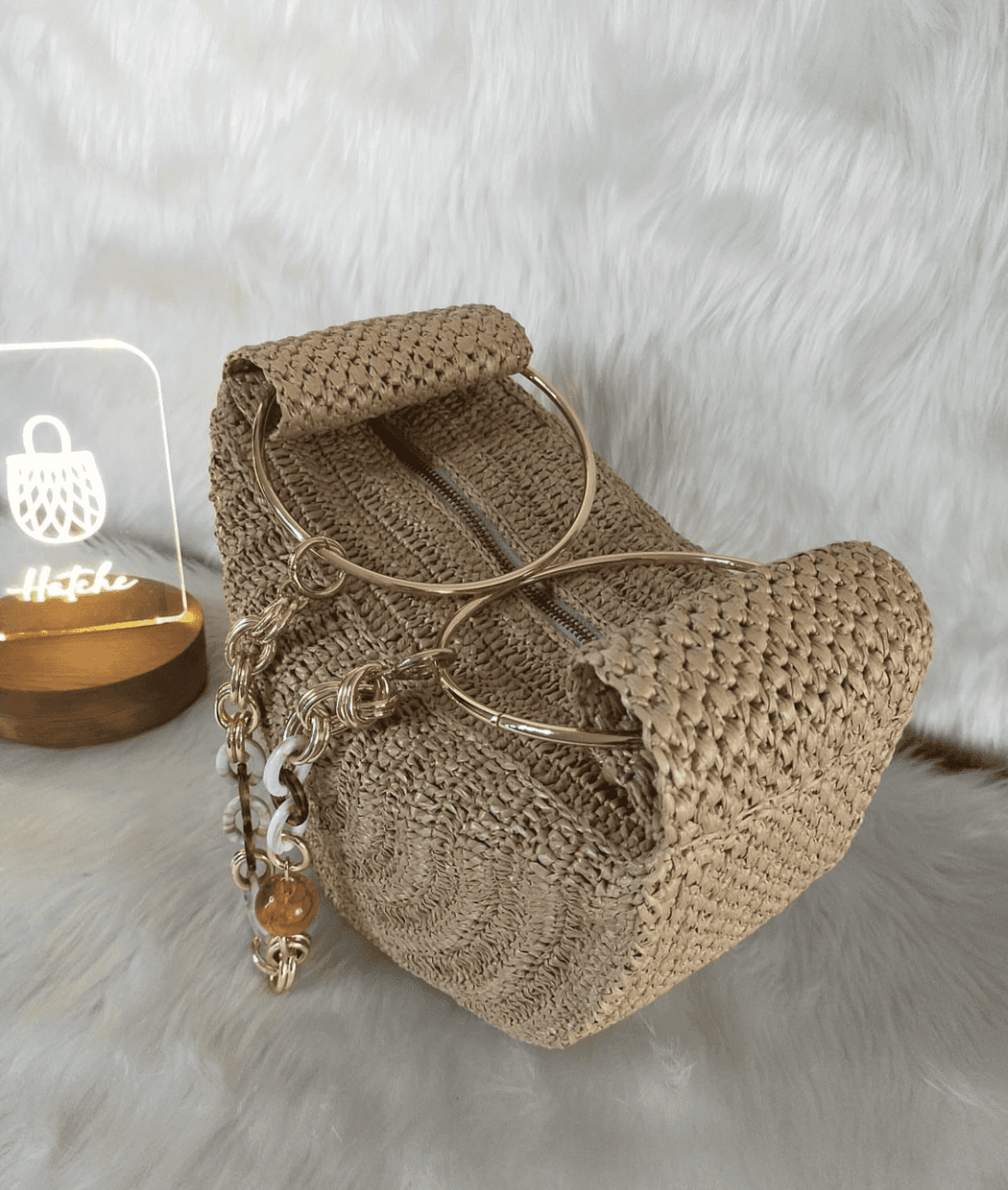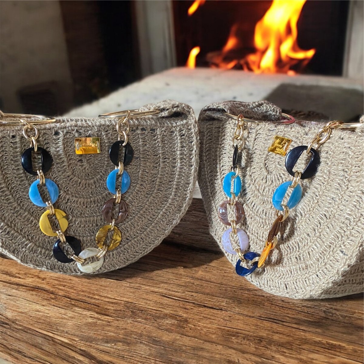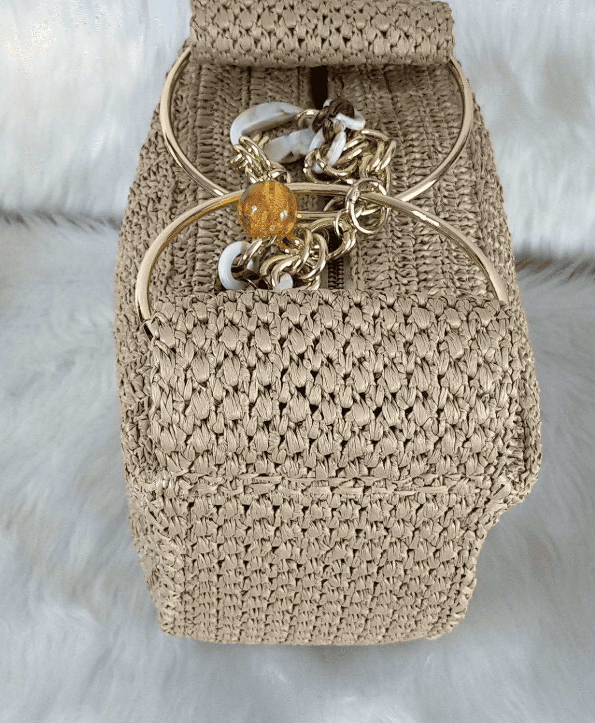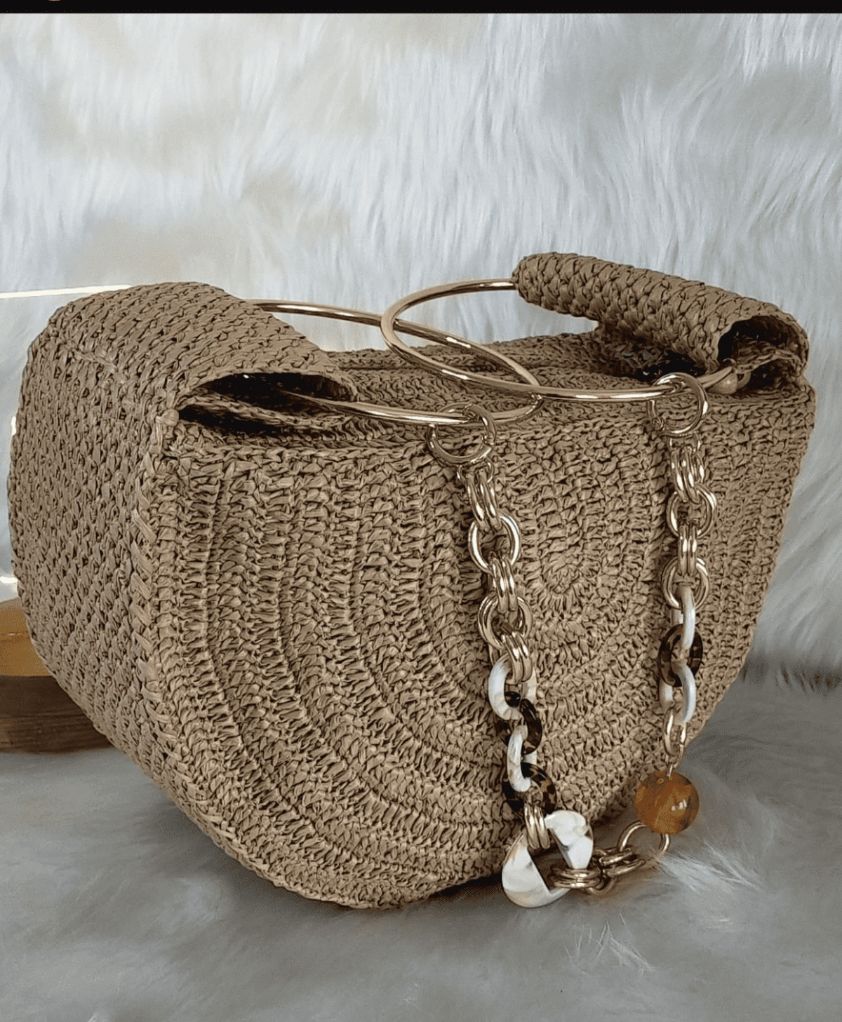شنطة هاندميد كروشيه جديدة نص دائرة من الخيش او الرافيا المستوردة