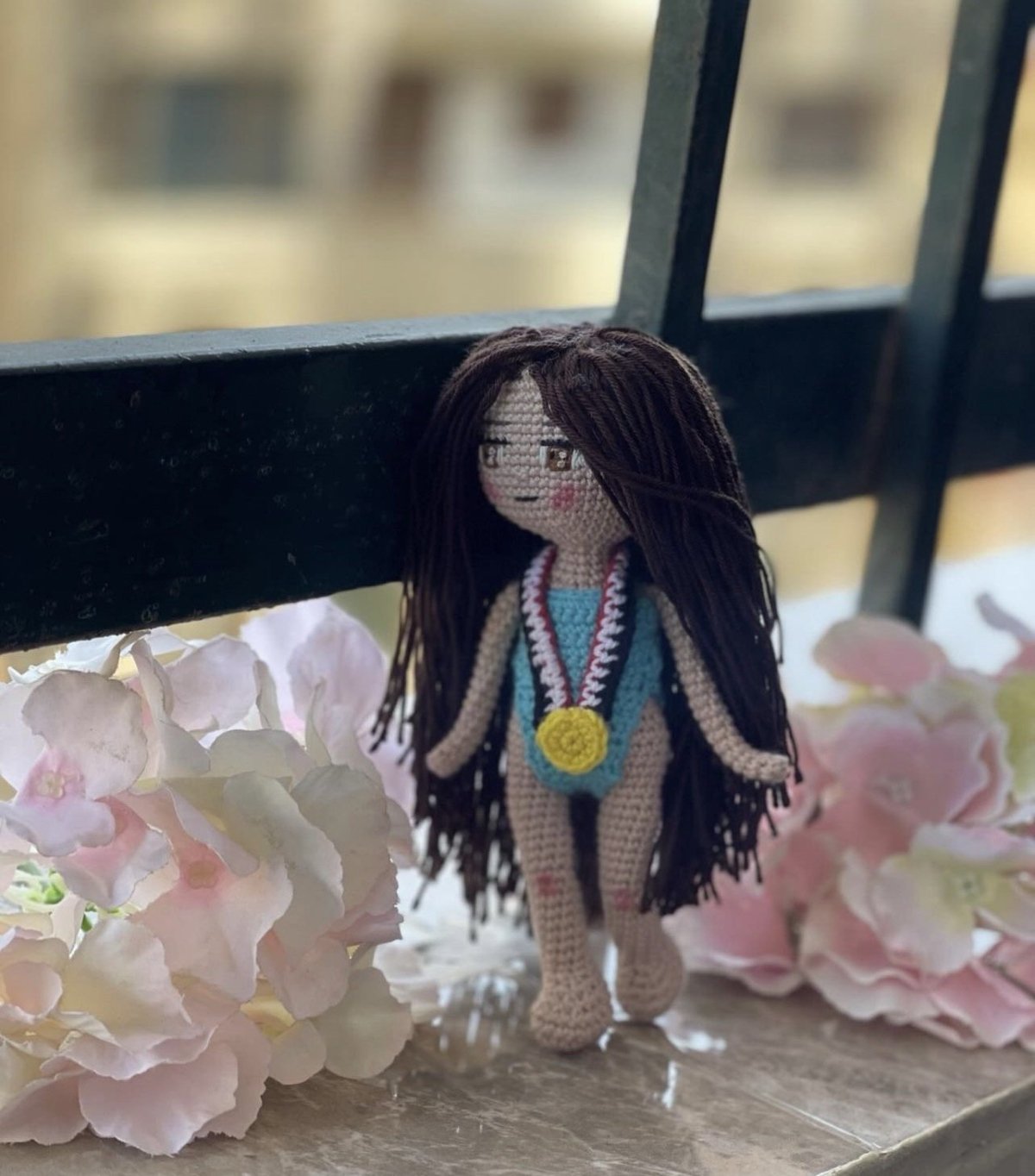 عروسة كروشيه خيط قطن حجم صغير معمولة بحب ❤️