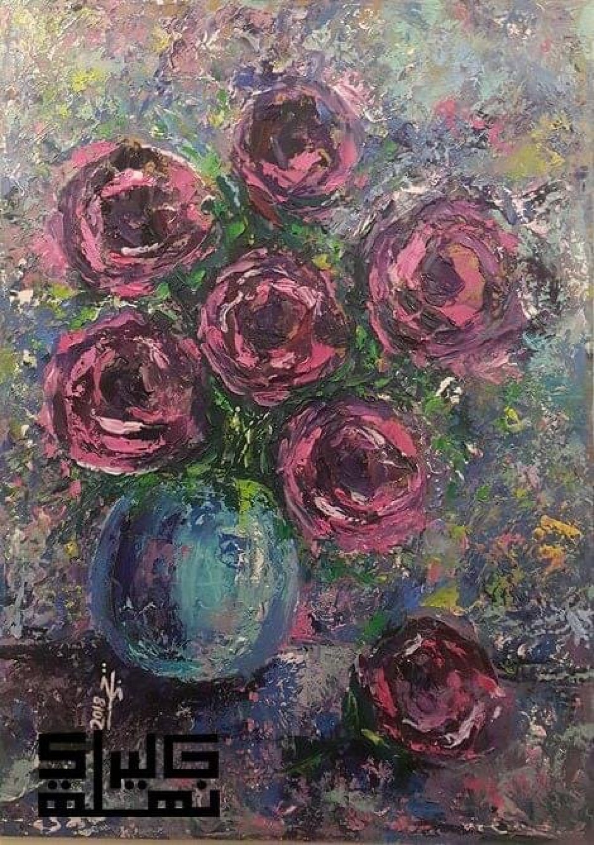 لوحة تجريدية بالوان الزيت على كانڤس مقاس ٥٠*٧٠ سم