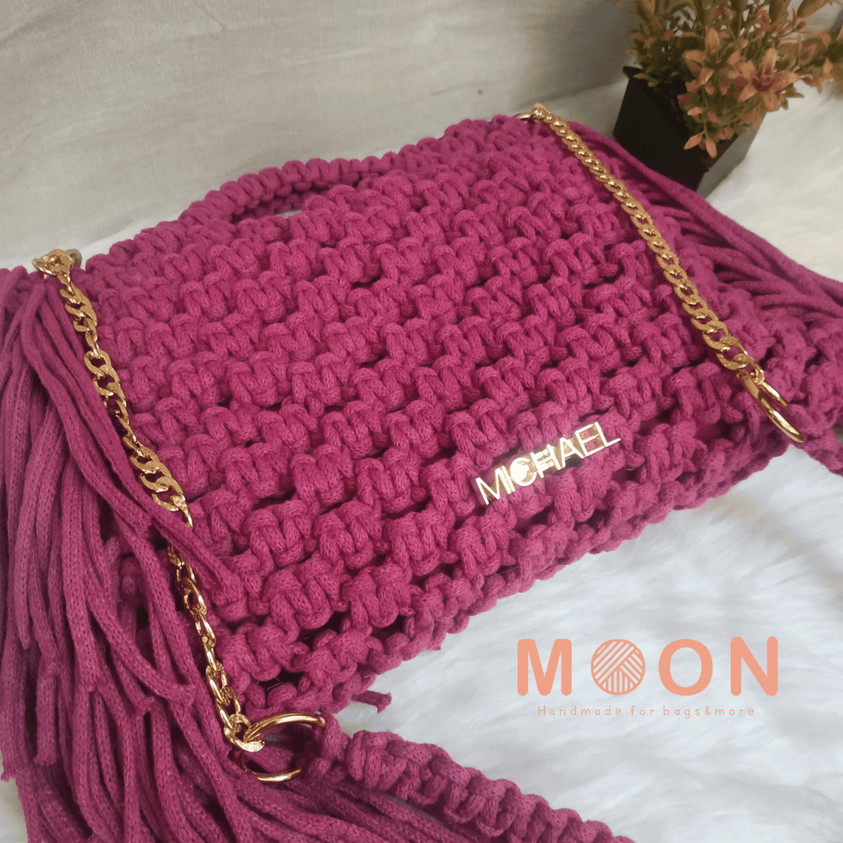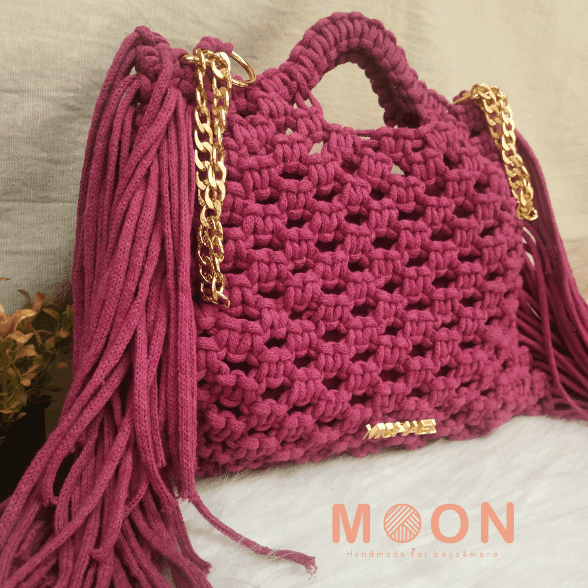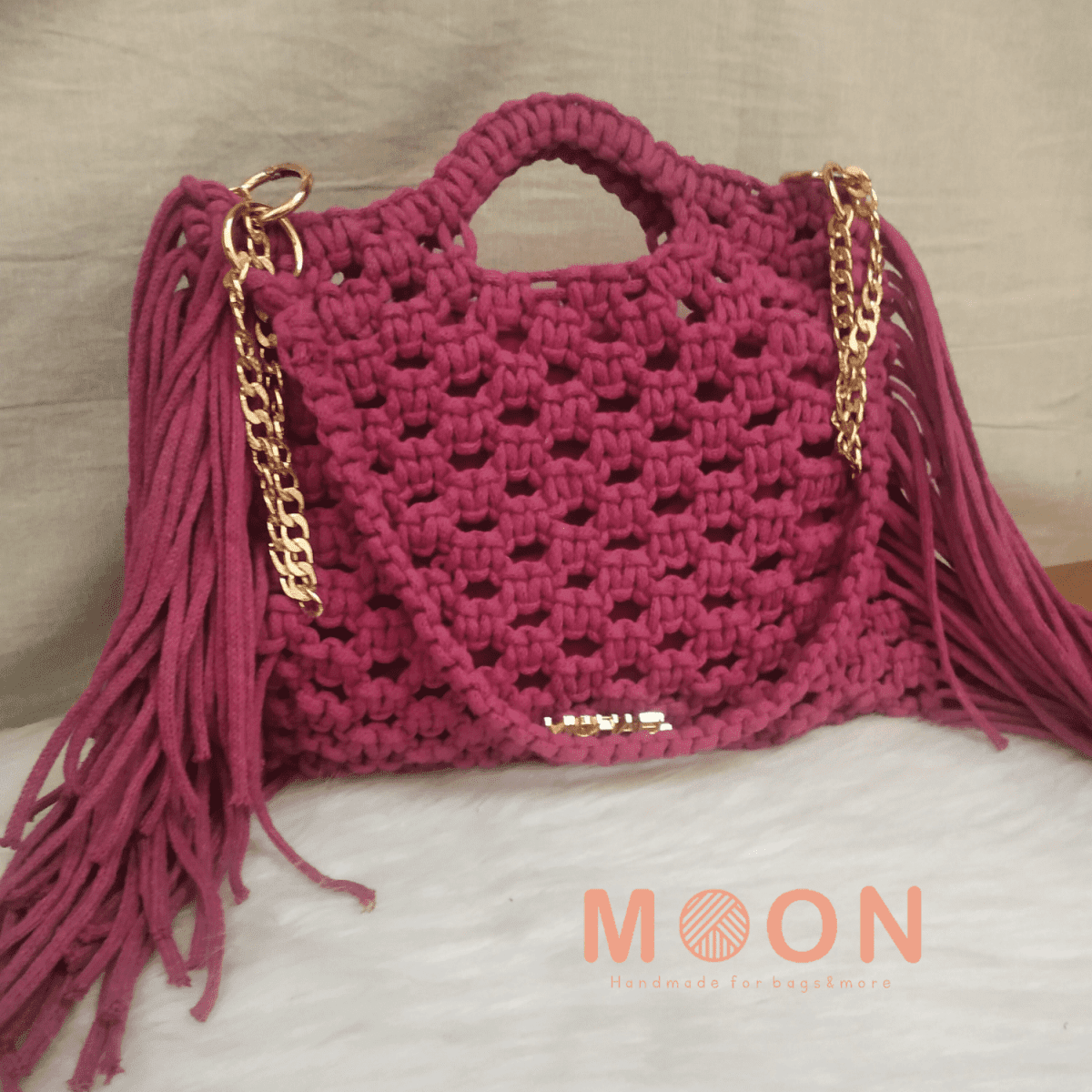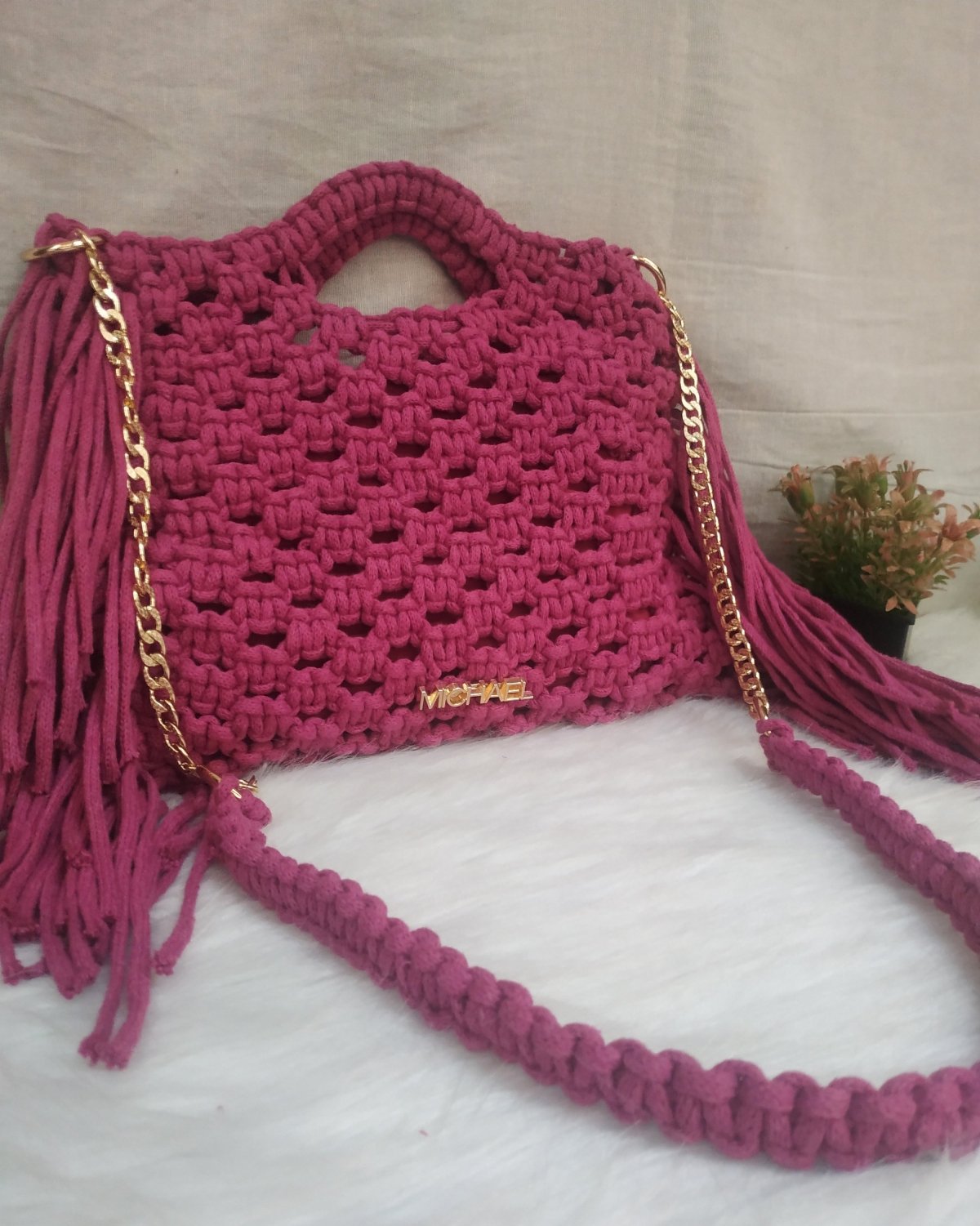 شنطه مكرميه أنيقه ترندي وشيك جدا مقاساتها طول ٢١ سم عرض ٢٦ سم مبطنه بالداخل مع اتنين كبسوله للقفل الحزام مستويين قصير كتف وطويل كروس صنعت بكل حب