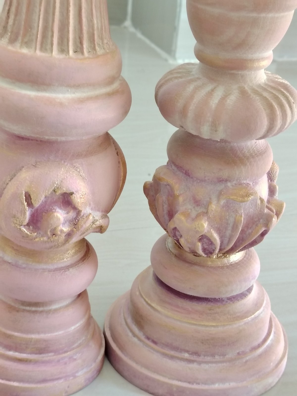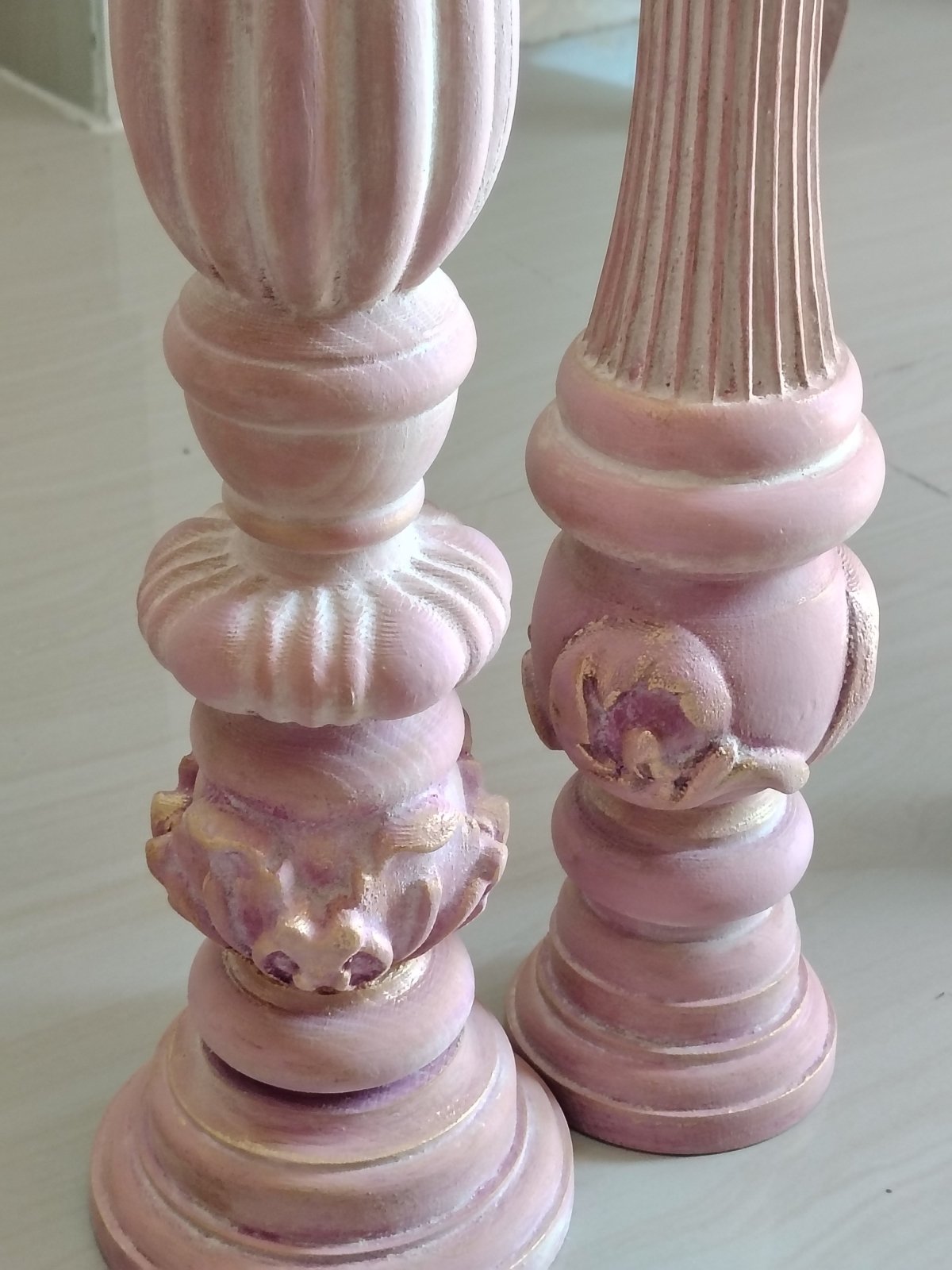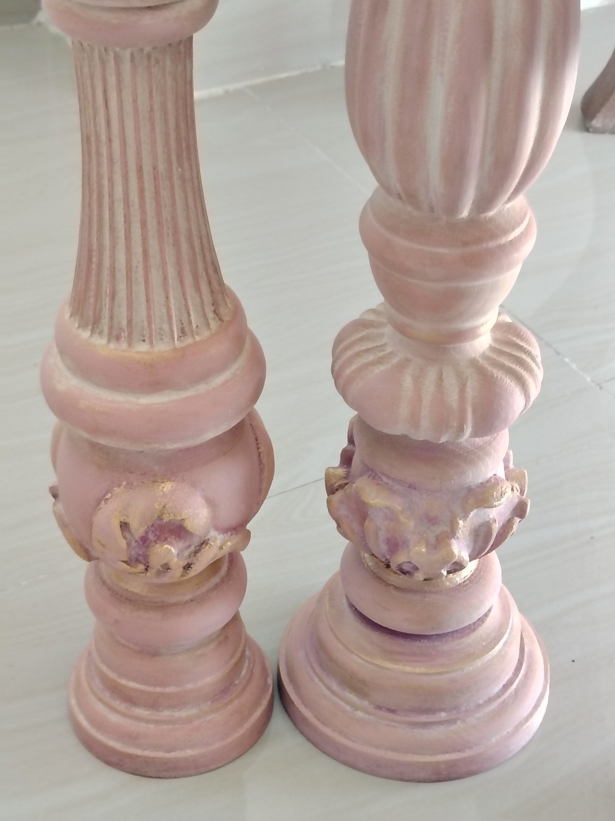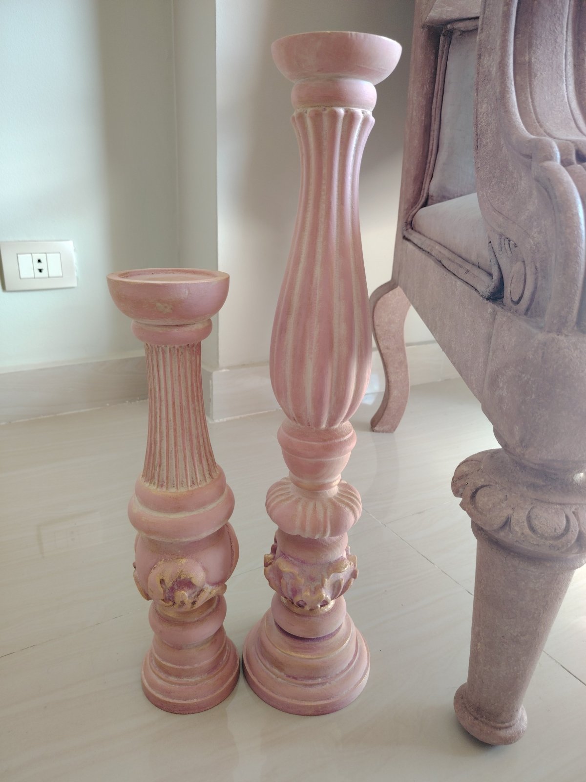 طقم مكون من 2شمعدان للارض خشب زان بالكامل دهان الميلك بينت والبيجمنت الطبيعي ارتفاع الكبير 55سم ارتفاع الصغير 40سم