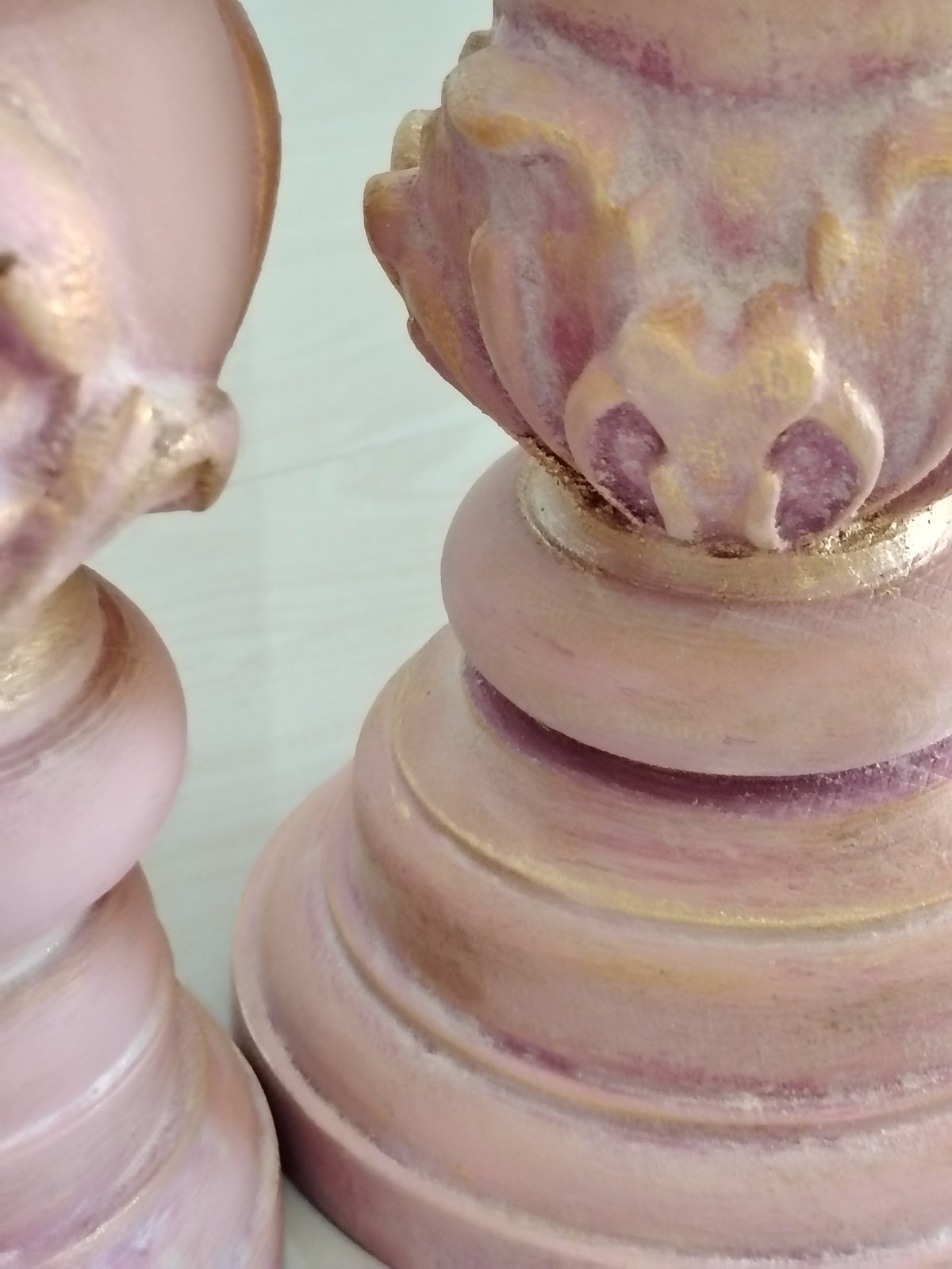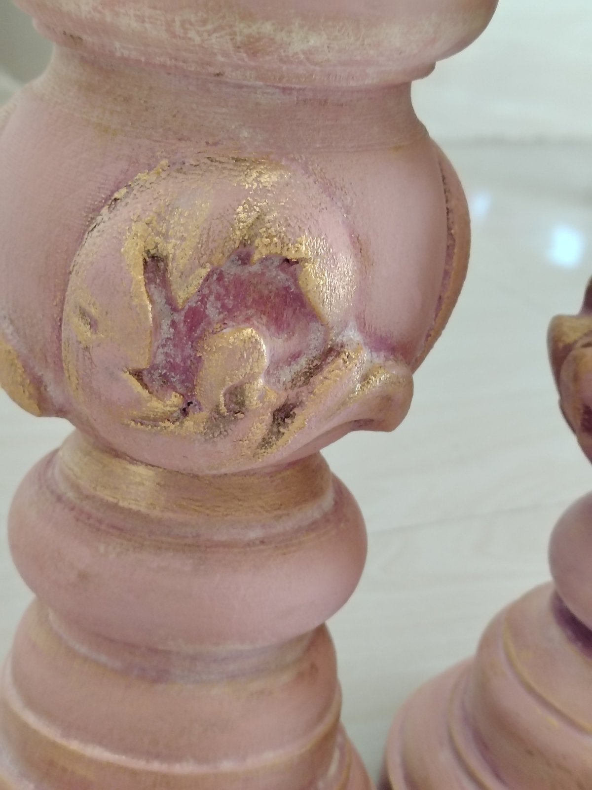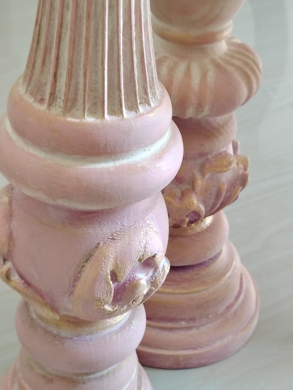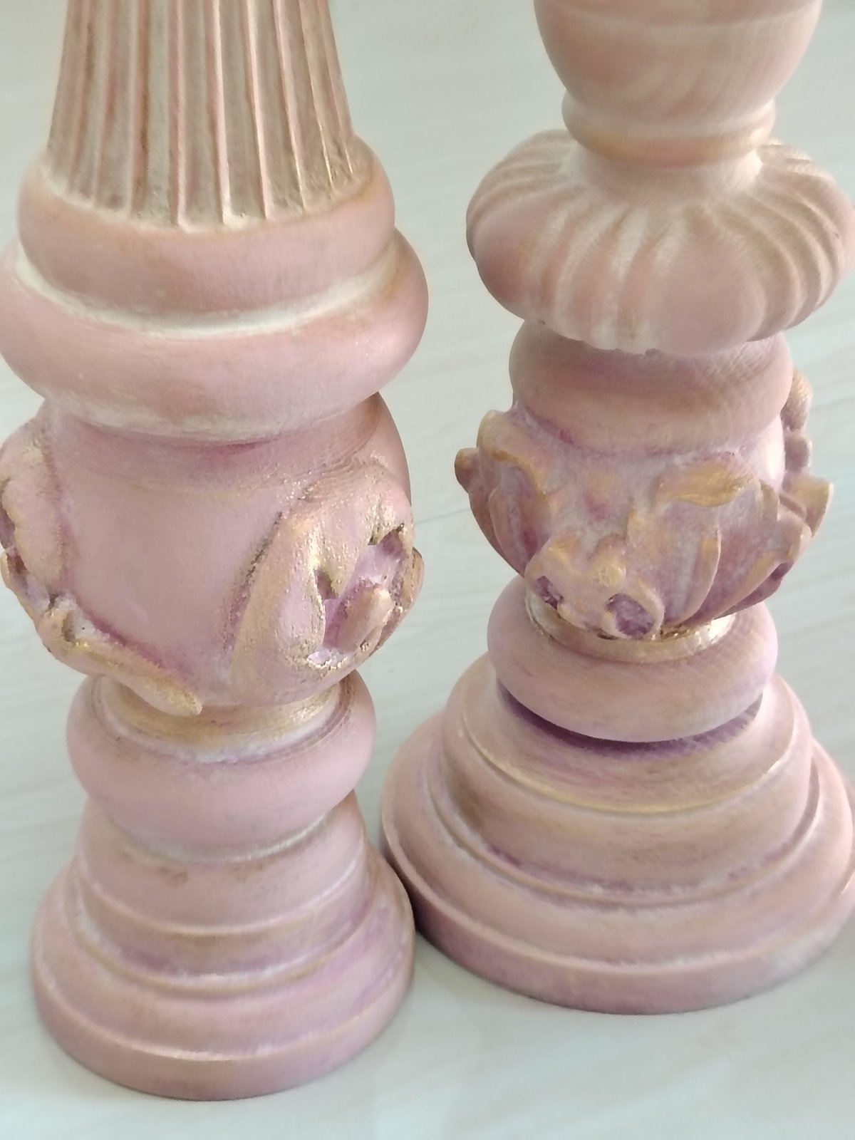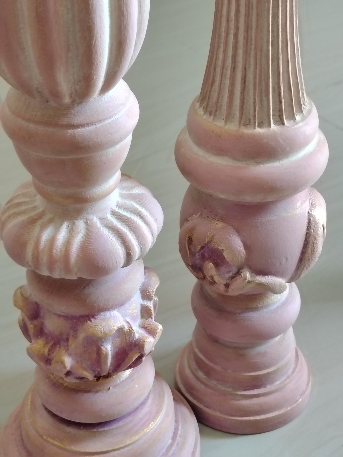 طقم مكون من 2شمعدان للارض خشب زان بالكامل دهان الميلك بينت والبيجمنت الطبيعي ارتفاع الكبير 55سم ارتفاع الصغير 40سم