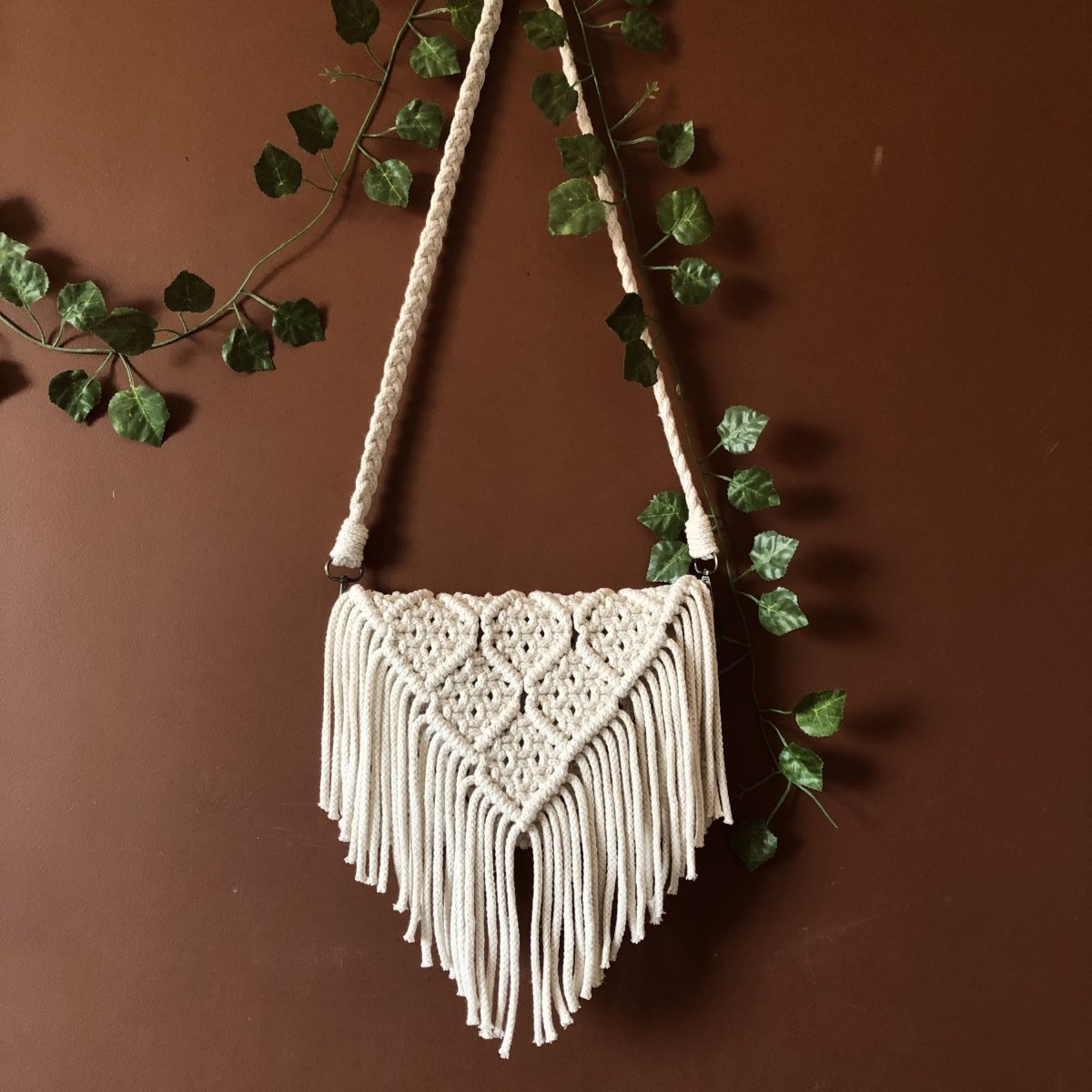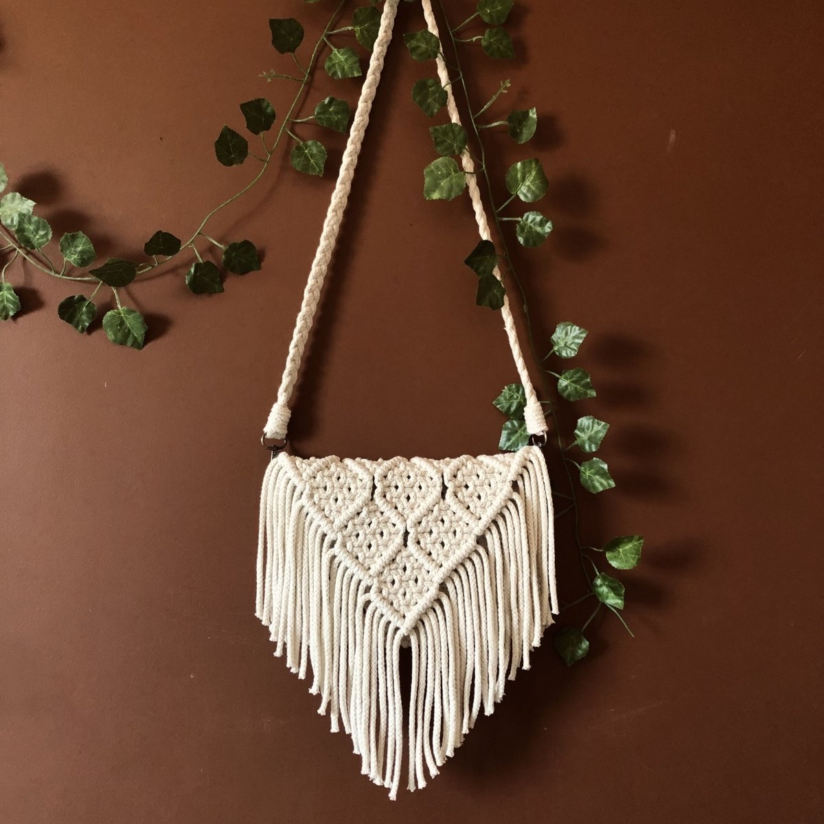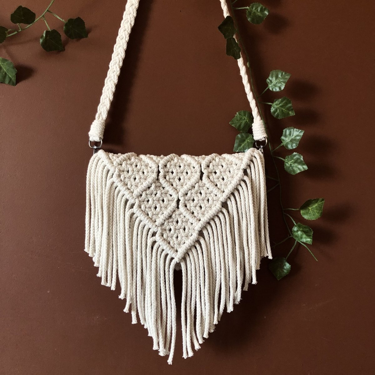شنطة مكرمية هاند ميد بخيوط قطنية 100% مع حزام طوله 100 سم
