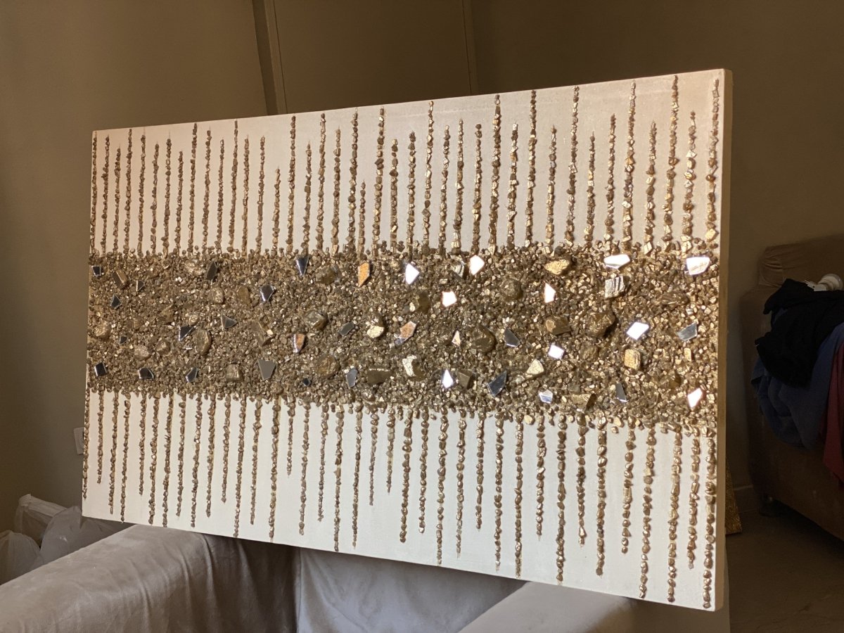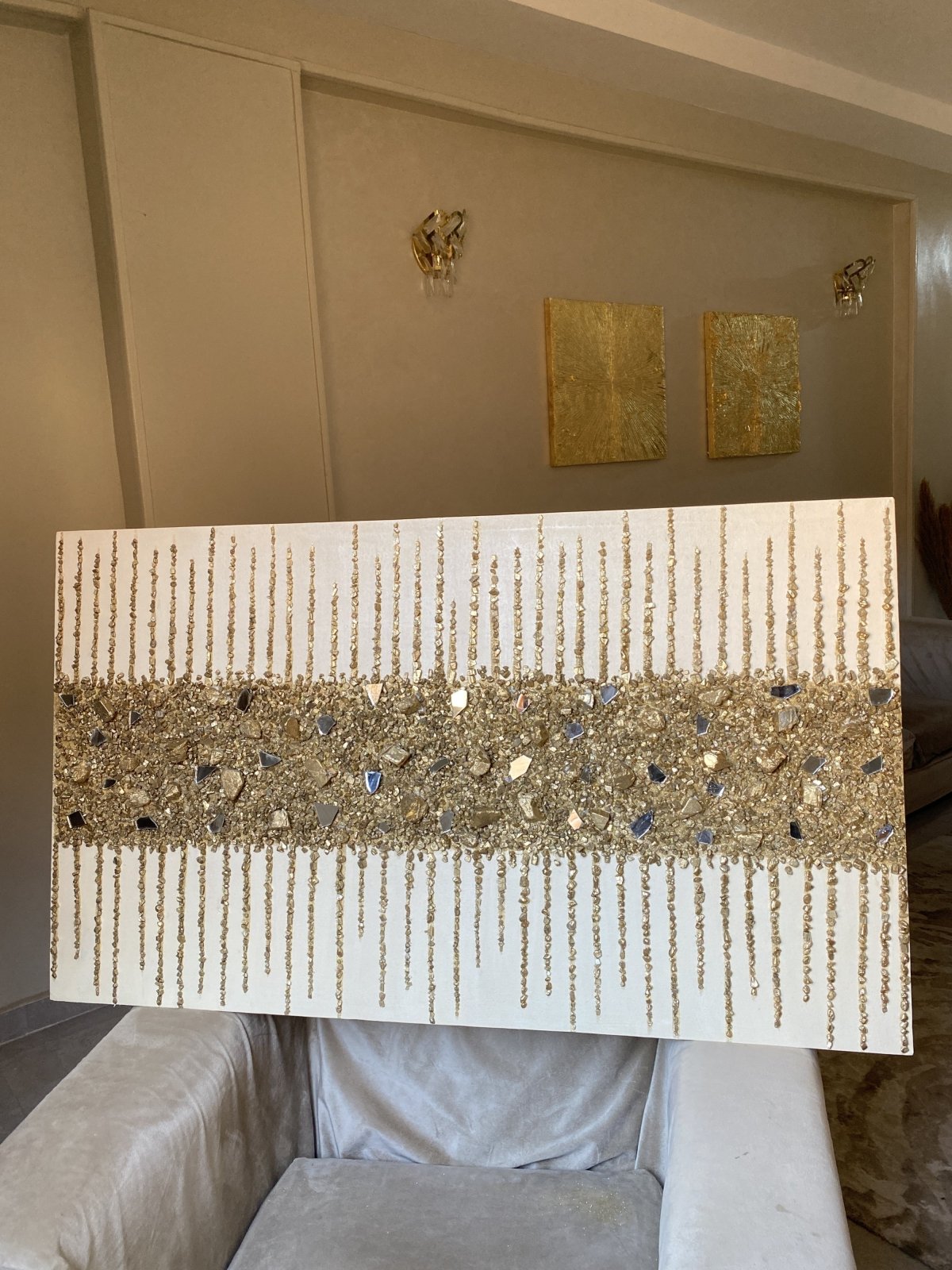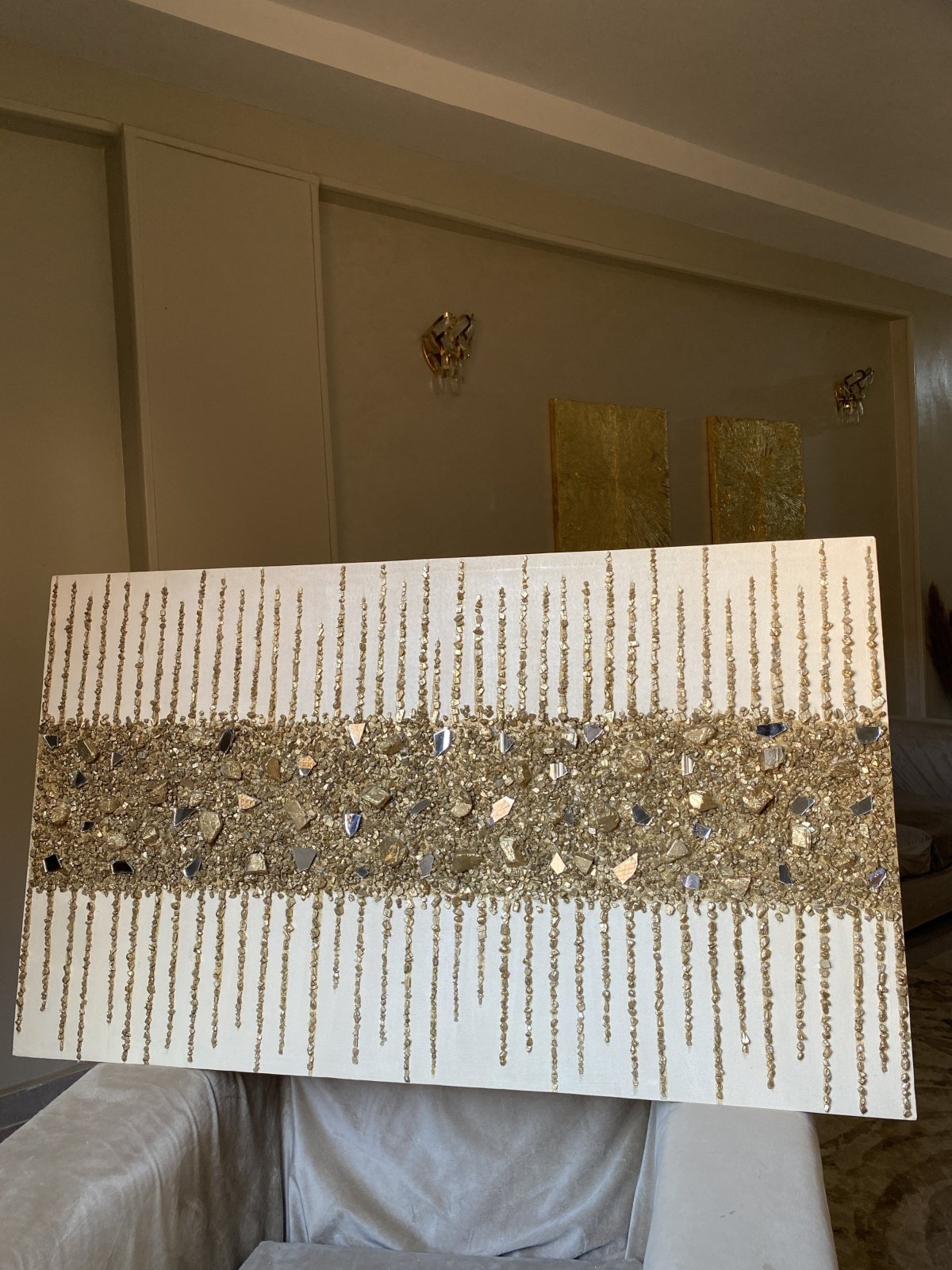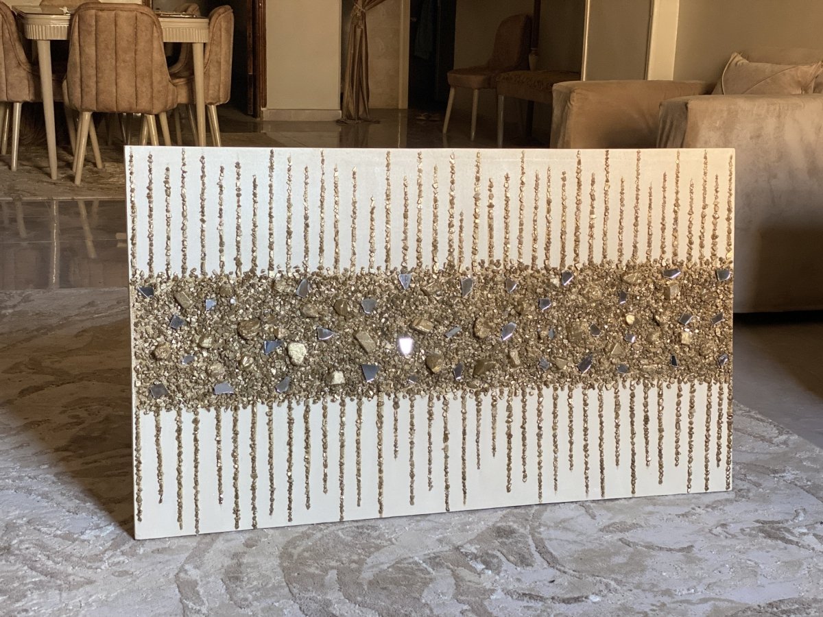 مقاس لوحه 120*70 سم مصنوعة من الحجارة وبعض المرايا، متوفرة بأي مقاس.