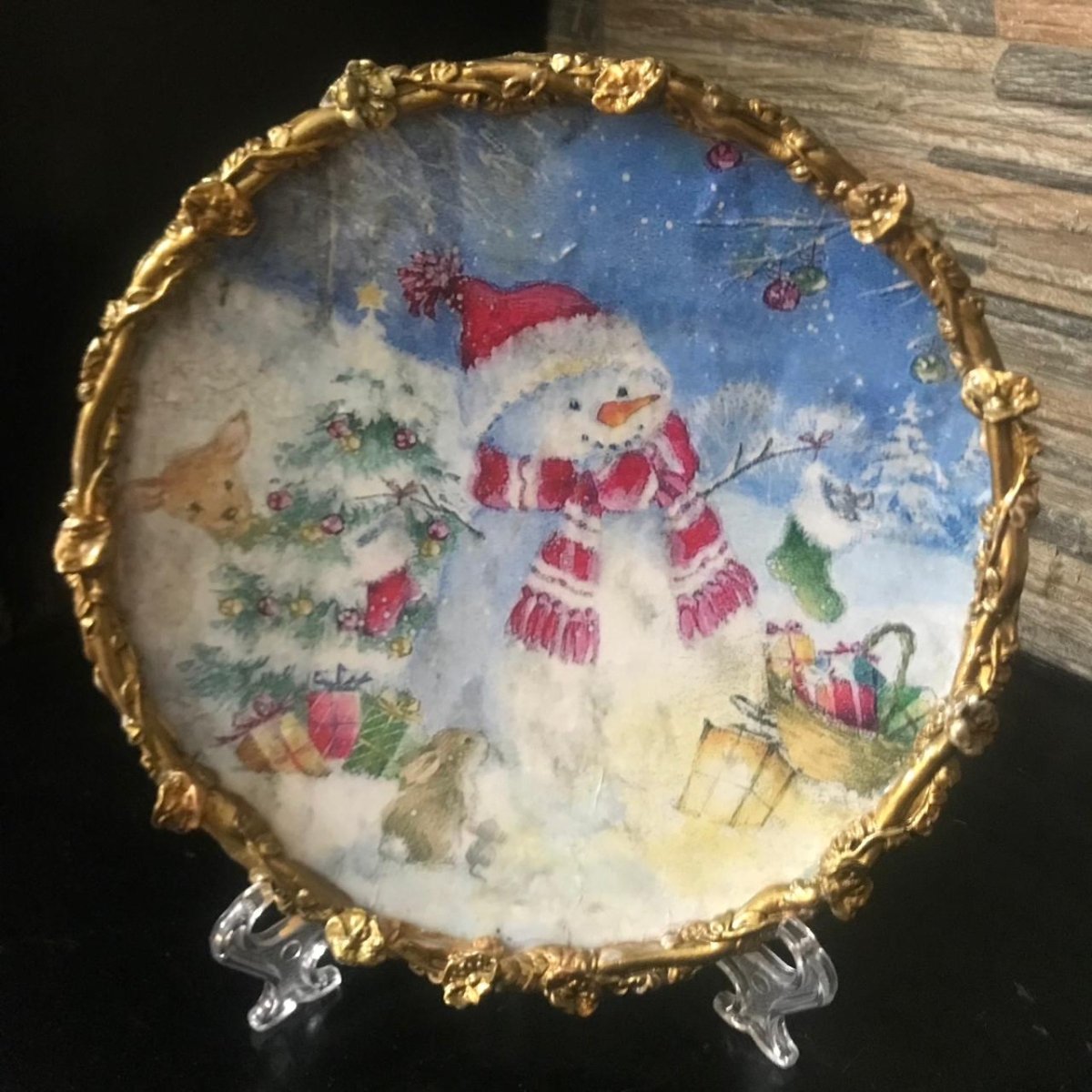 "طبق بورسلين مصنوع يدويًا 100% لعيد الميلاد، مقاس قطر 27. قابل للتخصيص لمقاس قطر 21 أيضًا."