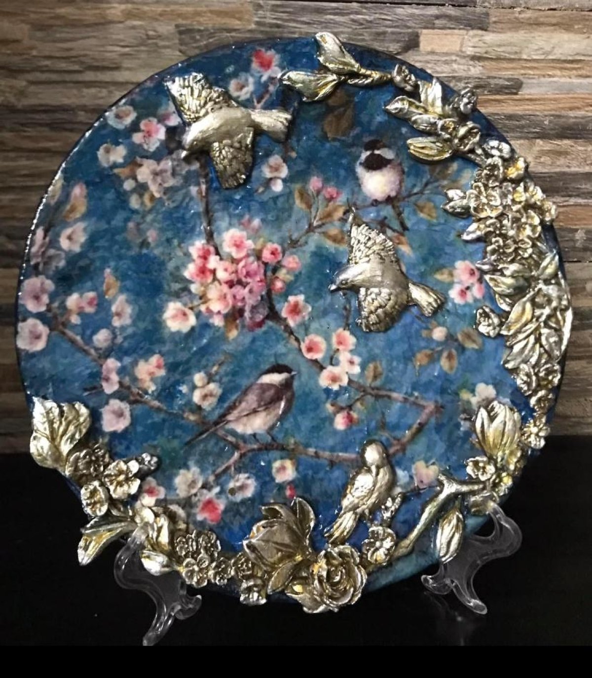 صناعة يدوية 100% طبق ديكوباج من البورسلين صورة طائر قطر 27