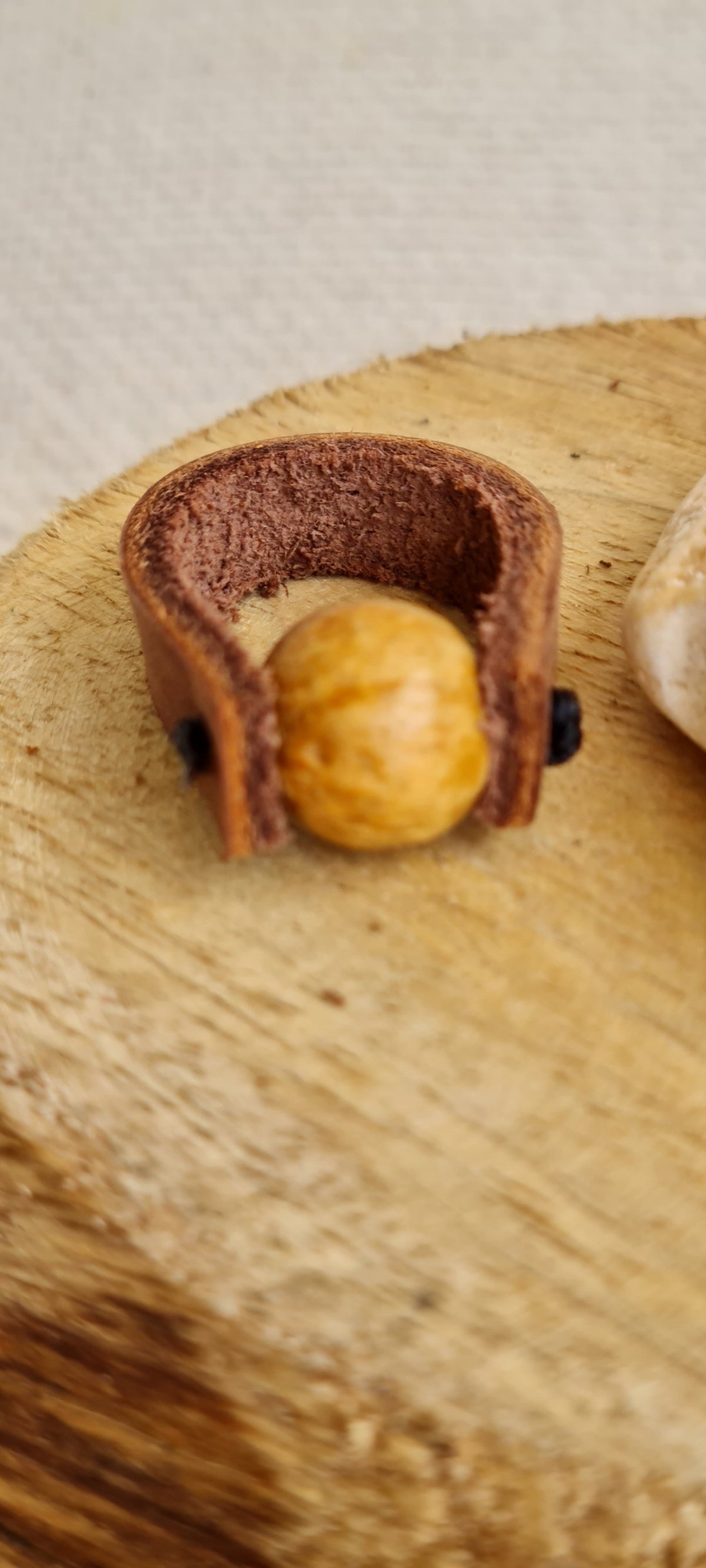 خاتم من الجلد الطبيعي فكره جدبده ومربحه مع احجار خشبيه