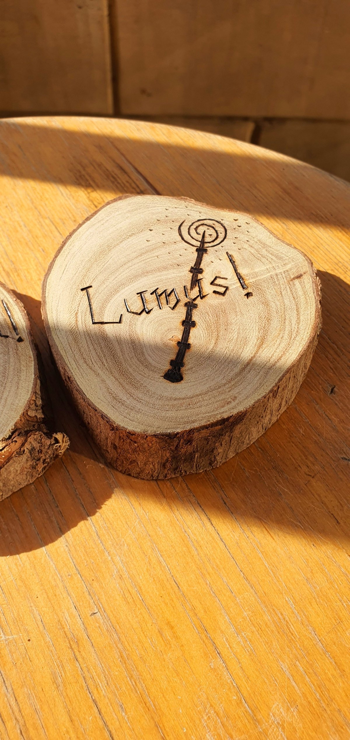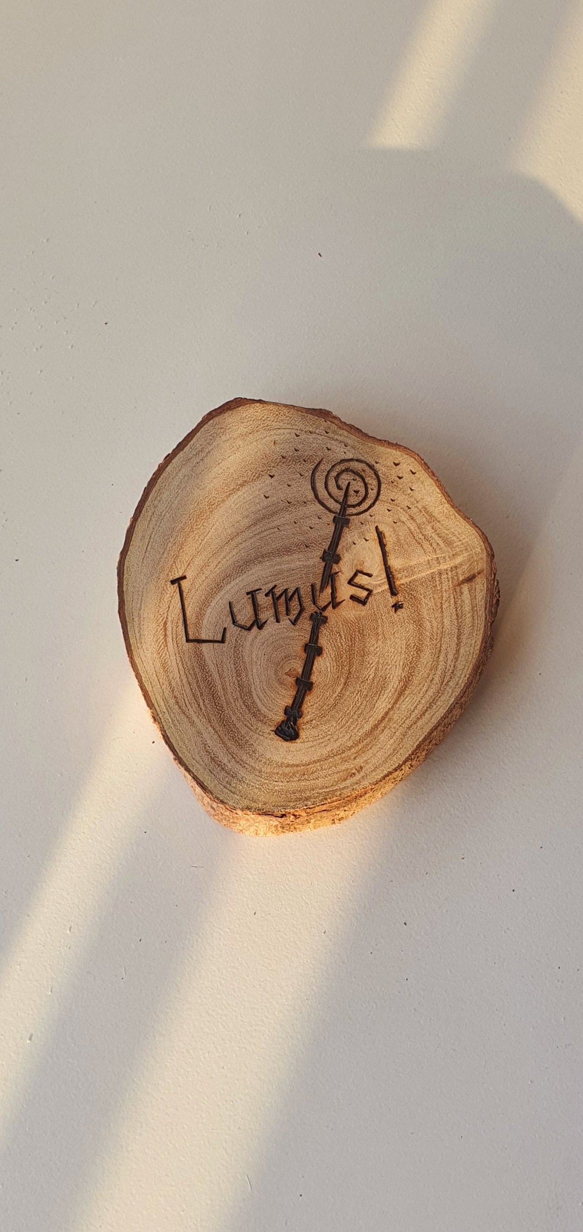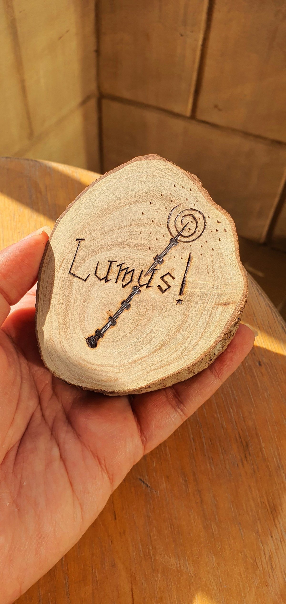 كولكشن هاري بوتر قطعة خشب من جذع شجر، بتصميم فريد نفَّذناه بفن الحرق اليدوي على الخشب، يمكن وضعها على طاولة أو مكتب لإضافة لمسة فنية دافئة إلى غرفتك أو مكتبك. Lumos! الأبعاد: 9 × 8 سم، السمك: 1.5 سم