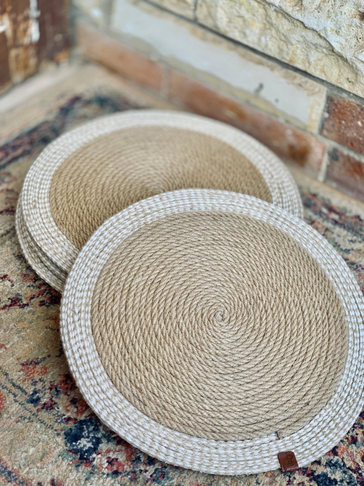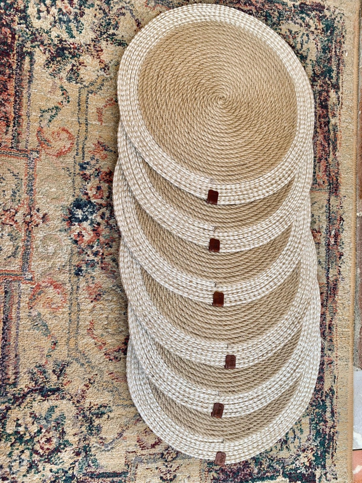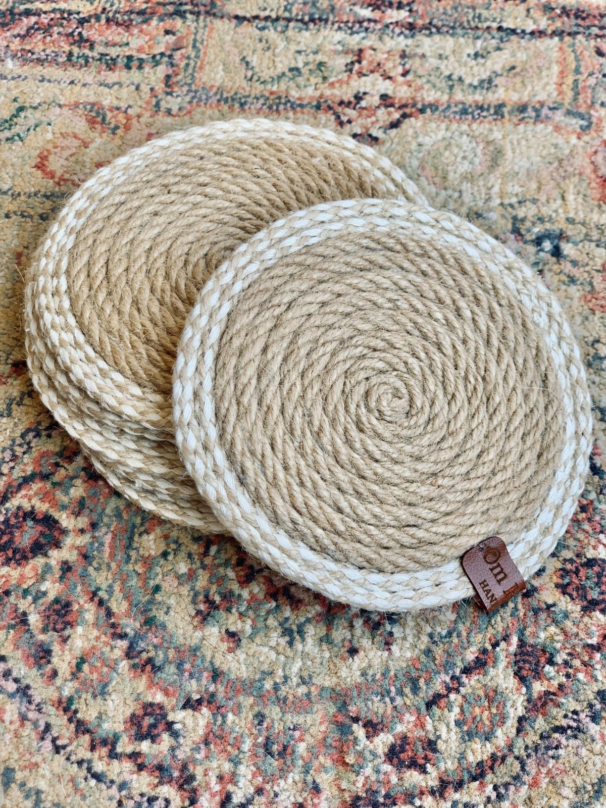 طقم كوستر للسفره الطقم مكون من : 6 كوستر كبير للاطباق قطر الكوستر 30 سم 6 كوستر صغير للمجات قطر الكوستر 10 سم منظم للملاعق والشوك والسكاكين 24 سم ×14 سم ×ارتفاع 6 سم طقم شيك جداً هيضيف لسفرتك شكل راقي وجميل.. متاح تنفيذ أشكال تانيه كتير مختلفه.. مصنوع من أجود خيوط الخيش.. ومتاح تنفيذه بخيوط مكرميه حسب الرغبة