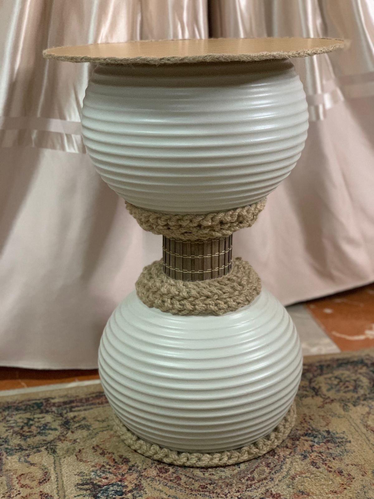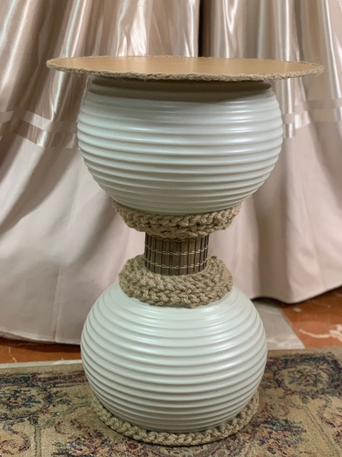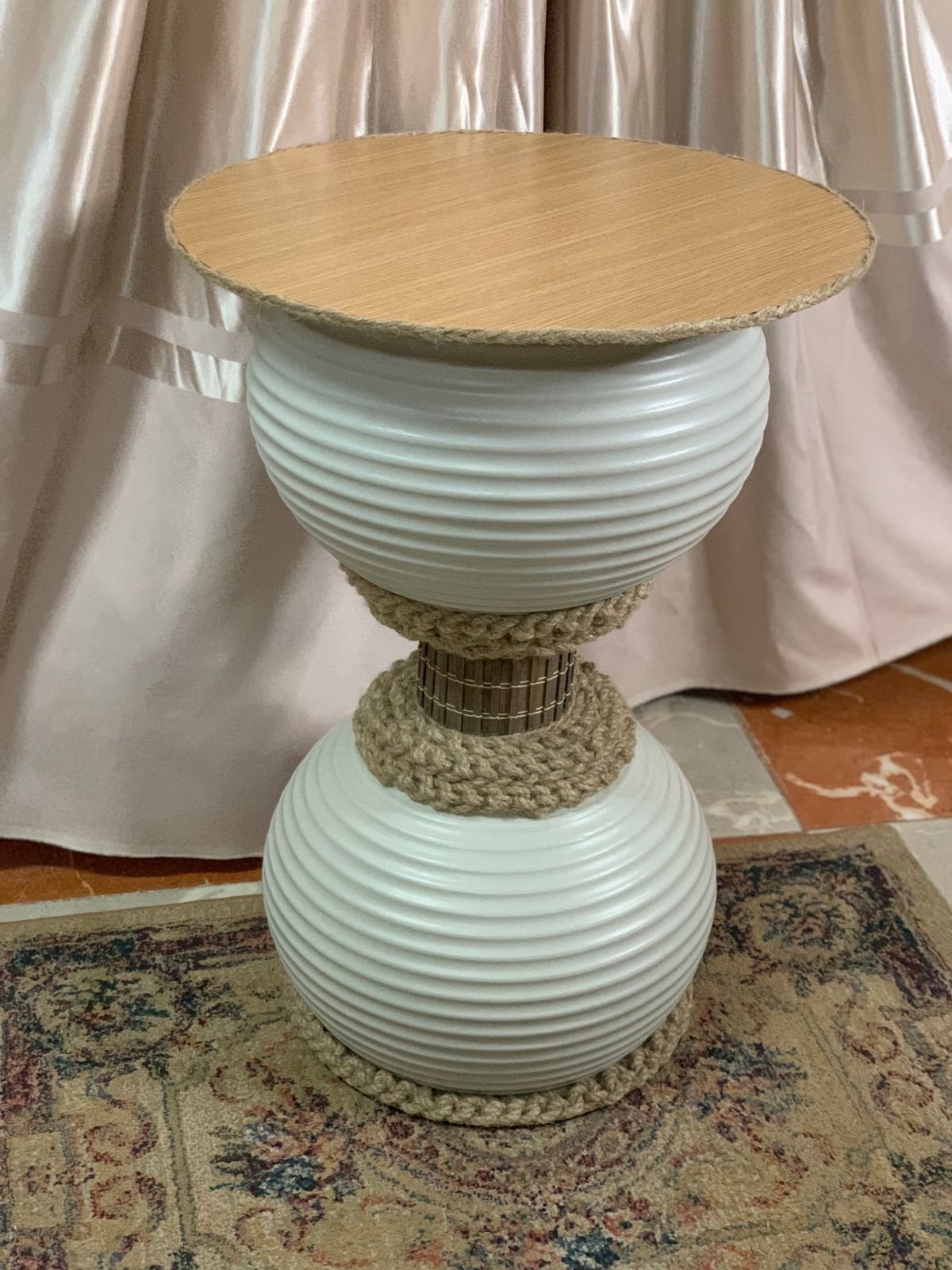 ترابيزه ديكوريه قطر الطاره الخشبيه العلوي 45 سم ارتفاع الترابيزه الكلي 70 سم مصنوعه من البلاستيك وطاره خشبيه... إستايل جديد للترابيزات.. الترابيزة هي نفسها ديكور.. شكلها جديد.. شغل بنتريست اللي كتير من الناس تحب أن تقتنيه في منزلها متاح تنفيذه