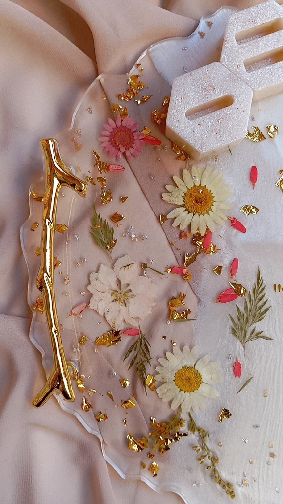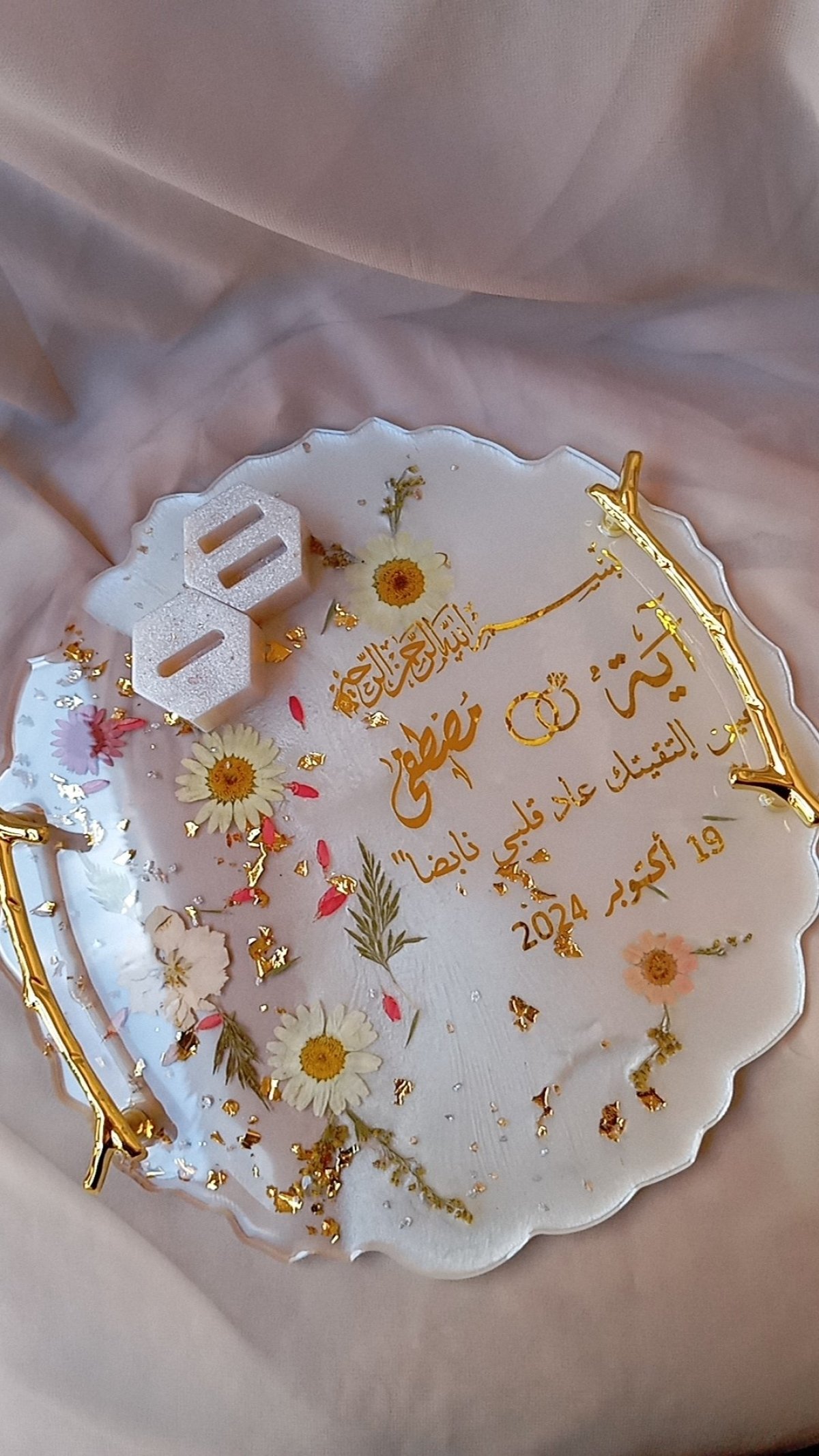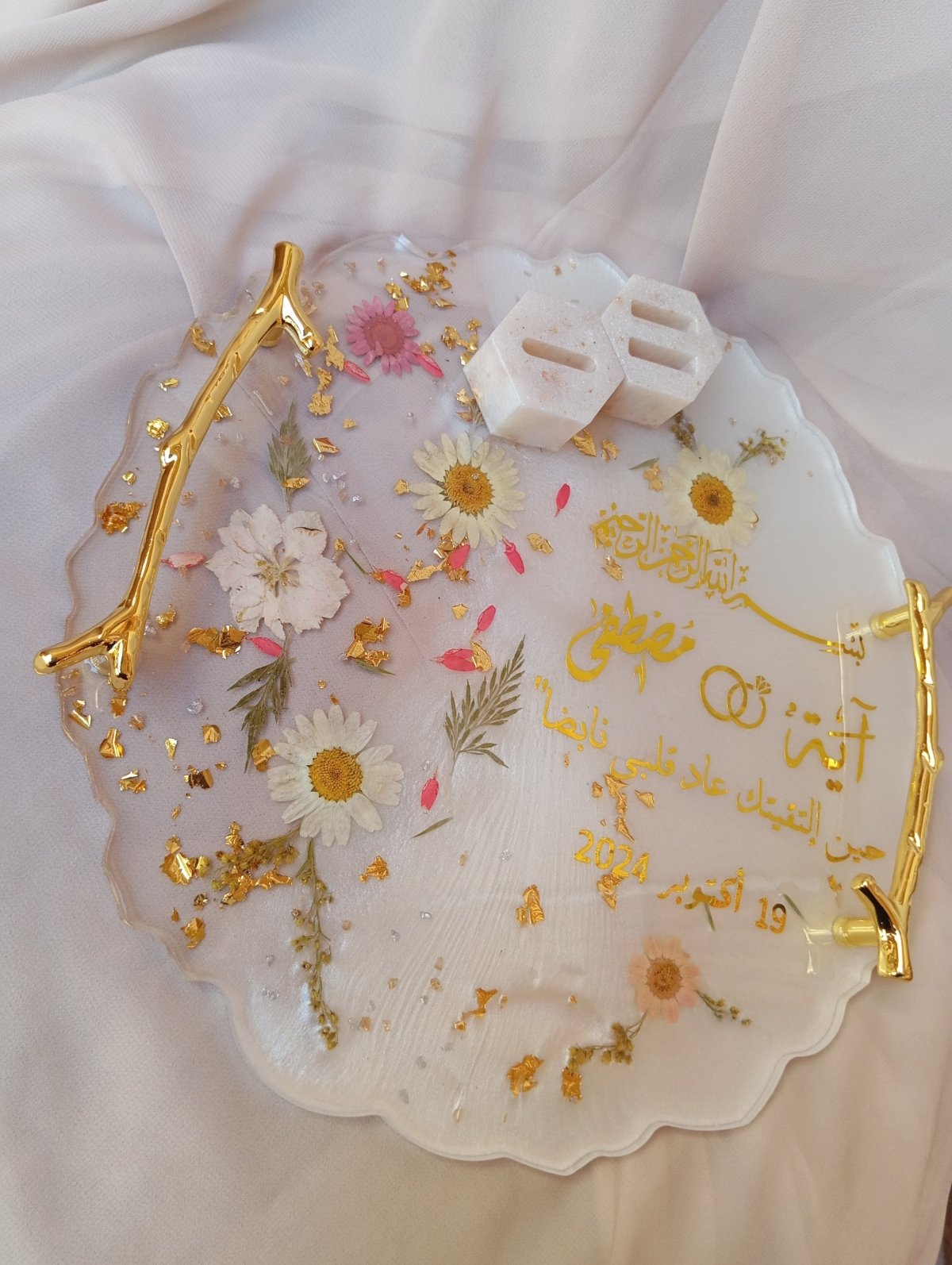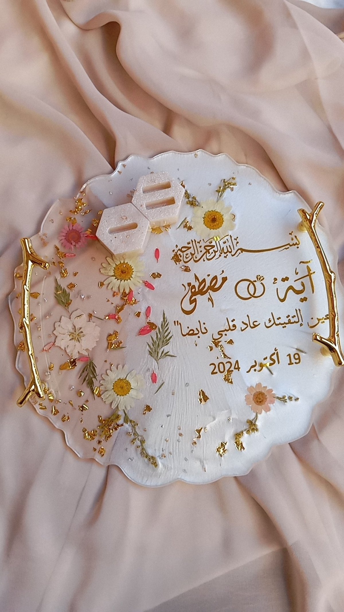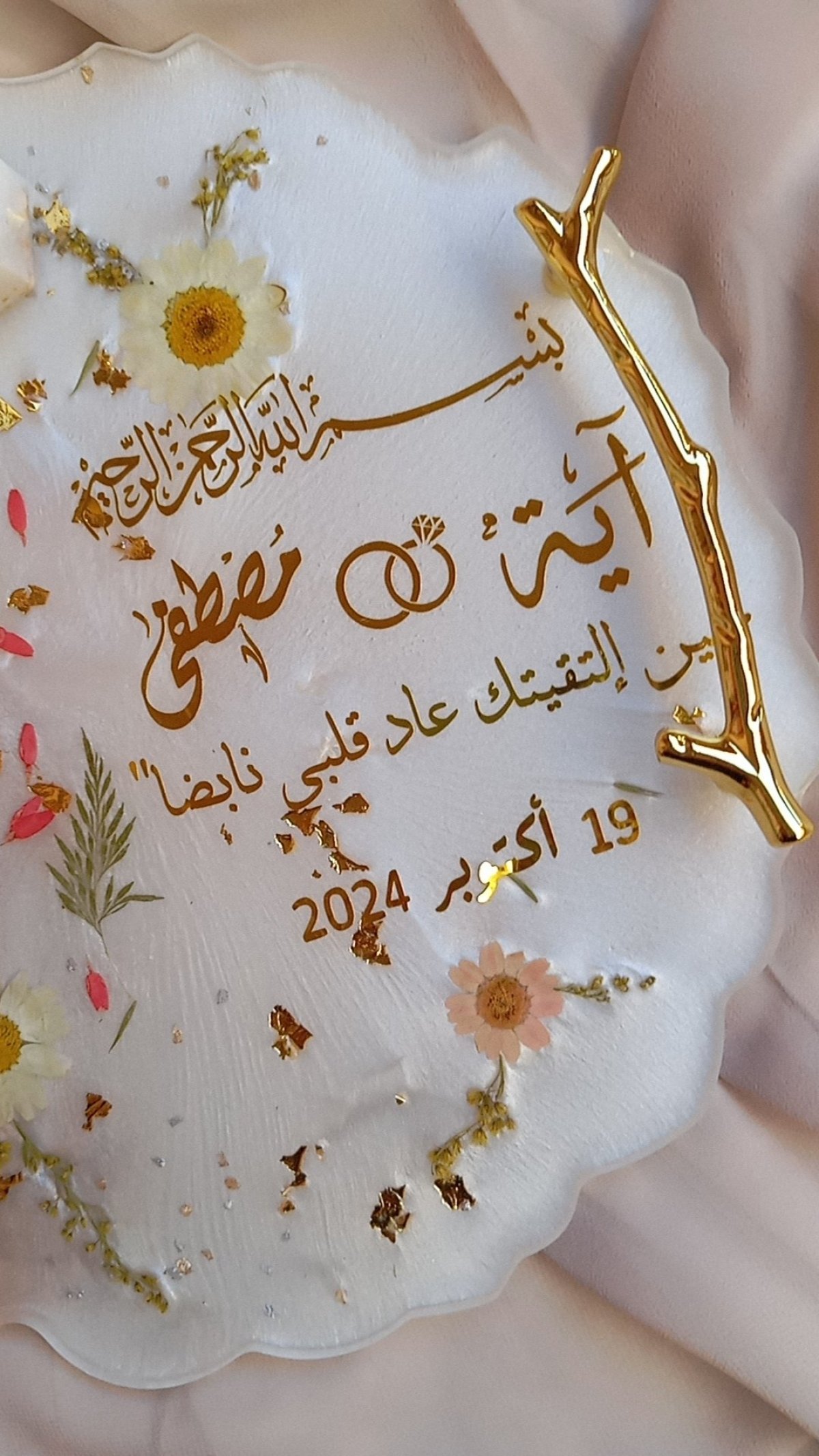 صنية خطوبه من الريزن مع الورد المجفف بوكسين للدبل مقبض فرع الشجره مقاس 25 متاح تغير الديزاين متاح تغيير الالوان متاح تغيير الاسامى