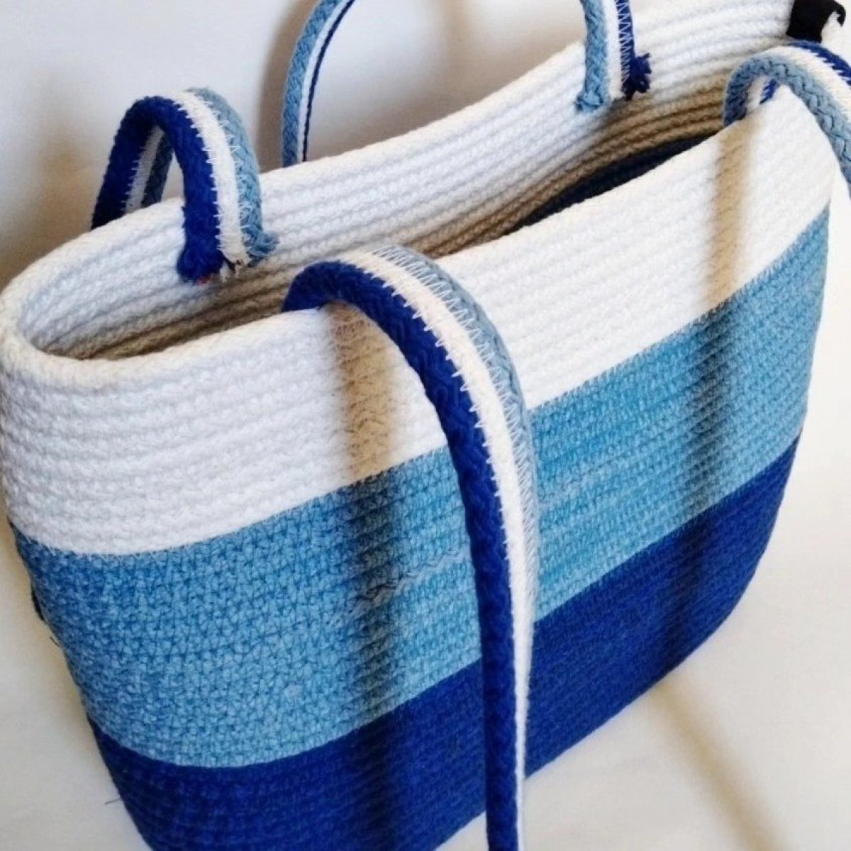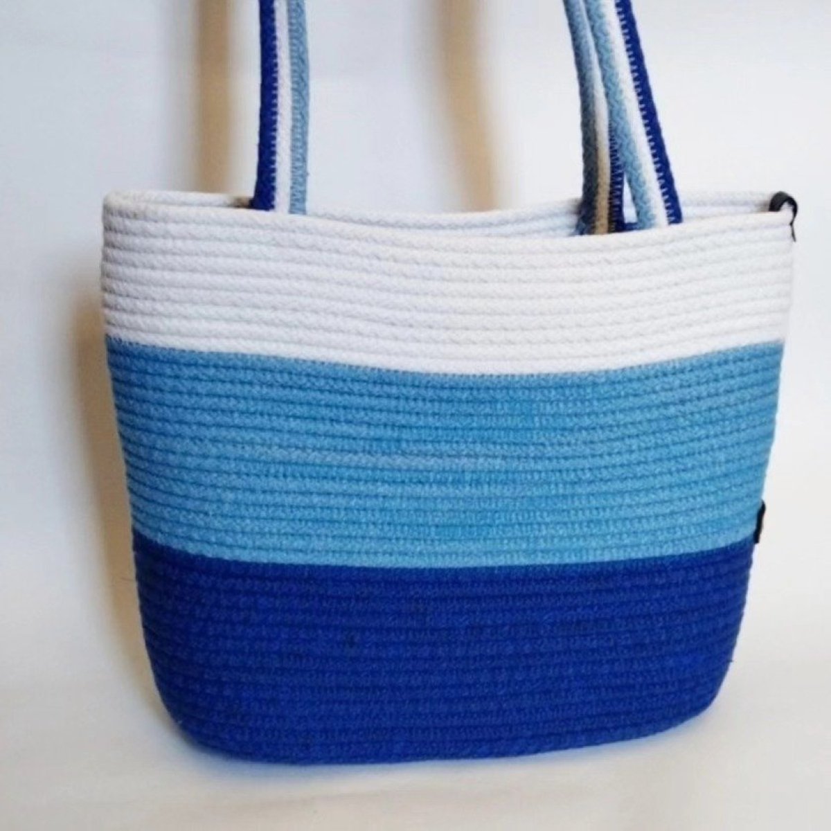 مصنوعة من حبل القطن🩵🌊 . مقاس 25*30 سم . غير مجهزة بسحاب