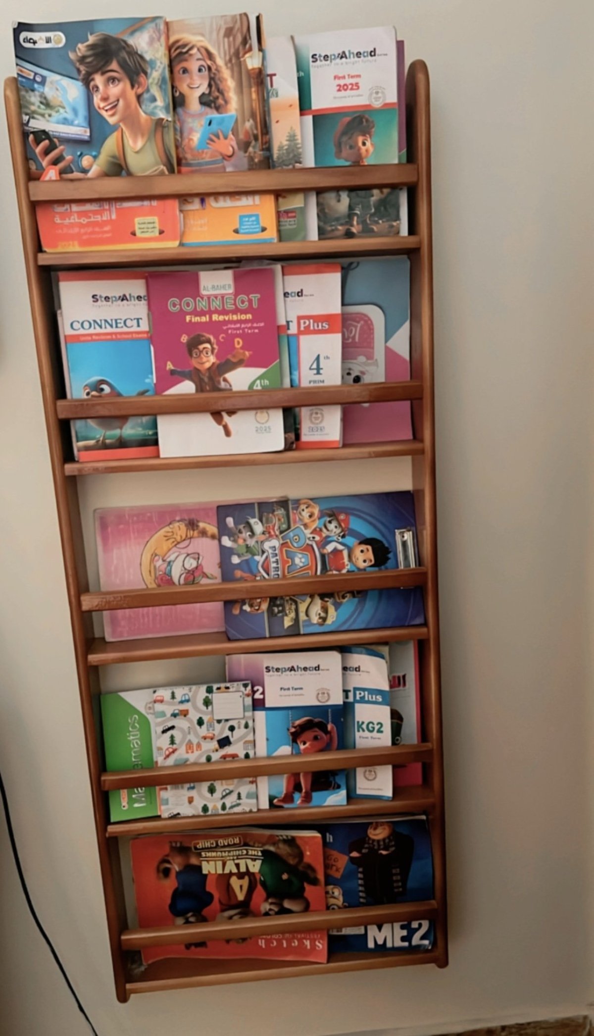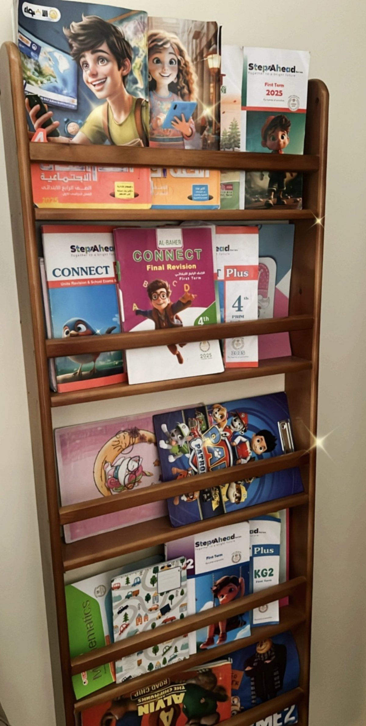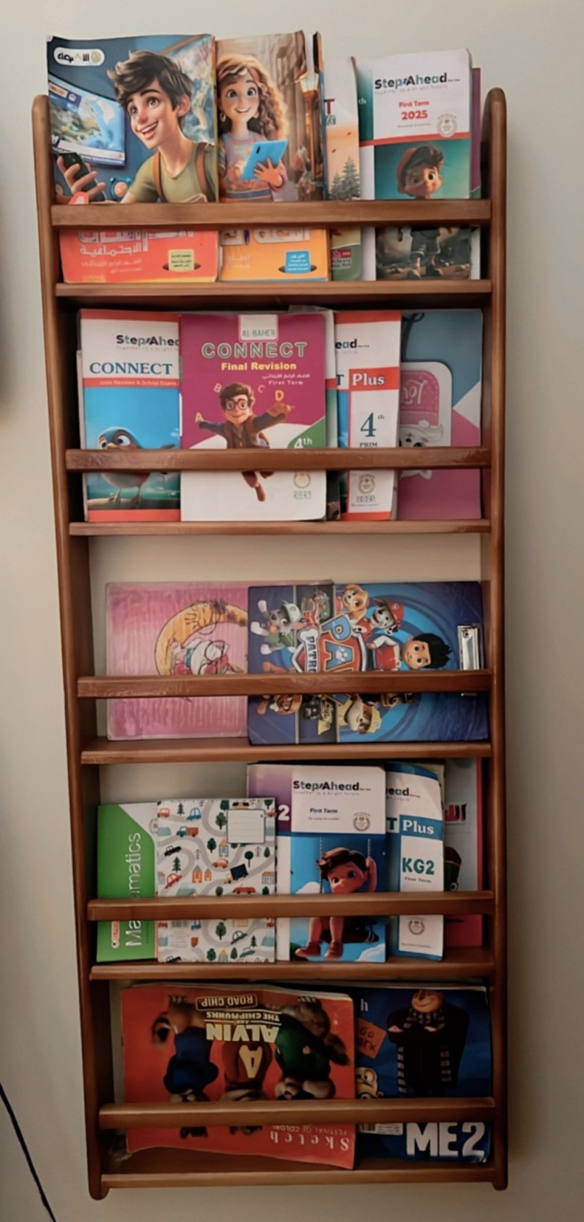 مكتبه لكتب الاطفال مكونه من ٥ ارفف مصنوعه من الخشب الطبيعي المقاسات الارتفاع ١٥٠ العرض ٥٥ متاح التنفيذ بأكثر من مقاس ولون