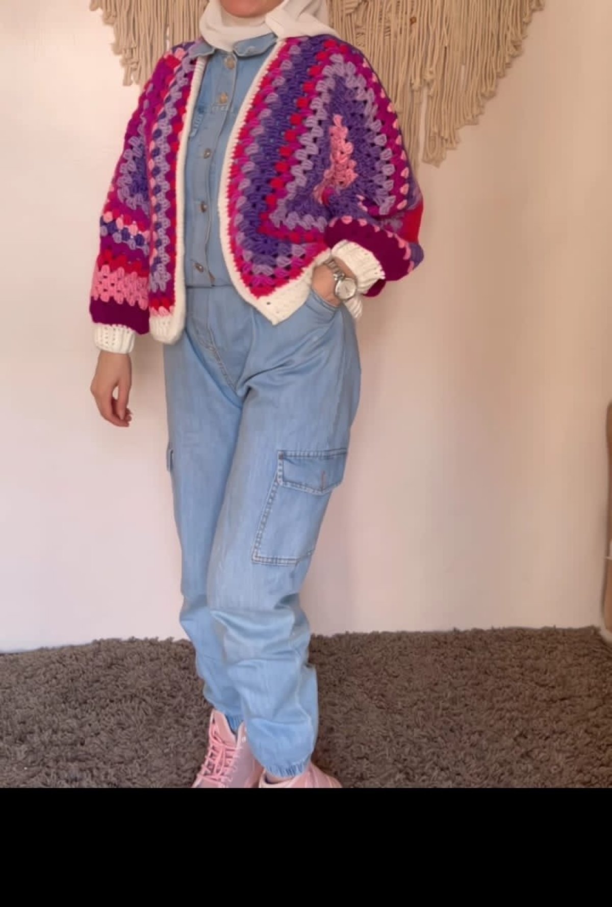 جاكيت جراني موف جنجاه خيوط صوف تركيه ناعمه وبدفي جدا فري سايز لحد ٨٠ك طوله ٦٥ سم