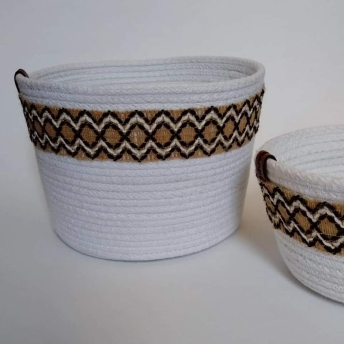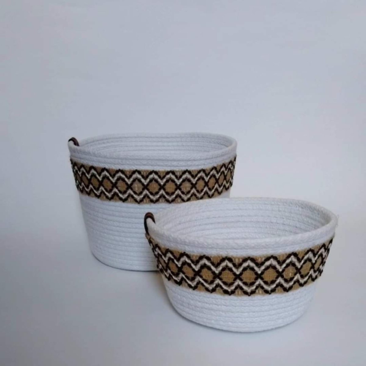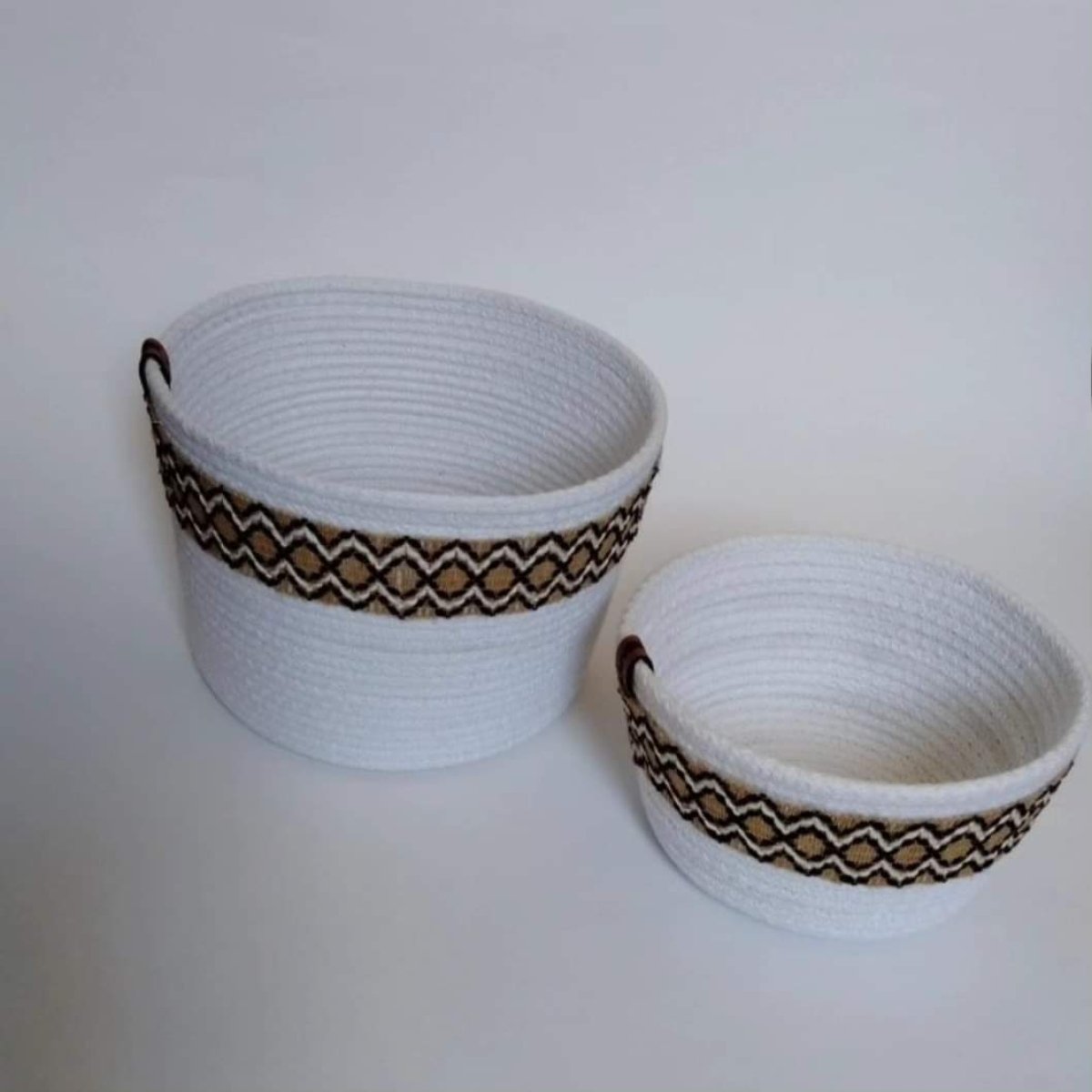 مكونه من اتنين سلة للتخزين المقاس 20cm* 15cm 15cm* 10cm . الالوان المتاحه : اسود وابيض واصفر خيش وخيش مع ابيض