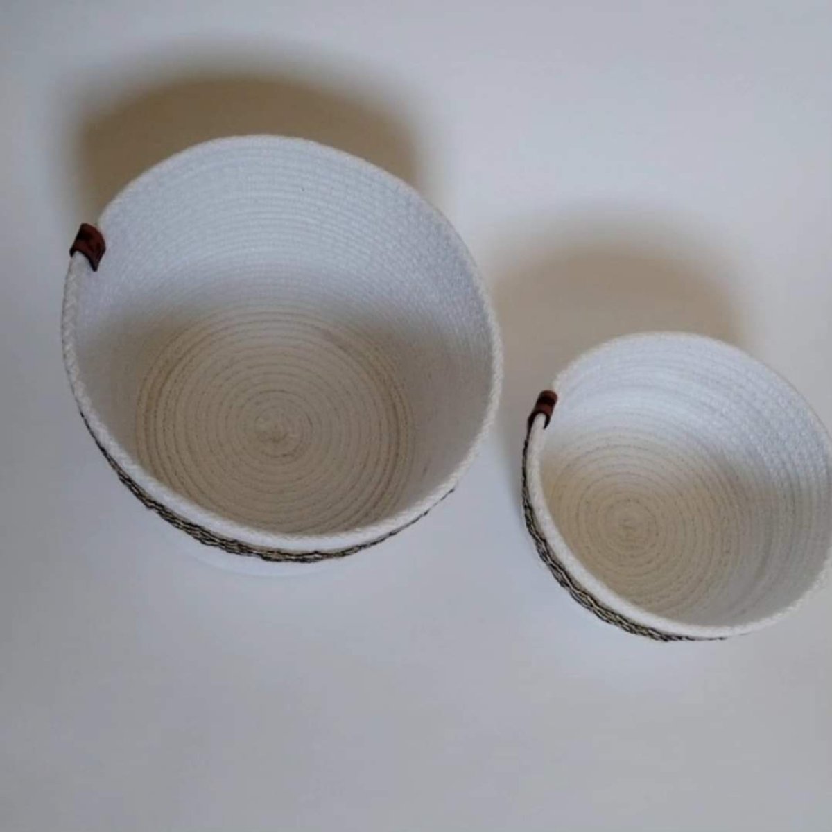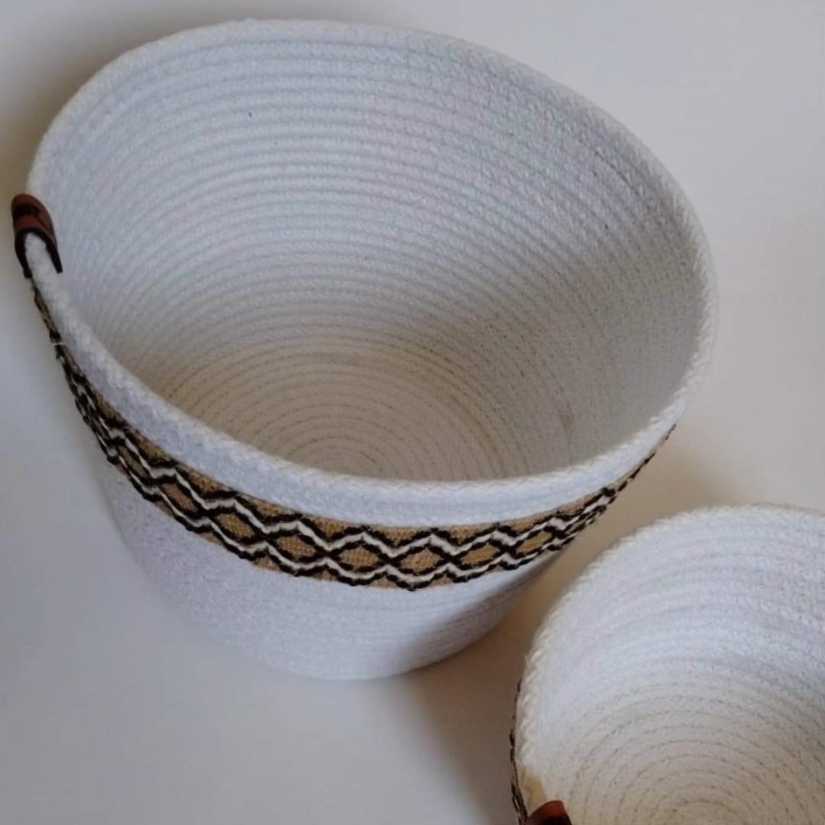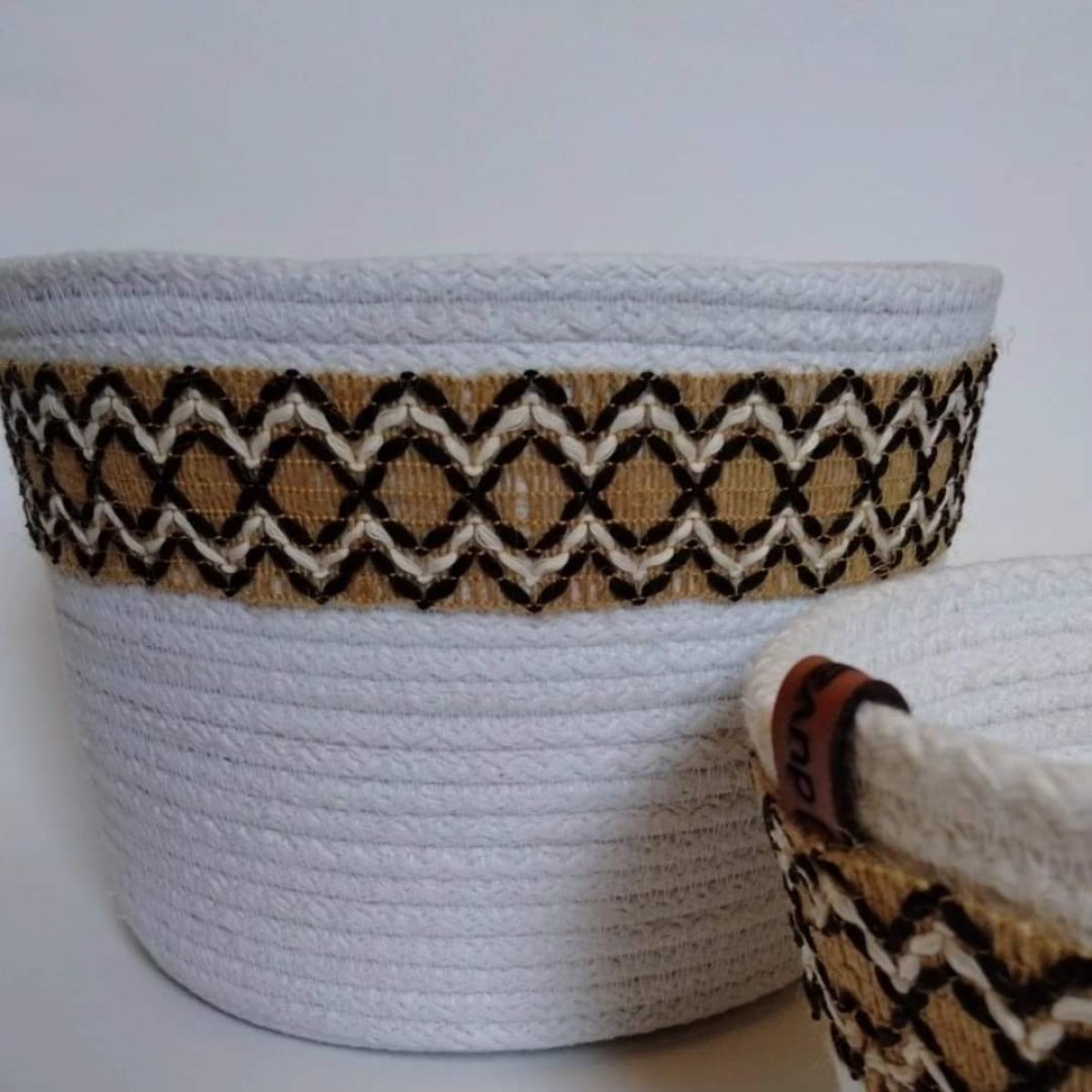 مكونه من اتنين سلة للتخزين المقاس 20cm* 15cm 15cm* 10cm . الالوان المتاحه : اسود وابيض واصفر خيش وخيش مع ابيض