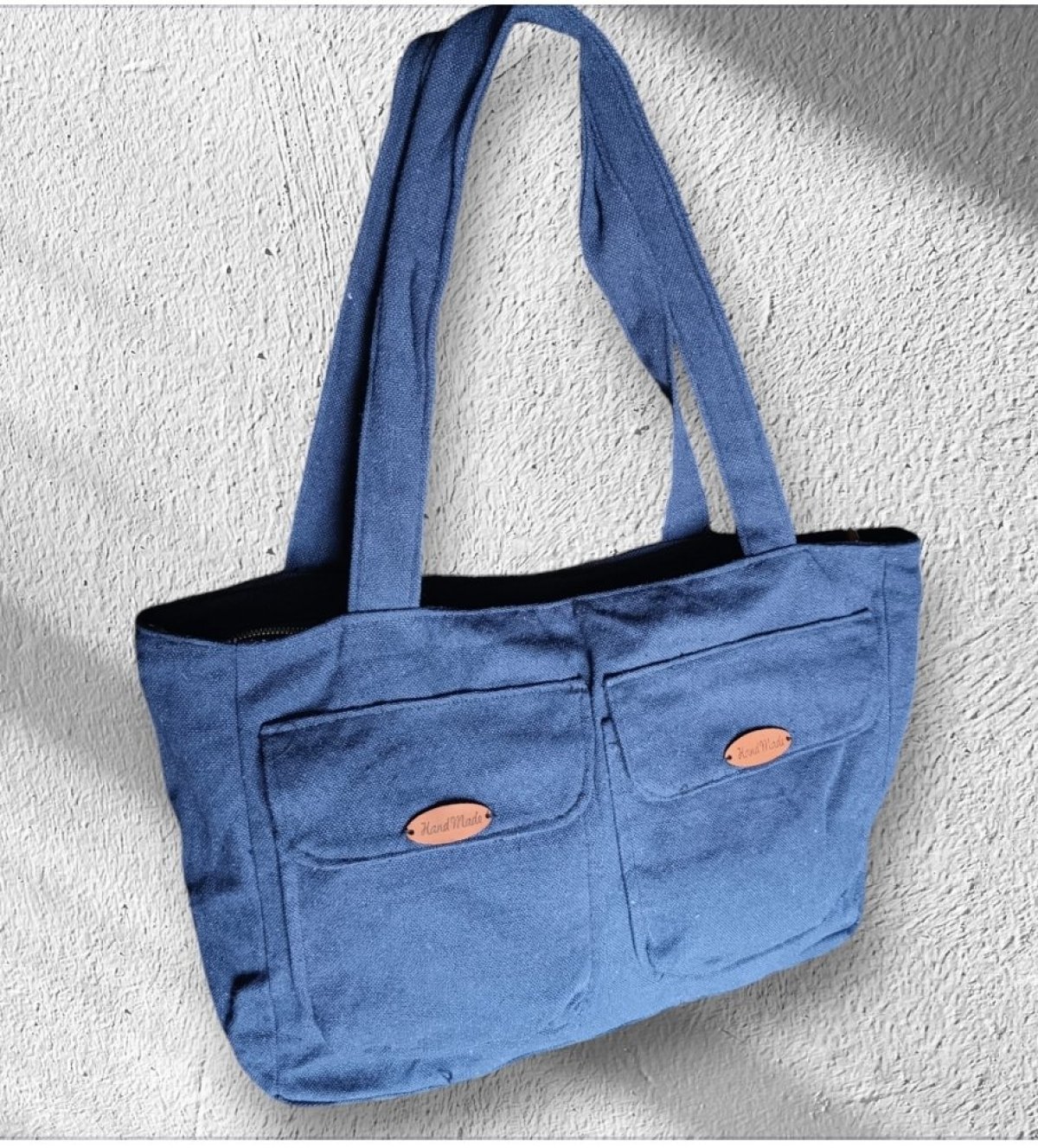 شنطه من القماش الدك التقيل مبطنة و بها جيوب داخليه و خارجيه تنفع للشغل الجامعة و النادي و الجيم