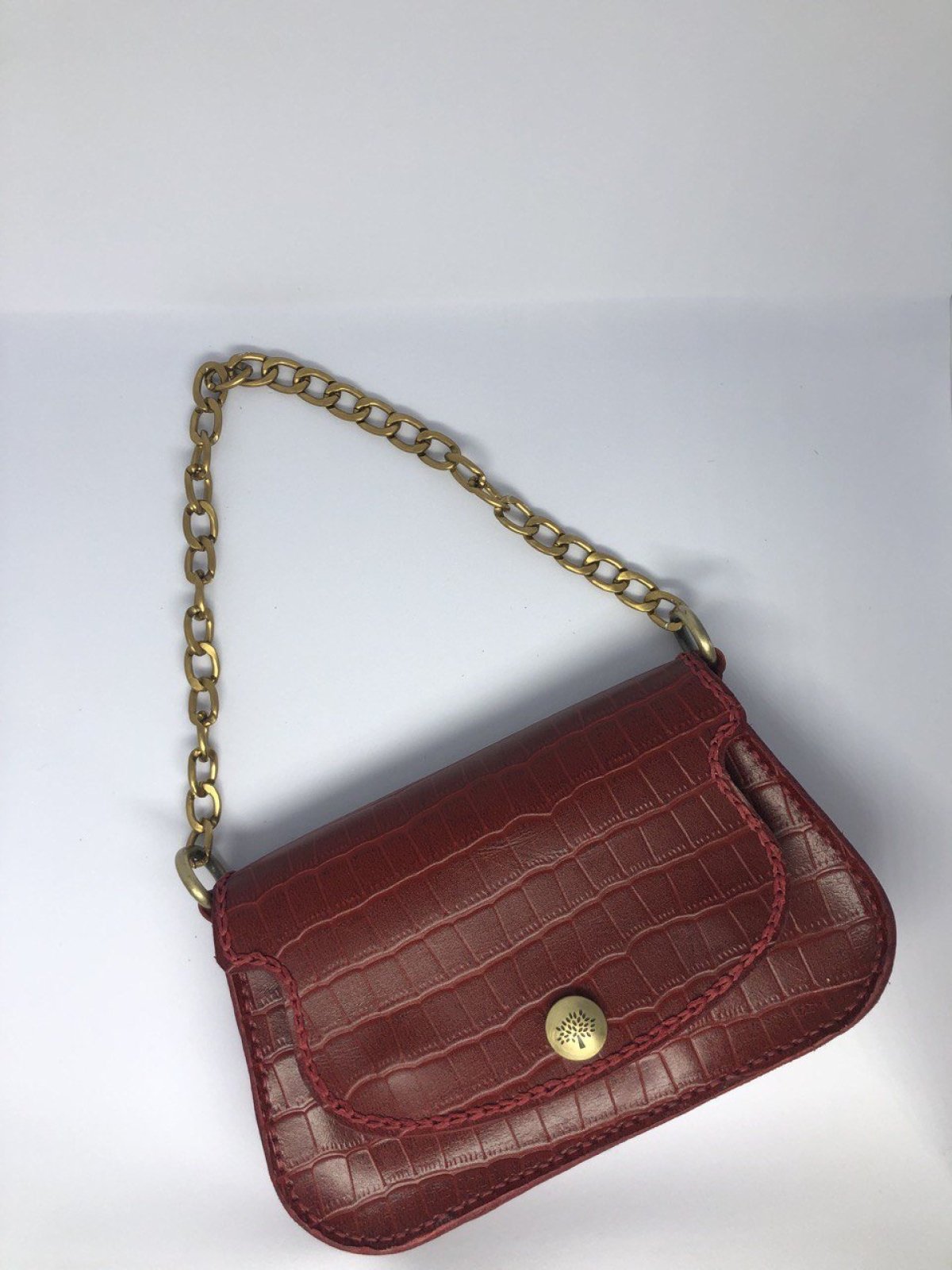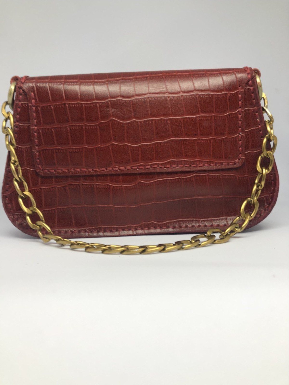 كلاتش عصرية صغيرة الحجم مصنوعة من الجلد الطبيعى بجودة عالية بتصميم يناسب الخروجات الرسمية . ابعادها : ( 21 * 13 * 4 ) سم مناسبة لحمل هاتفك المحمول والمحفظة الصغيرة او كروتك االاساسية اللون : احمر غامق