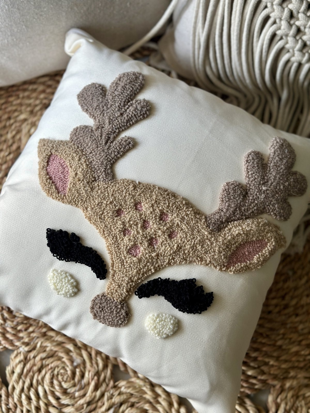 وساده مصنوعه يدويا بطريقه البانش نيدل او ابره النفاش * الحجم 45*45 * المادة: - القماش كتان - خيوط تركي من الصوف والقطن 🧶 اطلب خاصتك الآن 🥰