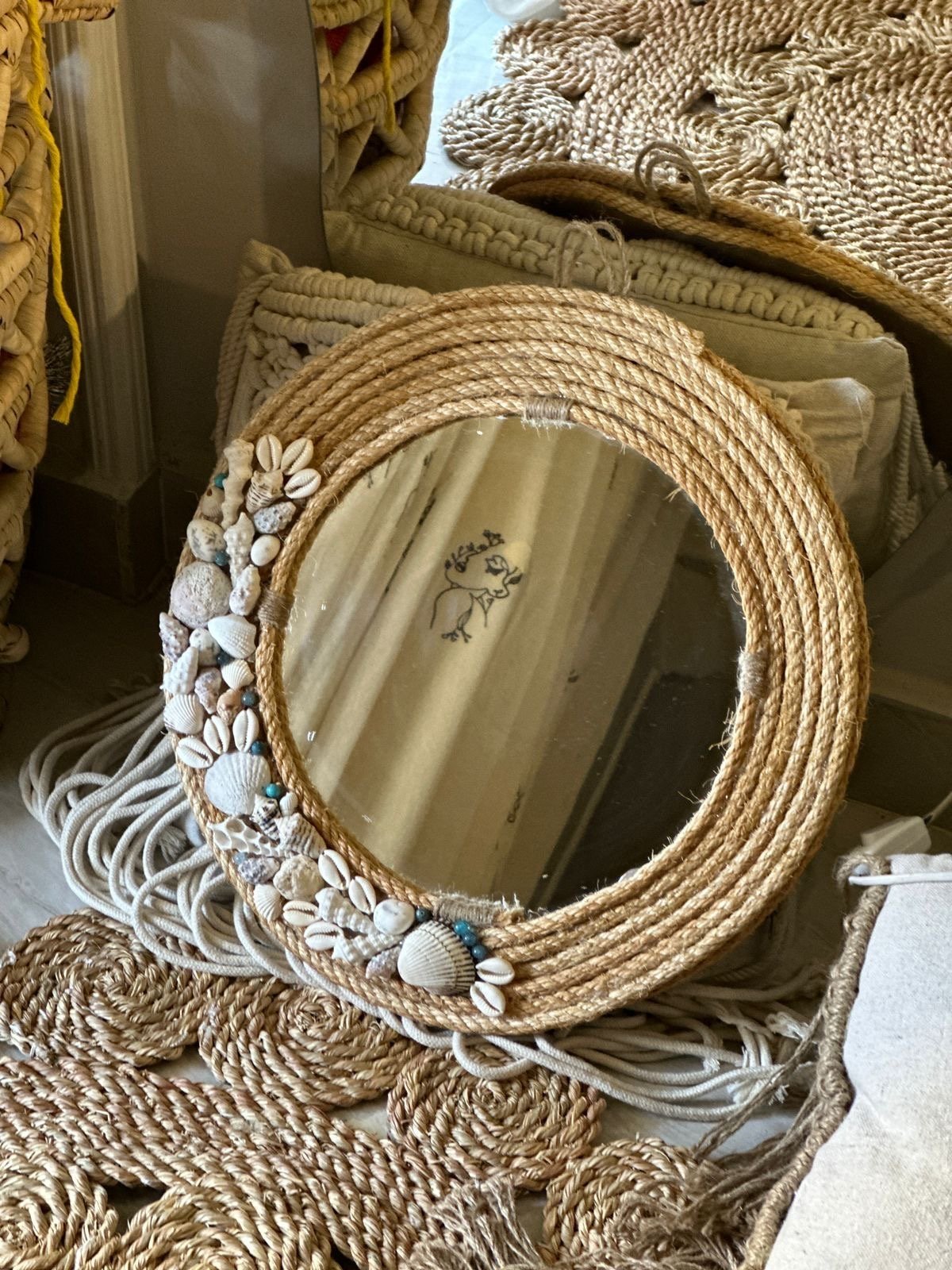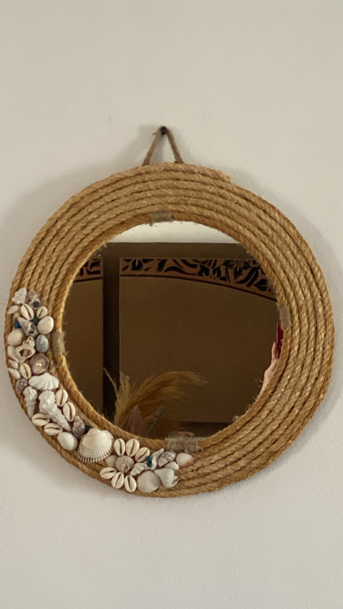 مرايا بوهيمية مع صدف البحر واللؤلؤ 🪞🐚 -الحجم. 40 سم. - الخامة: خيش طبيعي - مزينه بالصدف البحري الطبيعي.. الأحجار.. اللؤلؤ