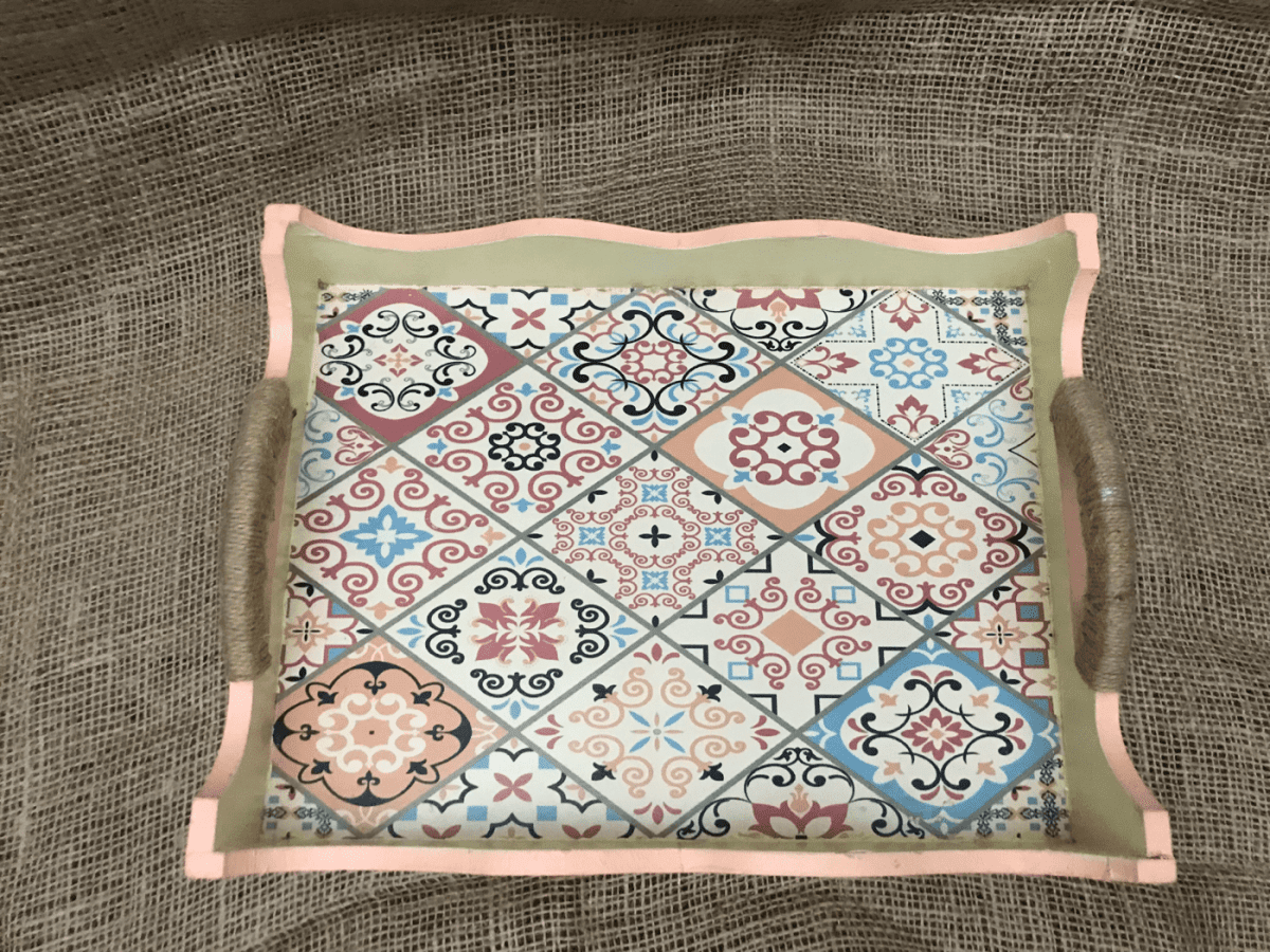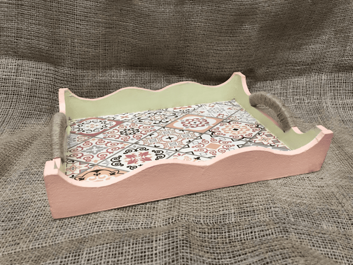 صينية تقديم خشبية ديكوباج بطابع بوهيمي مقاس :٣٥*٢٥
