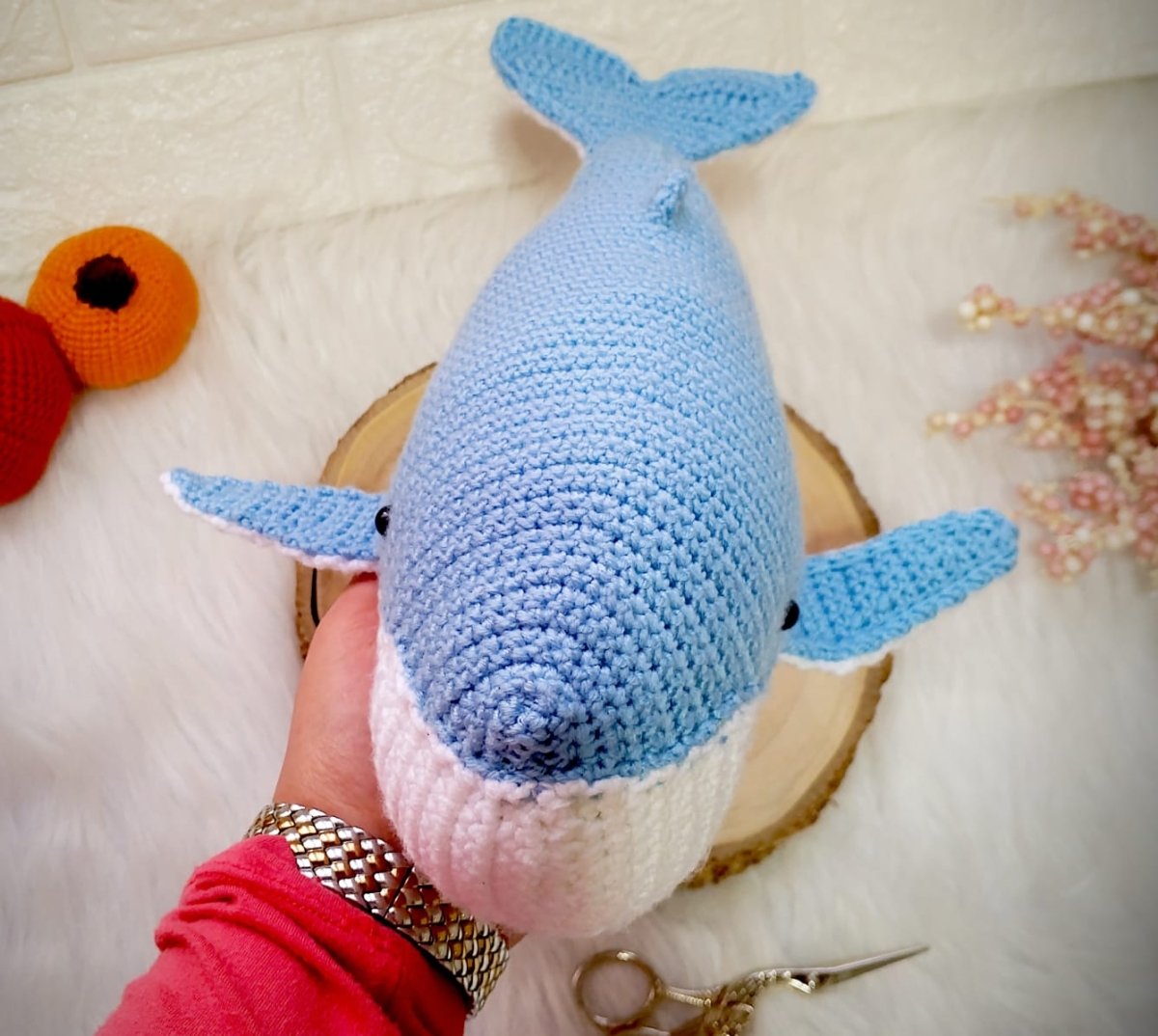 حوت طوله 30 سم مصنوع من خيوط ضد الوبره