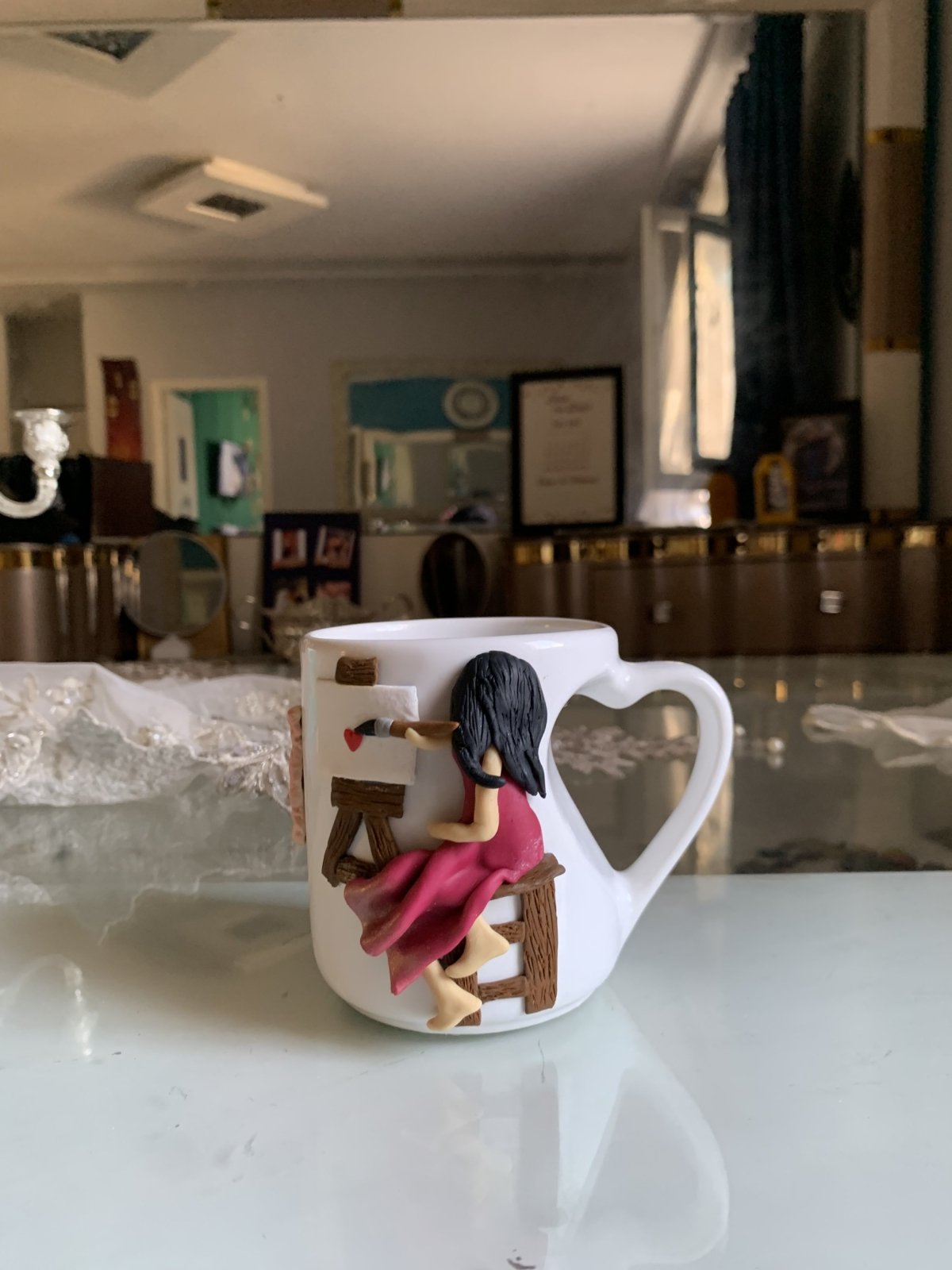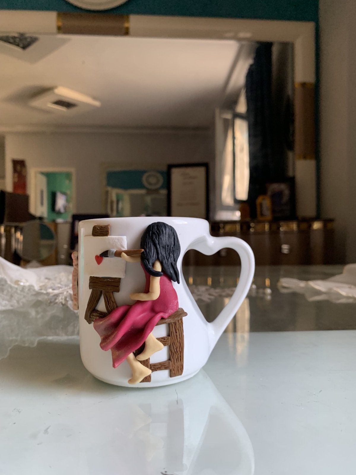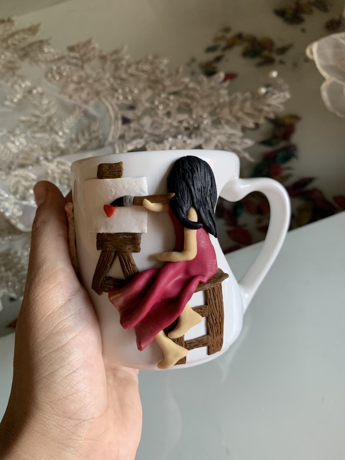 مج صلصال حراري رسم عليه بنوته بترسم المج يدوي لا يدخل فرن او ميكرويف سعه المج حوالي ٣٠٠ ملل