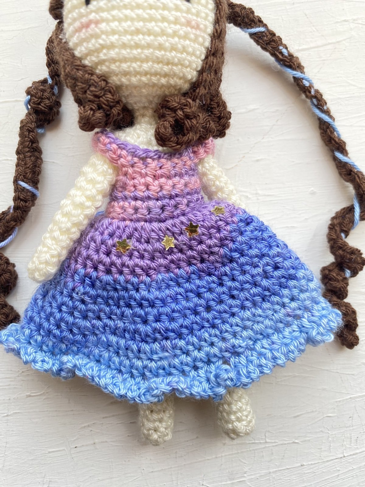 دمية فتاة القمر الجميلة والمميزة بضفيرتين طويلتين♥️ طول الدمية ١٣ سم يمكن تغيير لون الفستان الخاص بها ليناسب ذوقك وذوق بناتك♥️ اطلبيها الآن كهدية مميزة لك ولأحبابك🥰