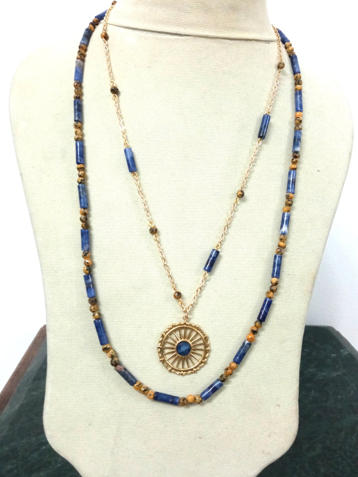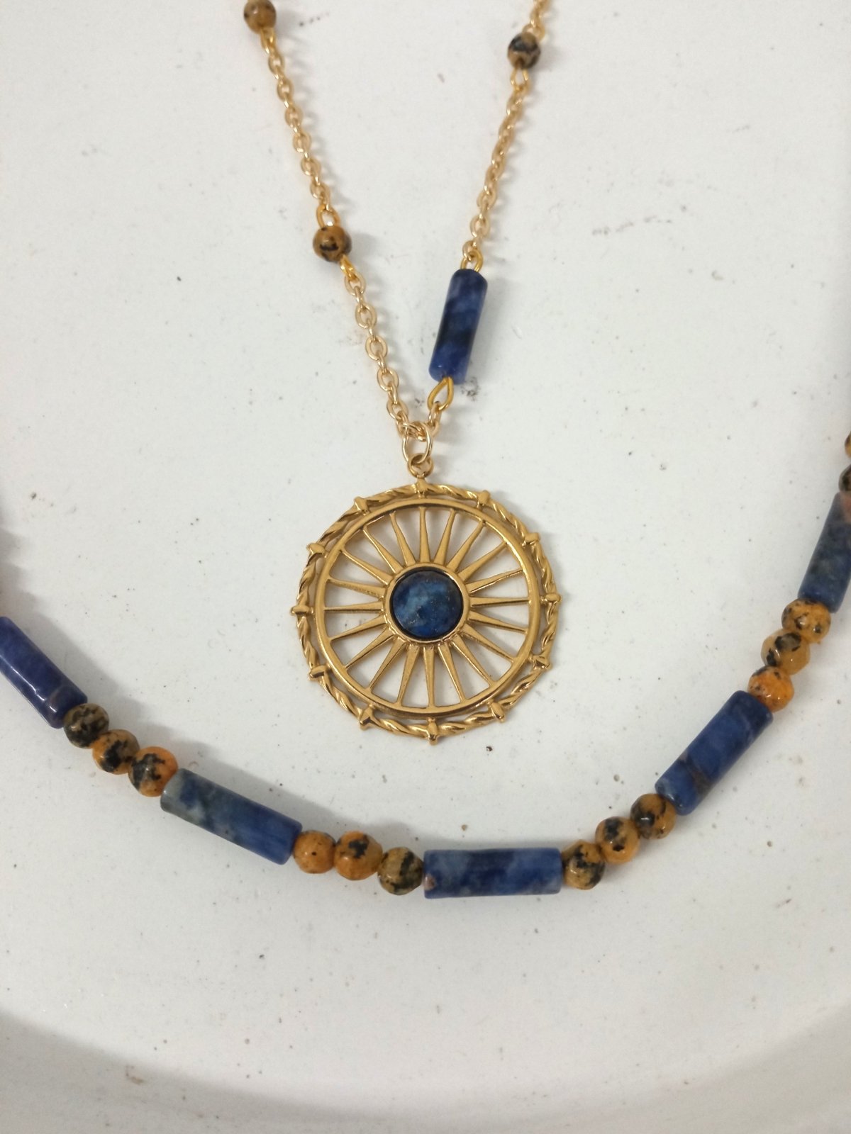 كوليه من حجر ال لابيس مع عقيق و سلسلة دهب صيني مع احجار العقيق مع حجر ال لابيس و دلاية ستانلس