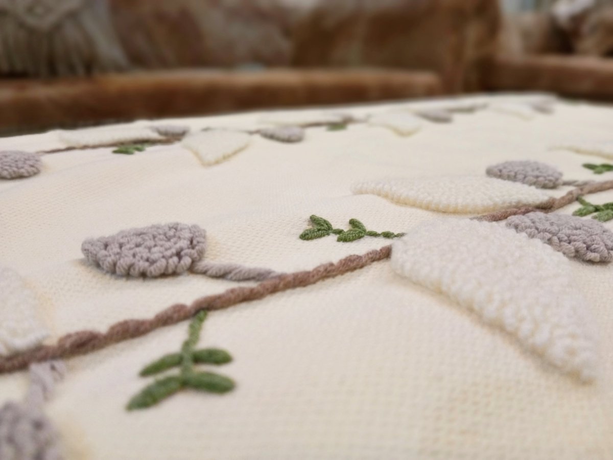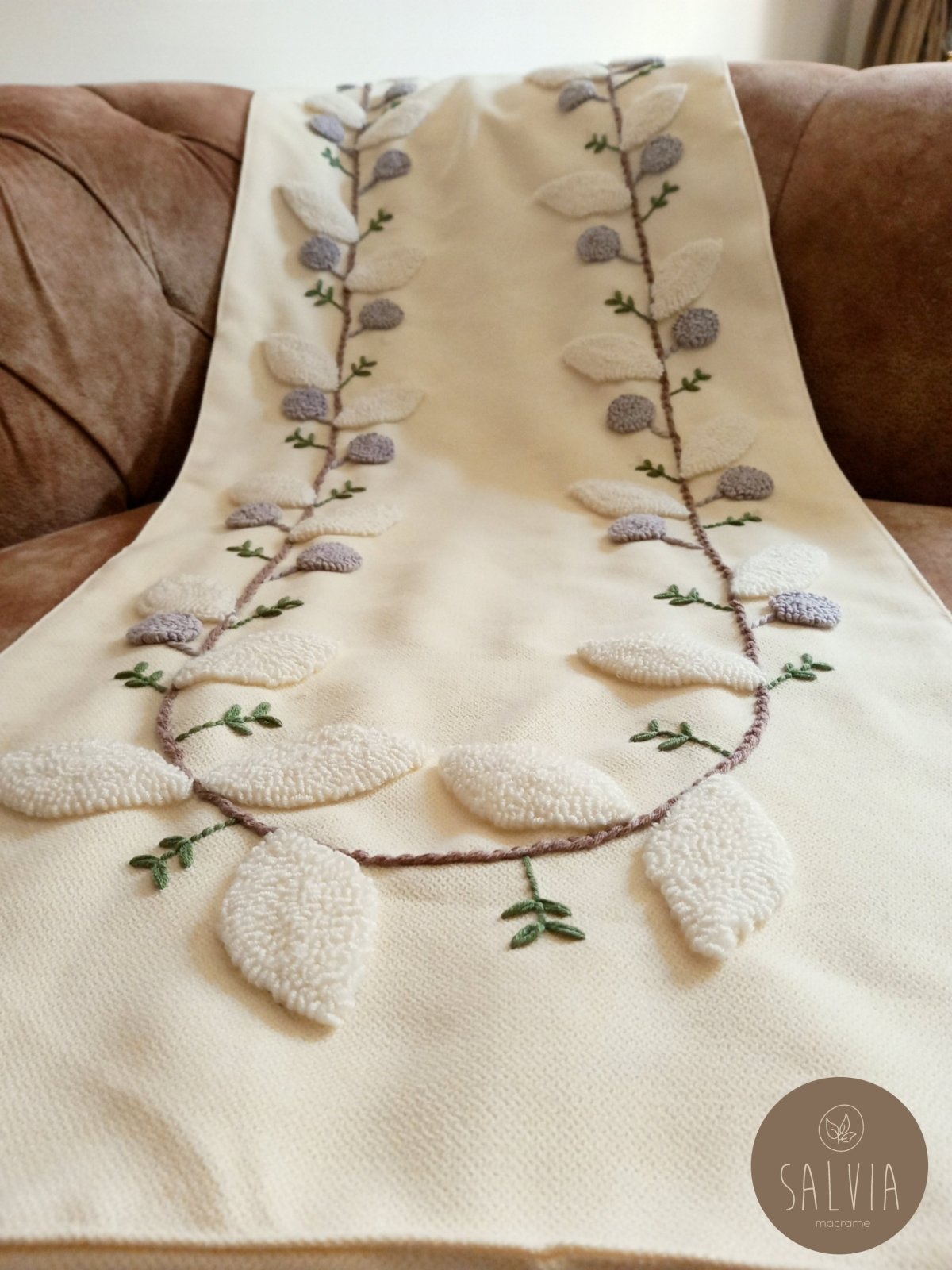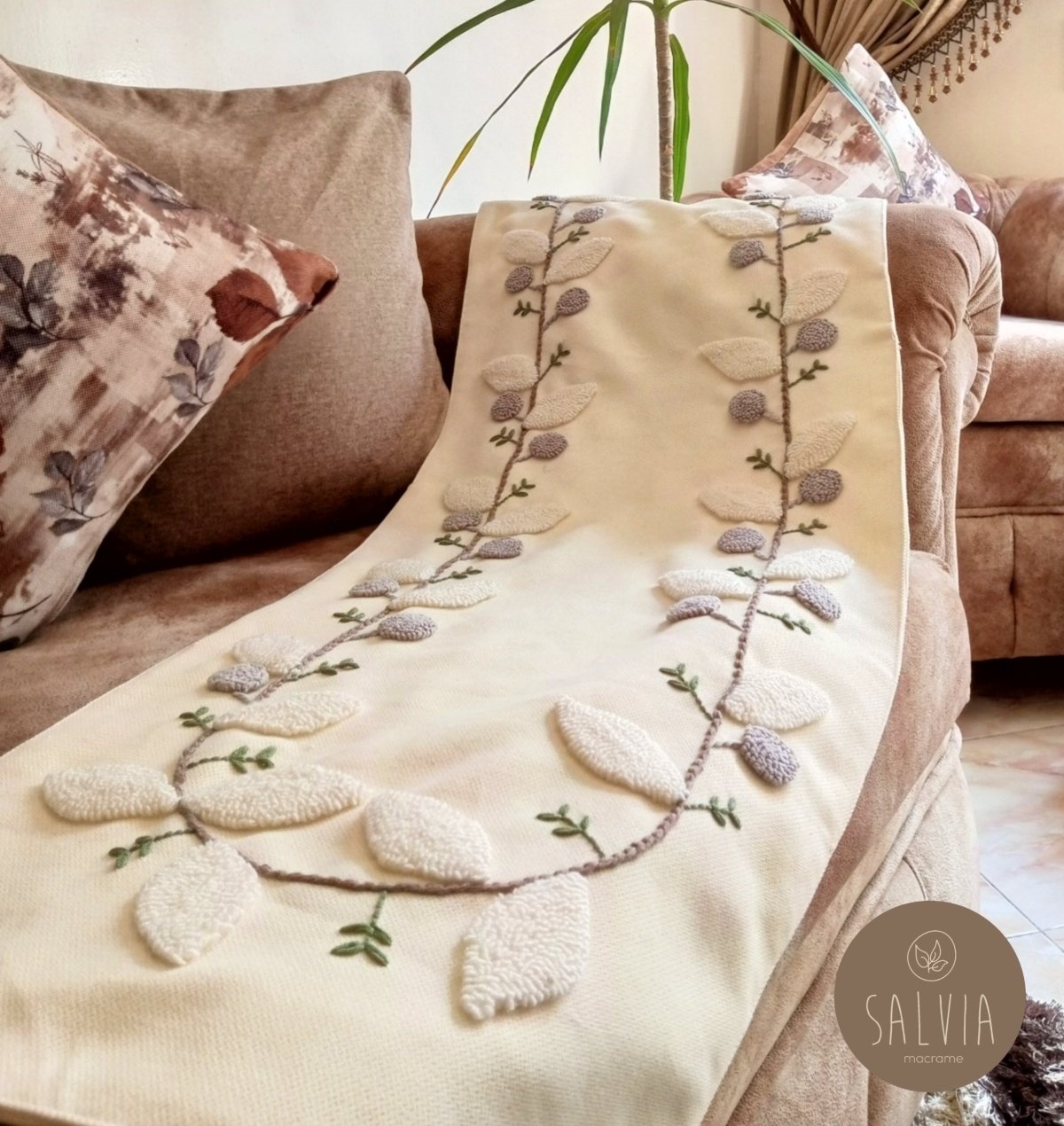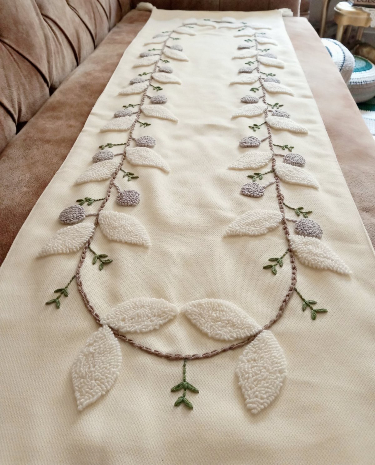 رانر مشغول بالبانش نيدل مصنوع بقماش كتان دونا وخيوط قطن مقاس متروربع متاح تنفيذه بألوان مختلفه ومقاسات مختلفه تميزى بأقتنائك قطعه من متجرنا